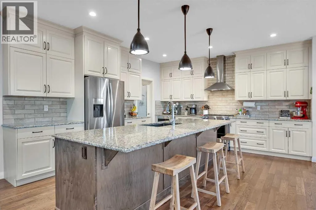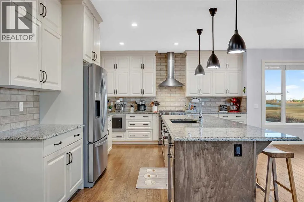 Stunning home offering over 3,900 sq. ft. of beautifully designed living space, backing onto the golf course with no neighbours behind and breathtaking sunrise and sunset views. This property combines luxury, functionality, and impressive craftsmanship throughout.The oversized 3-car garage is insulated and equipped with 220V electrical, perfect for hobbyists, EV charging, or workshop use. Exterior features include Hardie Board siding, permanent Govee lighting, and a large stamped-concrete patio. The east side offers RV parking, plus a double swinging gate for convenient backyard access for vehicles or equipment, with gate access available on both sides of the home.Inside, the bright and open layout features 9' ceilings, a 5-burner gas stove, and a kitchen designed for both cooking and entertainingâcomplete with granite countertops, floor-to-ceiling cabinetry, soft-close drawers and cupboards, and a pull-out spice rack. The mudroom is equipped with custom-built lockers, while the living room showcases a grand custom maple fireplace and built-in bookshelves.The upper bathrooms include granite countertops in the ensuite and quartz counters in the remaining bathrooms. Additional highlights include dual furnaces, and a brand-new hot water tank (2025). The fully finished walkout basement offers 9' ceilings, abundant natural light, and direct access to the backyard and patio. The home is also wired for indoor and outdoor speakers, enhancing both everyday living and entertaining.This exceptional property seamlessly blends comfort, luxury, and practical amenitiesâtruly a rare find with outstanding views and privacy. (id:27476)