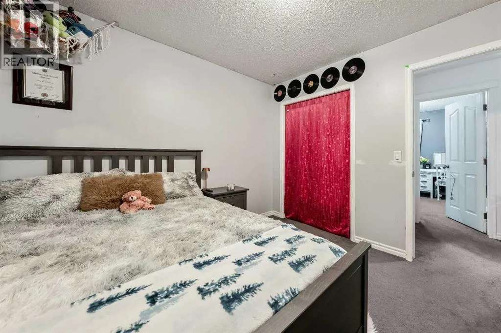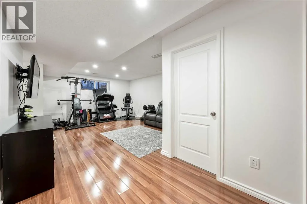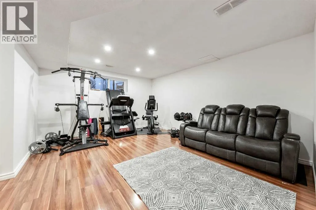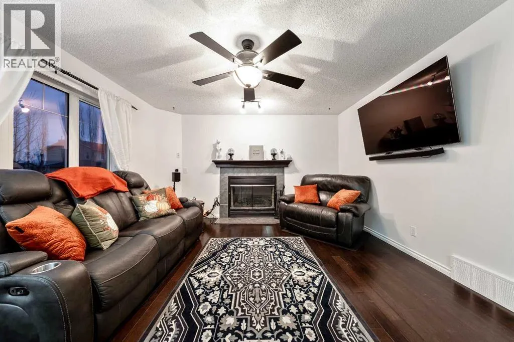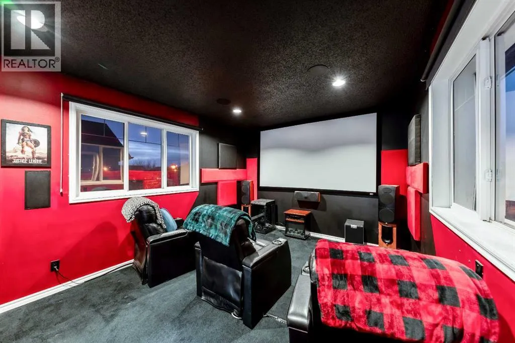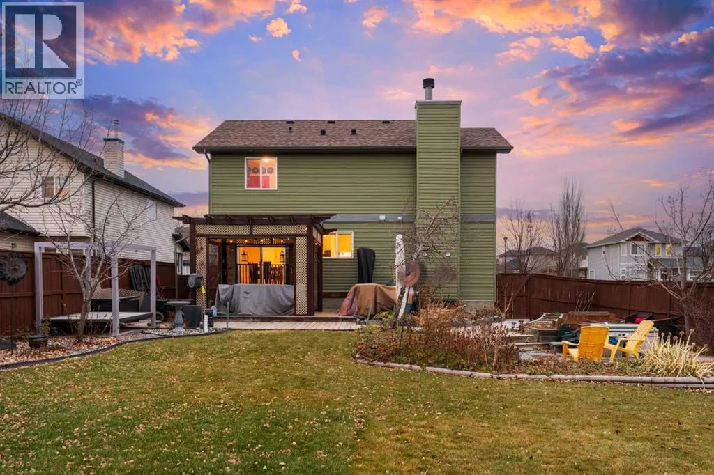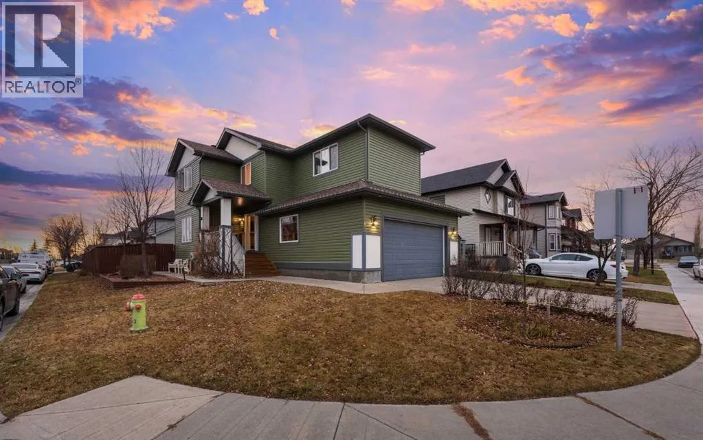 Welcome to this fully finished two-storey home in the sought-after community of Langdon, Alberta, just fifteen minutes east of Calgary. Nestled on a generous 0.17-acre corner lot in a quiet, established neighbourhood and positioned directly across from a tot park, this 1,878 sq ft residence immediately invites you into a lifestyle of space, light and comfort. From the moment you arrive youâll be captivated by the thoughtfully maintained landscaping and the homeâs undeniable curb appeal. Stepping inside through the front door youâre greeted by a large foyer and enter into the home on its hardwood flooring that continues throughout the main level. Its cozy living room is anchored by a gas fireplace, perfect for the upcoming winter nights. The open kitchen features an eating bar, granite countertops, stainless-steel appliances and a side pantry. Kitchen flows seamlessly into the dining room which opens via patio doors onto a spacious south-facing deckâperfect for barbecues, relaxing outdoors or entertaining friends and family under the open sky. As you head upstairs you will arrive at the large bonus/theatre room, perfect for movie nights with family and friends. The second level continues with a generously sized primary bedroom, complete with a five-piece ensuite and large walk-in closet, as well as two additional well-appointed bedrooms, the main four-piece bath, and a conveniently located upper-level laundry room that makes daily life easier. Downstairs you will find a 4th bedroom, a three-piece bathroom, large rec room and ample storage space, ensuring you have room to grow or accommodate guests comfortably. Outside the large fully fenced yard provides a private sanctuary for play, storage or potential RV parking. The Double Attached Garage is 21 Ã 22 ft. Note: Carpets are at the end of life. Why choose Langdon? With its peaceful village atmosphere and short commute to Calgary, this growing hamlet offers the best of both worlds: abundant parks, walking trails, schools (including a brand-new high school nearby) and local amenities like shopping and dining, all within a friendly, growing community. Donât miss this exceptional opportunityâcall today to schedule your private viewing and discover how this home could be the perfect place for your next chapter. (id:27476)