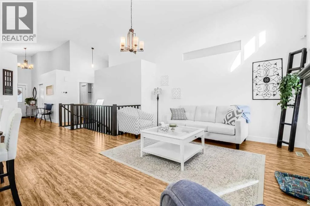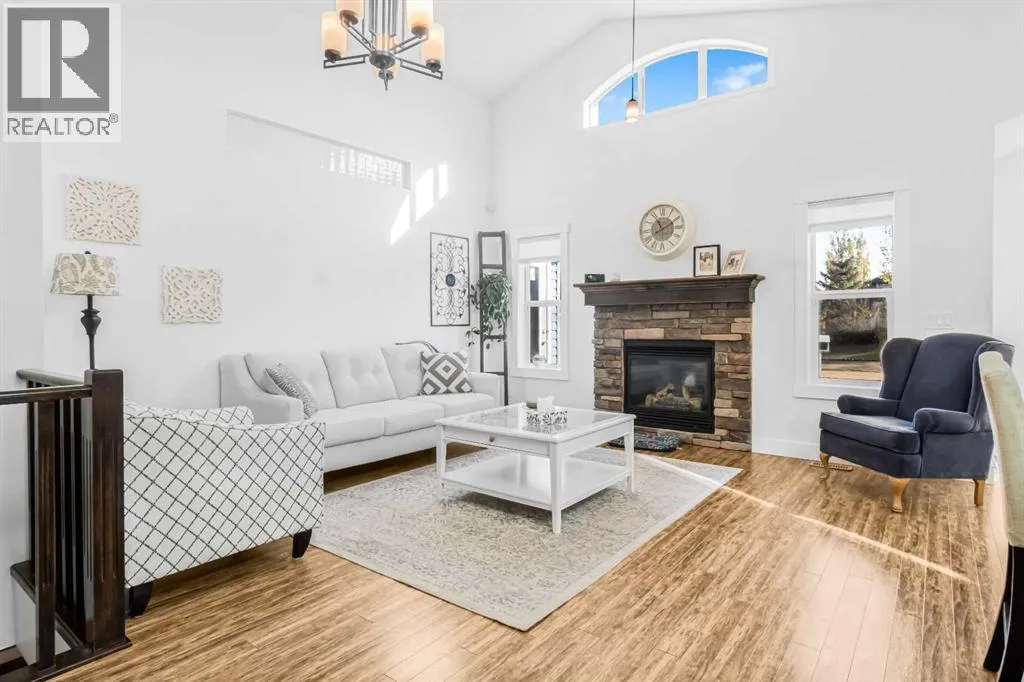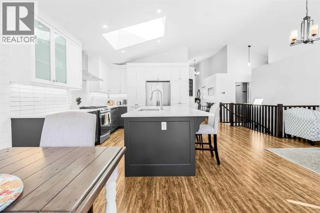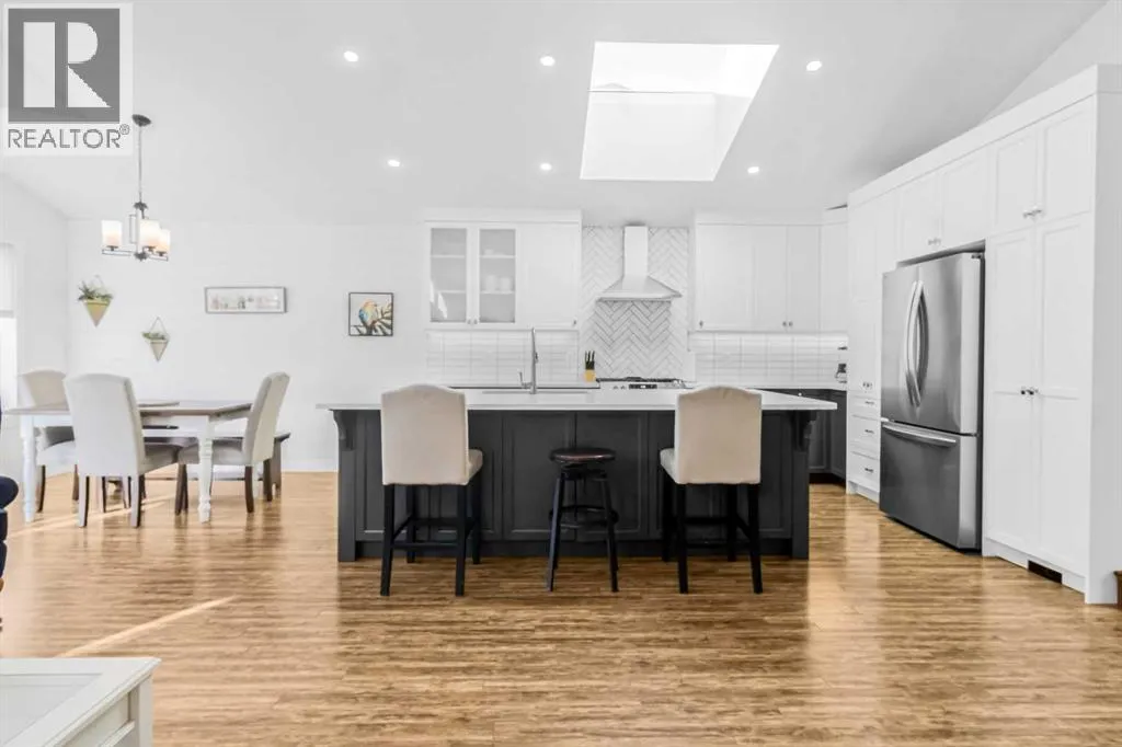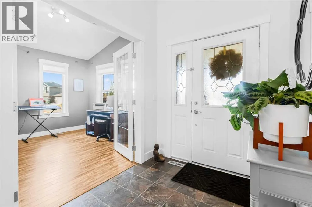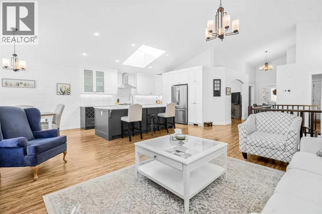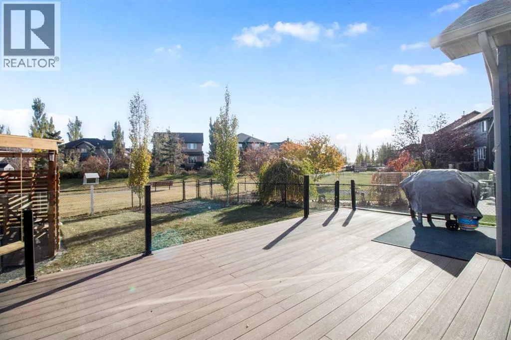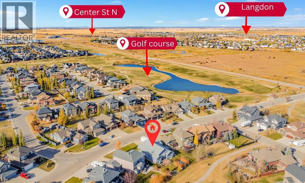 Welcome to Boulder Creek Estates in Langdon, where small-town charm meets refined bungalow living. This immaculate, fully finished 4 bedroom, 3 bath, 1800 sq ft bungalow offers over 3,000 sq ft of beautifully designed living space with vaulted ceilings, a triple car garage, and central air conditioning. A formal dining room and large den offer versatility for entertaining, working from home, or quiet relaxation. The chef-inspired kitchen features granite countertops, stainless steel appliances, a gas stove, skylight, and ample cabinetry, flowing into a warm living room with a gas fireplace. The spacious primary suite includes a stylish barn door and a luxurious 5 pc ensuite. The fully developed lower level adds a large recreation room with a second gas fireplace, two additional bedrooms, generous storage, and the convenience of two laundry rooms. Situated on a private reverse pie lot backing onto green space, the landscaped backyard with underground sprinklers creates a peaceful outdoor retreat. Boulder Creek Estates is a vibrant community with nearby amenities including Boulder Creek Golf Course, the Langdon Fieldhouse, skatepark, playgrounds, schools, and local shops and restaurants, scenic walking paths, and convenient access to major commuting routes.Thoughtfully upgraded and meticulously maintained, this exceptional home offers space, comfort, and elegance just minutes from Calgary. (id:27476)