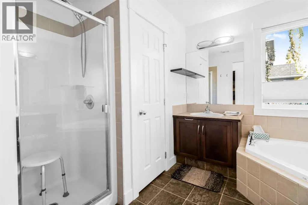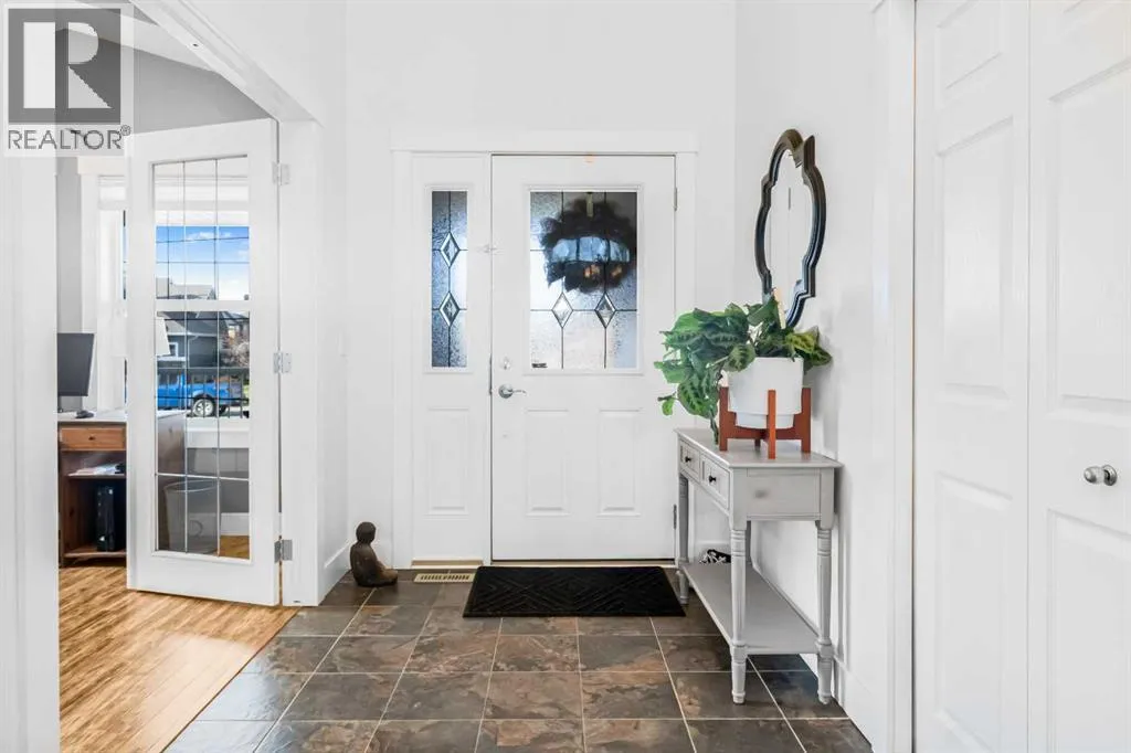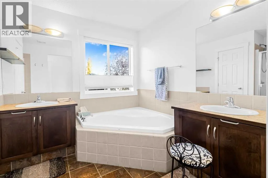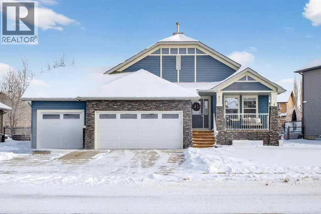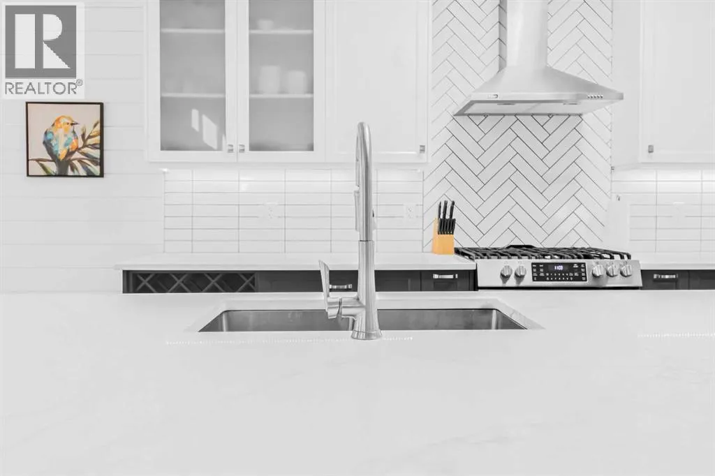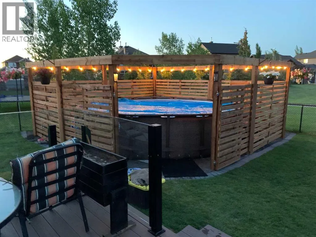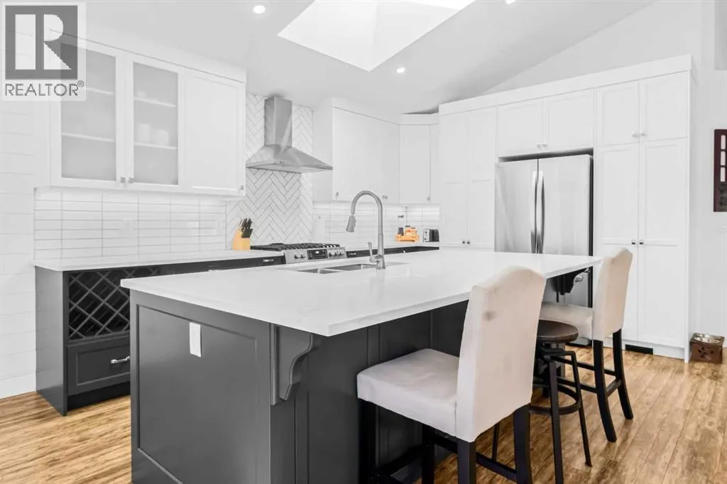 Welcome to Boulder Creek Estates in Langdon, where small-town charm meets refined bungalow living. This immaculate, fully finished 4 bedroom, 3 bath, 1800 sq ft bungalow offers over 3,000 sq ft of beautifully designed living space with vaulted ceilings, a triple car garage, and central air conditioning. A formal dining room and large den offer versatility for entertaining, working from home, or quiet relaxation. The chef-inspired kitchen features granite countertops, stainless steel appliances, a gas stove, skylight, and ample cabinetry, flowing into a warm living room with a gas fireplace. The spacious primary suite includes a stylish barn door and a luxurious 5 pc ensuite. The fully developed lower level adds a large recreation room with a second gas fireplace, two additional bedrooms, generous storage, and the convenience of two laundry rooms. Situated on a private reverse pie lot backing onto green space, the landscaped backyard with underground sprinklers creates a peaceful outdoor retreat. Boulder Creek Estates is a vibrant community with nearby amenities including Boulder Creek Golf Course, the Langdon Fieldhouse, skatepark, playgrounds, schools, and local shops and restaurants, scenic walking paths, and convenient access to major commuting routes.Thoughtfully upgraded and meticulously maintained, this exceptional home offers space, comfort, and elegance just minutes from Calgary. (id:27476)