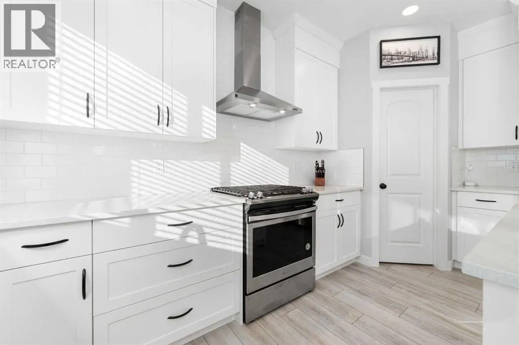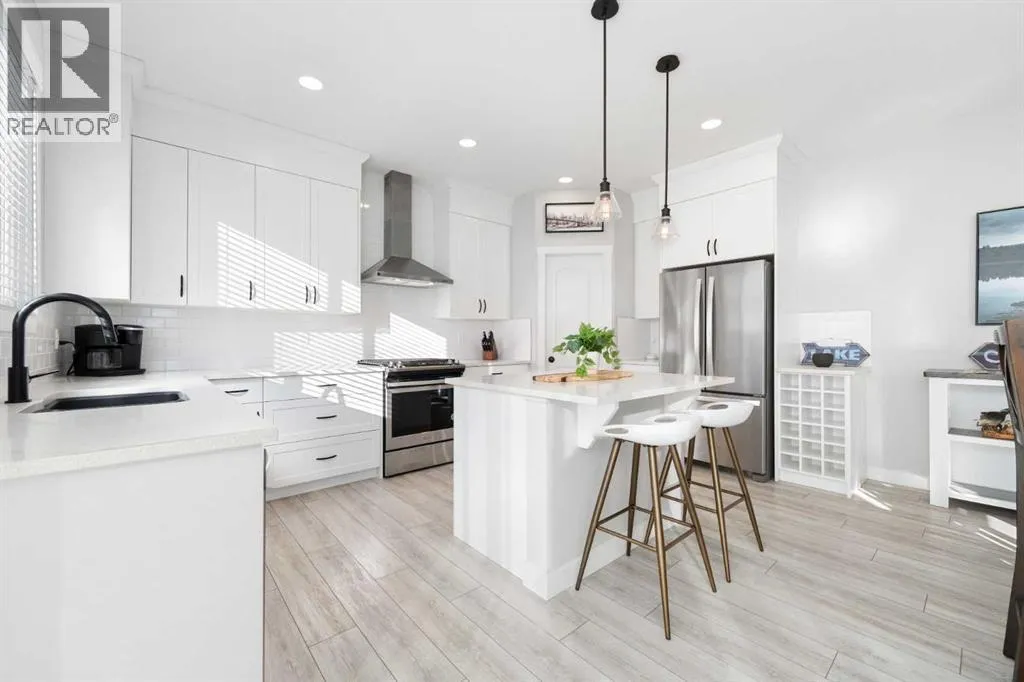 Tucked away on a quiet cul-de-sac and set on an exceptionally large pie-shaped lot, this beautifully maintained home delivers a rare combination of privacy, space, and unobstructed golf course views. This custom property offers over 2,250 square feet of thoughtfully designed living space above gradeâideal for families who value both functionality and style. From the moment you enter, the home impresses with its welcoming layout and refined finishes. Just off the front entrance is a versatile flex room that easily adapts to your lifestyleâperfect as a home office, playroom, or creative space. Moving through the foyer, the heart of the home opens up into a bright and airy open-concept design that seamlessly connects the living room, dining area, kitchen, and backyard, making it ideal for entertaining or everyday family life. The contemporary kitchen is both stylish and practical, featuring quartz countertops, an island with breakfast seating, stainless steel appliances, a gas range, and a spacious corner pantry. A charming farmhouse-style sink sits beneath a window overlooking the backyard, filling the space with natural light and offering peaceful views while you cook. From the kitchen, you can easily keep an eye on family and guests gathered by the fireplace or enjoying the expansive outdoor space. The main level is completed with a convenient powder room and a well-designed mudroom to keep daily life organized. Upstairs, youâll find a generous bonus room flooded with light and overlooking the backyardâan ideal spot for movie nights or a kidsâ retreat. The primary suite is a true sanctuary, featuring a striking custom feature wall, a spa-inspired ensuite, and a large walk-in closet. Two additional spacious bedrooms, a full four-piece bathroom, and a conveniently located upper-floor laundry room complete this level. Step outside and discover your own private backyard escape. The oversized pie lot backs directly onto the golf course and features a multi-tiered deck wi th gazebo, perfect for entertaining or unwinding. Relax in the hot tub while taking in the open views and tranquil surroundingsâthis outdoor space is truly something special. (id:27476)