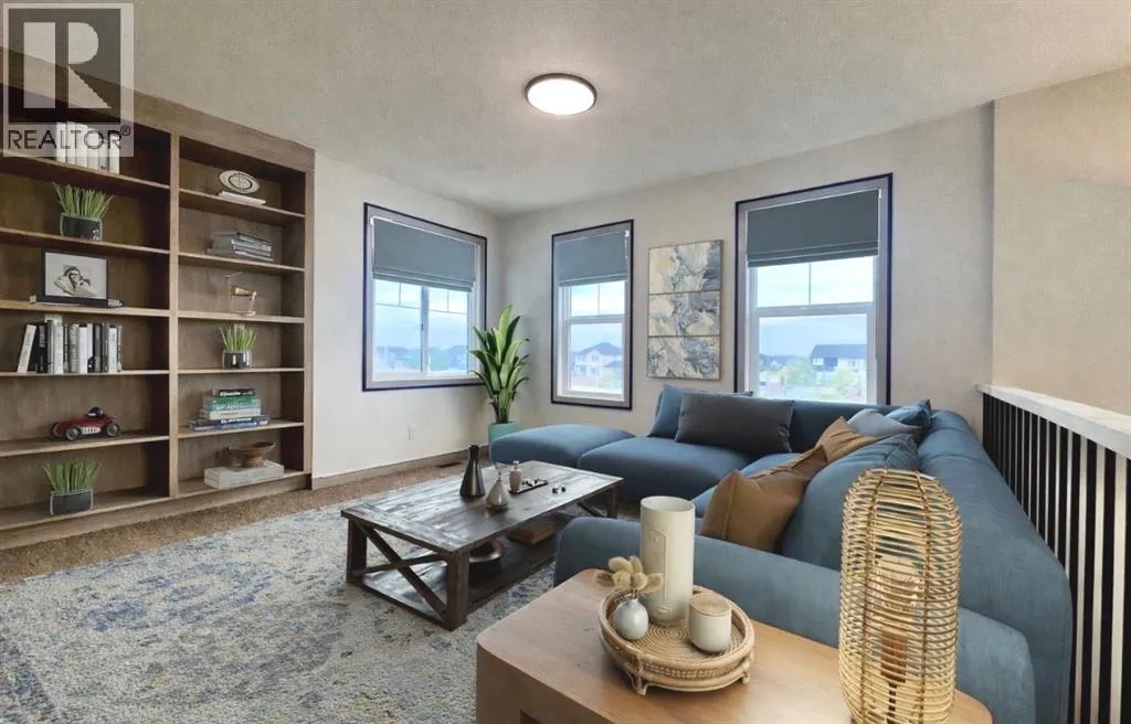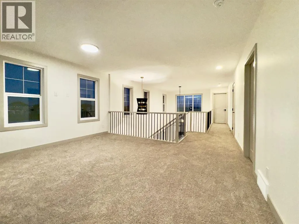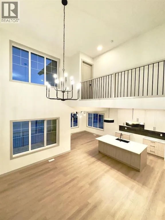 This spectacular luxury 4 bedroom (upper) executive home sits on a HUGE 0.29 ACRE lot (Room for RV!) - complete with a WALK OUT basement and a WRAPAROUND PORCH that instantly charms. Step inside to find gorgeous vinyl plank flooring, a chefâs kitchen with beautiful oatmeal cabinetry, QUARTZ counters, a large island, and a corner PANTRY. The soaring OPEN-TO-ABOVE living room fills with natural light and features a sleek FIREPLACE while the dining area overlooks your expansive backyard. A main-floor bedroom with walk-in closetâperfect for guests, multi-generational living, or a private officeâadds thoughtful flexibility. Upstairs, is a bright BONUS room with built-in bookcases sets the tone for family living. The primary retreat is a true haven with a luxurious ENSUITE featuring a freestanding tub, walk-in shower, and large walk-in closet. Two additional bedrooms , a stylish family bath, and a UPPER laundry room complete the level. The walkout basement awaits your vision, with patio doors opening to a huge yard that stretches wide around the home. All this, just 10 minutes to Stoney Trail, with golf, shopping, schools (including a brand-new high school just 5 minutes walk away!), and every amenity at your fingertips. Experience the perfect blend of elegance, space, and lifestyleâyour new home awaits! (id:27476)