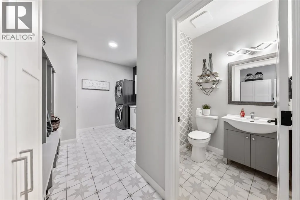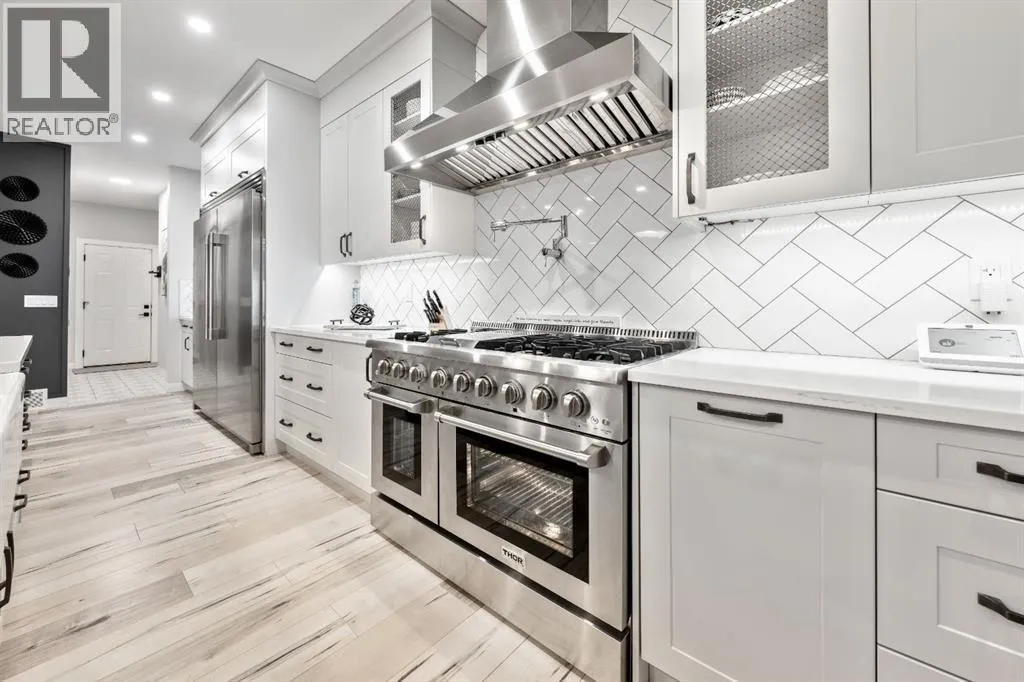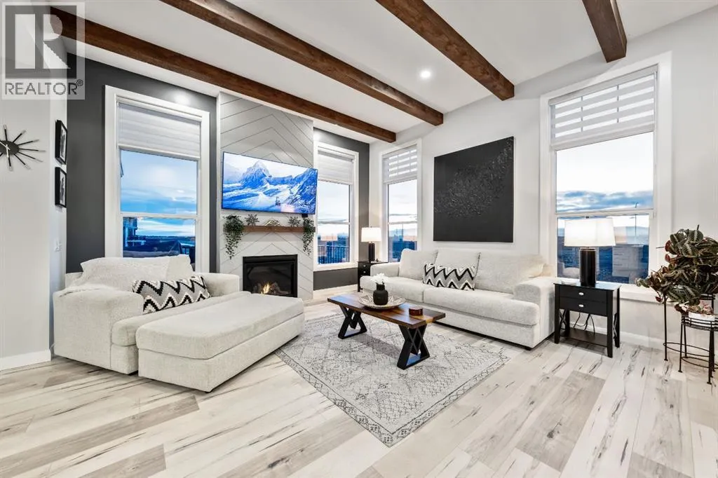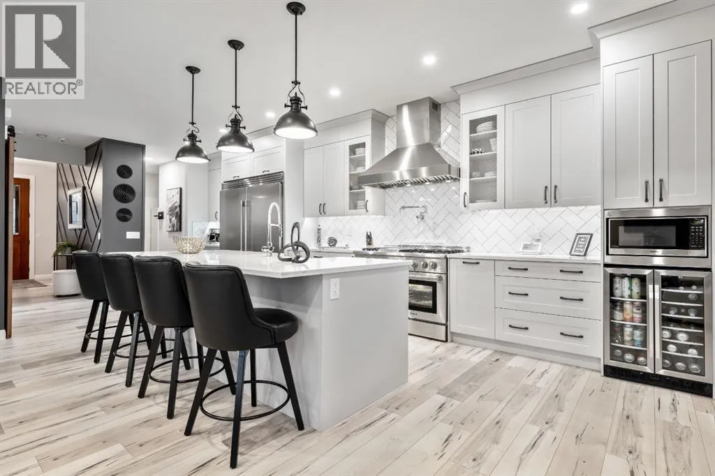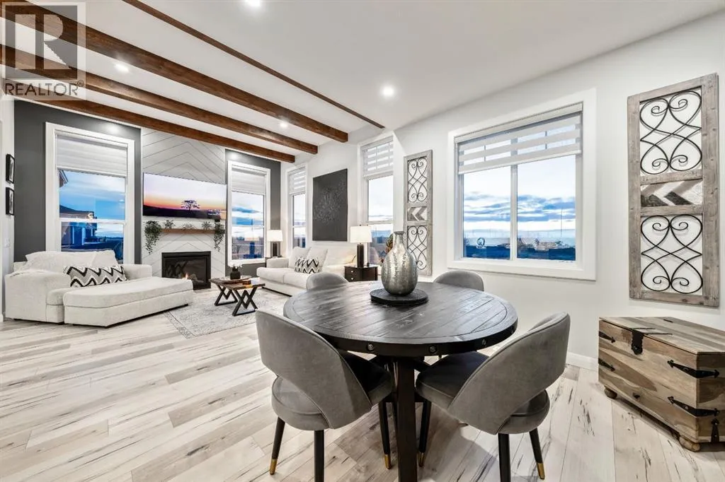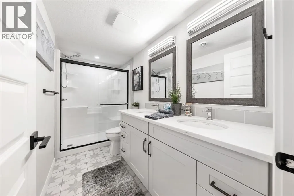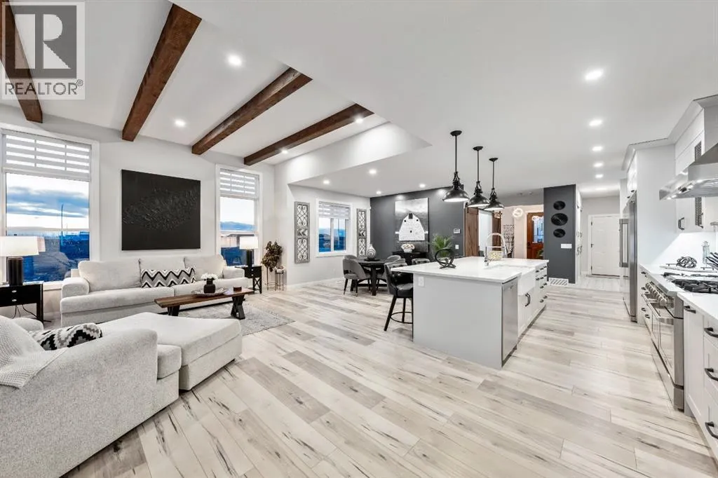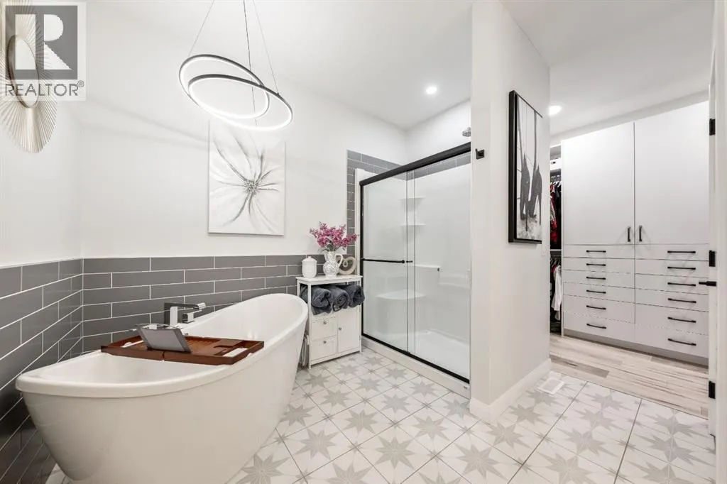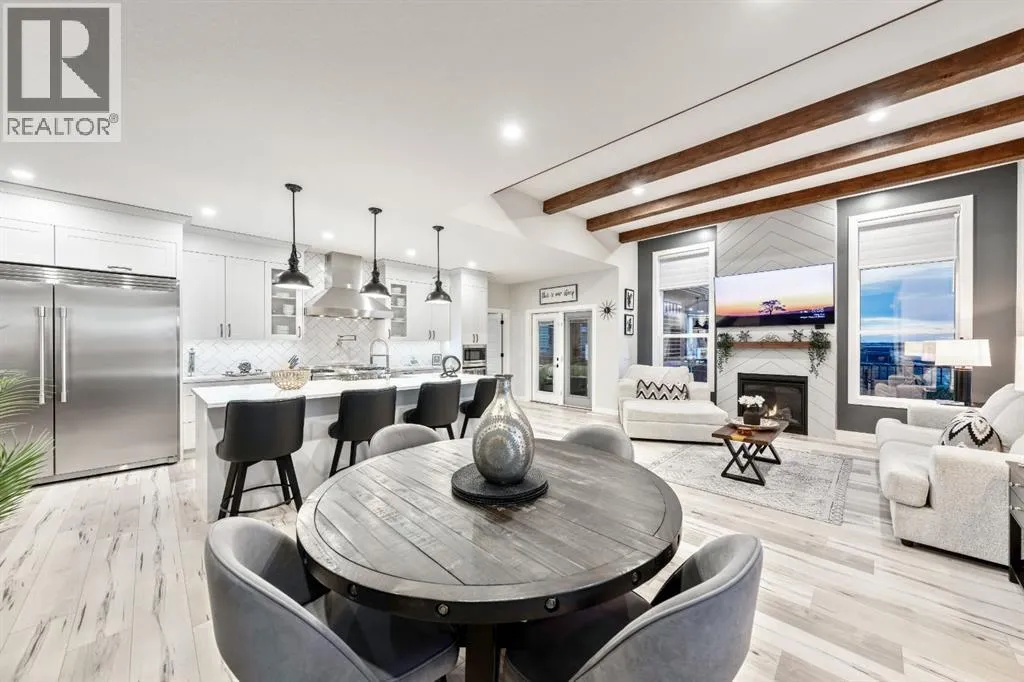 Welcome to this EXCEPTIONAL, FULLY FINISHED BUNGALOW in the sought-after community of THE BRIDGES OF LANGDONâan outstanding opportunity for buyers seeking a TRUE MOVE-IN READY HOME with MODERN COMFORT and TIMELESS DESIGN. From the moment you arrive, the FULLY COMPLETED LANDSCAPING and premium HARDIE BOARD SIDING create striking curb appeal, while the charming VAULTED FRONT PORCH sets the tone for the quality found throughout.Inside, this CUSTOM-DESIGNED home showcases an EXPANSIVE, FUNCTIONAL LAYOUT enhanced by VAULTED CEILINGS, DESIGNER LIGHTING, and beautiful LAMINATE FLOORING across the bright, open-concept main level. Large WEST-FACING WINDOWS flood the living space with natural light, drawing your eye to the inviting GAS FIREPLACE that anchors the room and creates a warm, welcoming atmosphere.The kitchen is truly the CENTREPIECE of the home, designed to impress and built for everyday living. A substantial QUARTZ ISLAND with FARMHOUSE SINK, DESIGNER PENDANT LIGHTING, CUSTOM HOOD FAN, and a full STAINLESS STEEL APPLIANCE PACKAGEâincluding a SIDE-BY-SIDE FULL FRIDGE AND FREEZER and a THOR GAS STOVE with POT FILLER TAPâmake this a dream space for cooking and entertaining. Crisp CABINETRY and carefully selected backsplash finishes provide a clean, sophisticated aesthetic. Double patio doors open seamlessly to the REAR COVERED DECK, offering effortless INDOOR-OUTDOOR LIVING.Sliding BARN DOORS reveal a beautifully appointed OFFICE/DEN complete with a feature wallâperfect for working from home or creating a stylish flex space. The spacious PRIMARY SUITE offers a peaceful retreat with 9-FOOT CEILINGS, an accent wall, and a CUSTOM WALK-IN CLOSET with extensive built-ins. The SPA-INSPIRED ENSUITE elevates everyday living with DUAL SINKS, a MAKE-UP STATION, FREESTANDING SOAKER TUB, and HIS AND HERS VANITIES.The main level is completed by a generous LAUNDRY ROOM featuring DESIGNER TILE, cabinetry, and a sink for added convenience. Downstairs, the FULLY DEVELOPED BAS EMENT offers a comfortable lounge atmosphere with IN-FLOOR HEATING, plush carpeting, a spacious recreation area with WET BAR, THREE ADDITIONAL BEDROOMS with CUSTOM BUILT-IN CLOSETS, a SECOND FULL BATHROOM, and a ROUGHED-IN FUTURE LAUNDRY SPACE. An extension to the home is the closed in exterior deck, this is a true retreat area with the option to open or close the shutters, enjoy family and friends around a cozy fireplace while watching your favorite game on the exterior TV! Finish off the evening with a quick soak in the HOT TUB!Extensive upgrades continue in the TRIPLE ATTACHED GARAGE, complete with IN-FLOOR HEATING, built-in cabinetry, and a dedicated workbench areaâtruly a perfect retreat for hobbies or storage.Ideally located near PARKS, the NEW HIGH SCHOOL, and the many amenities that make Langdon such a desirable place to call home, this stunning bungalow offers the perfect balance of LOCATION, LIFESTYLE, AND LUXURY. Call today to experience it for yourself. (id:27476)