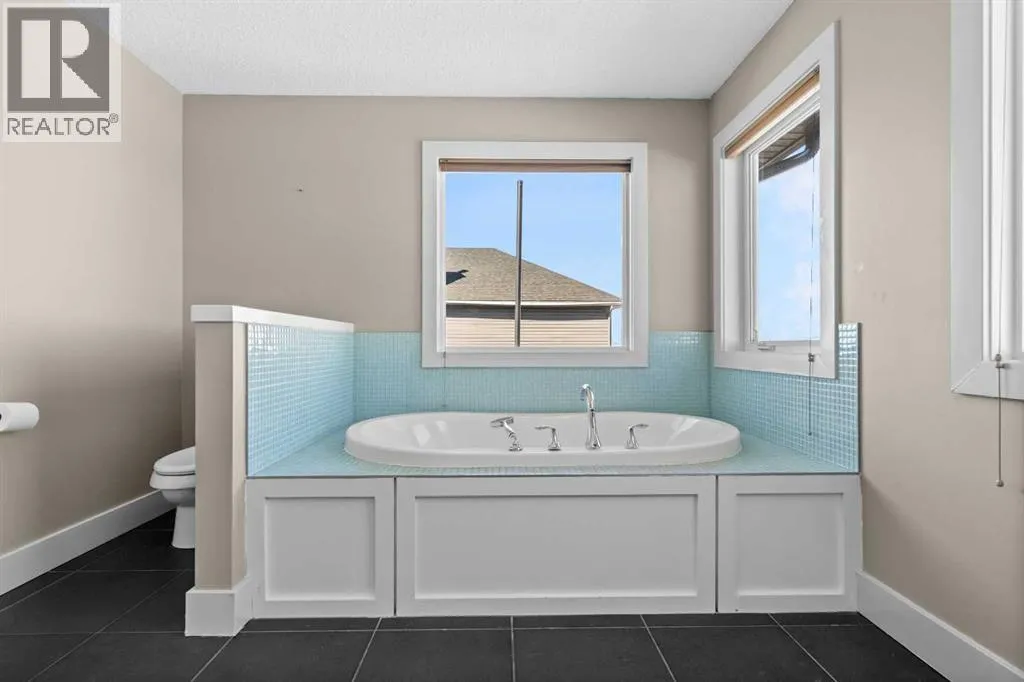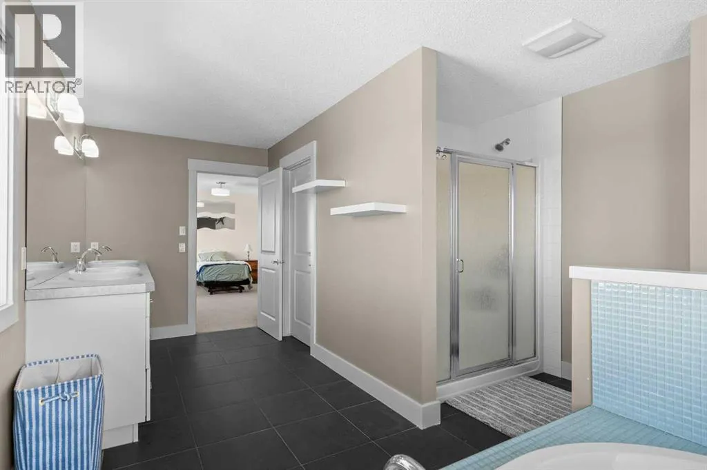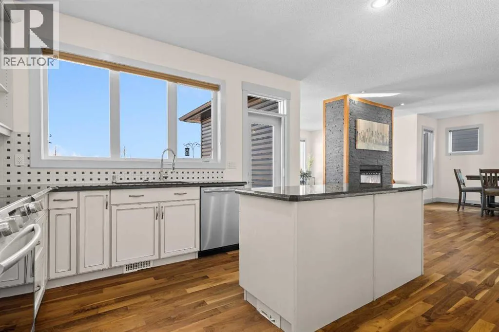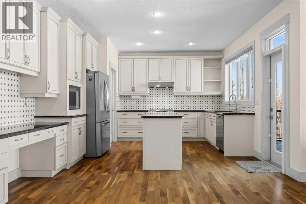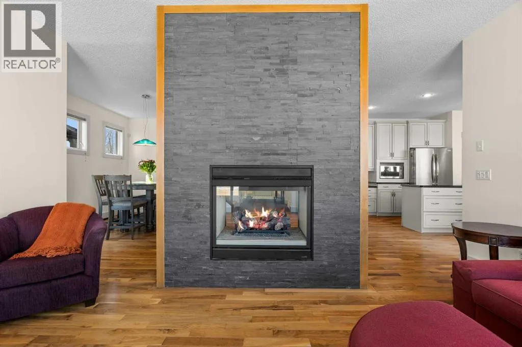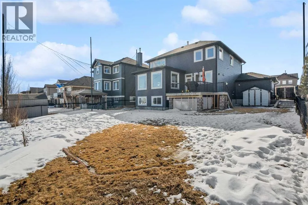A gorgeous home located on a large lot backing directly onto the golf course, this spacious home offers stunning views, exceptional living space, and a highly desirable layout. A charming front porch and impressive open-to-above tiled entry create a welcoming first impression, with a private office near the front doorâperfect for working from home. The main level features hardwood flooring throughout the kitchen, dining, and living areas, highlighted by a striking two-way stacked stone fireplace. The bright white kitchen offers abundant cabinetry, pot drawers, and new appliances (2024), while the large dining area surrounded by windows captures the beautiful golf course views. A walk-through pantry and functional mudroom with built-in lockers add everyday convenience. There is also a laundry room with laundry rough-in on the main floor. Upstairs, the huge primary suite offers a relaxing retreat with a walk-in closet and spacious ensuite featuring dual sinks, deep soaker tub, and oversized shower. Two additional bedrooms and a full bathroom complete the upper level. The finished basement provides even more living space with a large family/games room and an additional bedroom with cheater ensuite, featuring a jetted tub for two and an impressive oversized tiled shower with dual heads and rain shower. Enjoy outdoor living on the durable long-life deck overlooking the golf course, with a large yard, storage shed, and underground sprinkler system. Additional highlights include a triple car garage with 220 wiring, two furnaces, new hot water tank, HVAC system, and a sump pump. A great opportunity to own a spacious golf course property with incredible views and outstanding features throughout. View Multi Media/3D Virtual Tour. (id:27476)