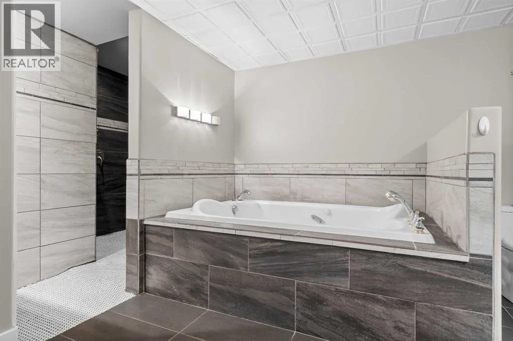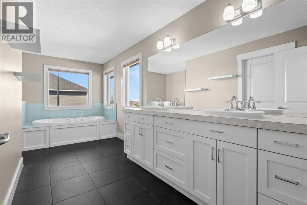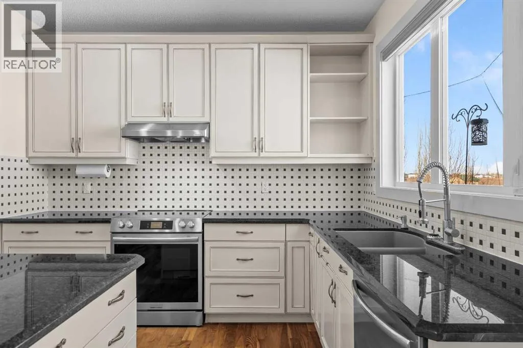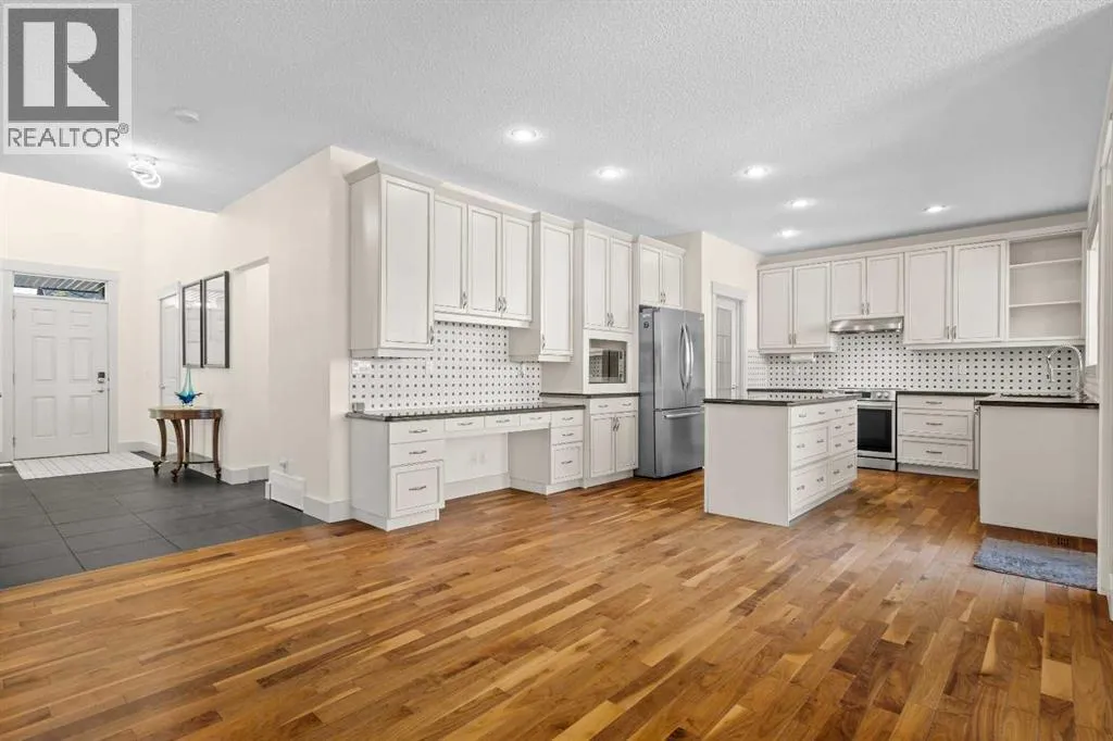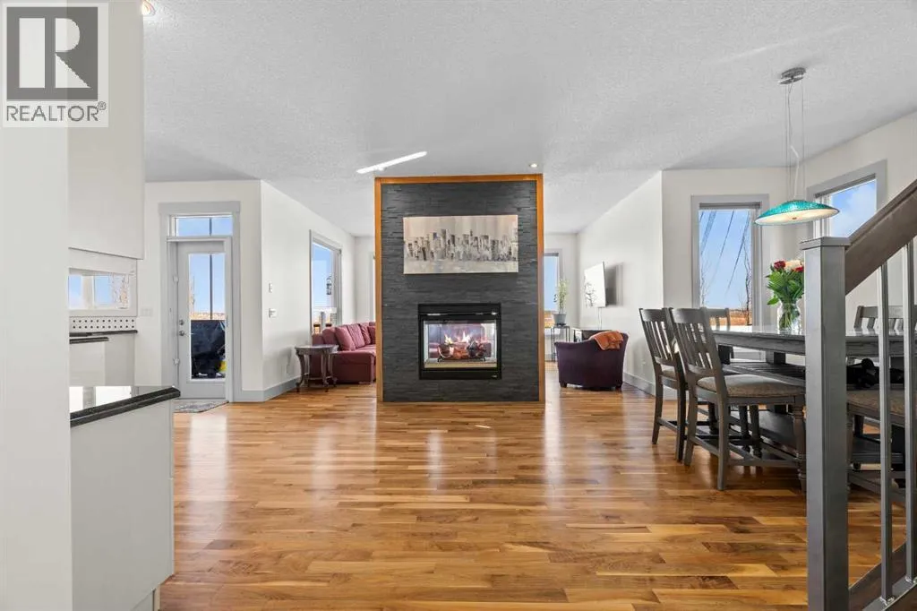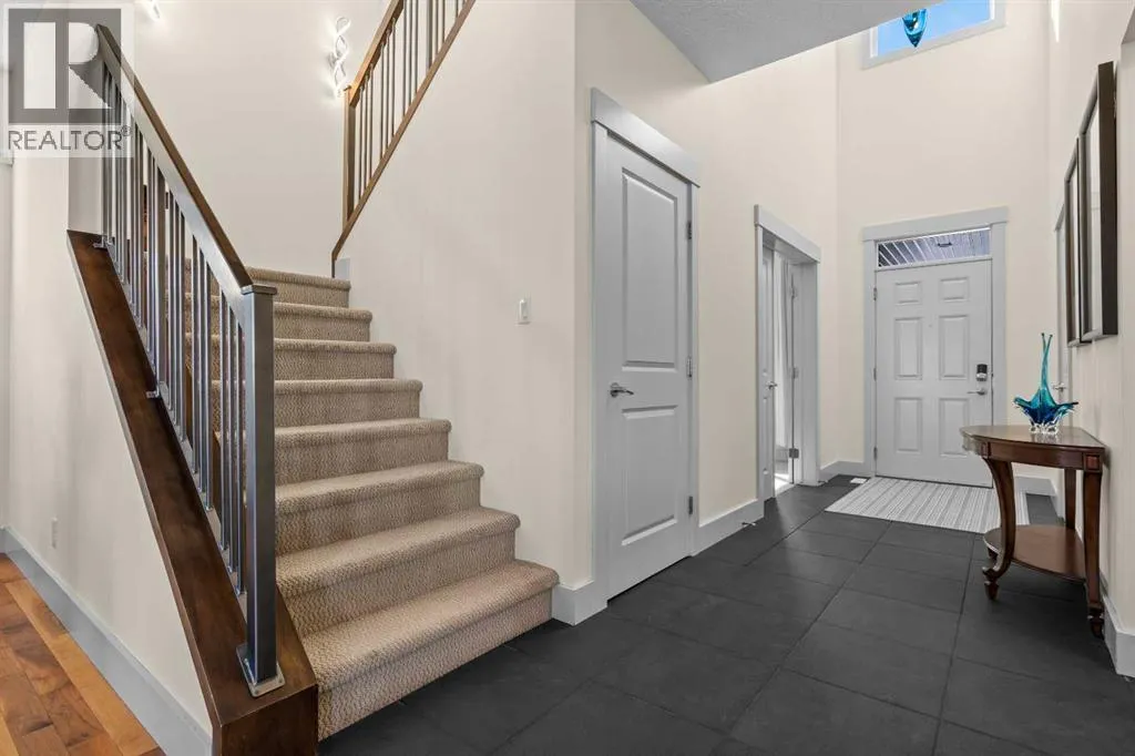 A gorgeous home located on a large lot backing directly onto the golf course, this spacious home offers stunning views, exceptional living space, and a highly desirable layout. A charming front porch and impressive open-to-above tiled entry create a welcoming first impression, with a private office near the front doorâperfect for working from home. The main level features hardwood flooring throughout the kitchen, dining, and living areas, highlighted by a striking two-way stacked stone fireplace. The bright white kitchen offers abundant cabinetry, pot drawers, and new appliances (2024), while the large dining area surrounded by windows captures the beautiful golf course views. A walk-through pantry and functional mudroom with built-in lockers add everyday convenience. There is also a laundry room with laundry rough-in on the main floor. Upstairs, the huge primary suite offers a relaxing retreat with a walk-in closet and spacious ensuite featuring dual sinks, deep soaker tub, and oversized shower. Two additional bedrooms and a full bathroom complete the upper level. The finished basement provides even more living space with a large family/games room and an additional bedroom with cheater ensuite, featuring a jetted tub for two and an impressive oversized tiled shower with dual heads and rain shower. Enjoy outdoor living on the durable long-life deck overlooking the golf course, with a large yard, storage shed, and underground sprinkler system. Additional highlights include a triple car garage with 220 wiring, two furnaces, new hot water tank, HVAC system, and a sump pump. A great opportunity to own a spacious golf course property with incredible views and outstanding features throughout. View Multi Media/3D Virtual Tour. (id:27476)