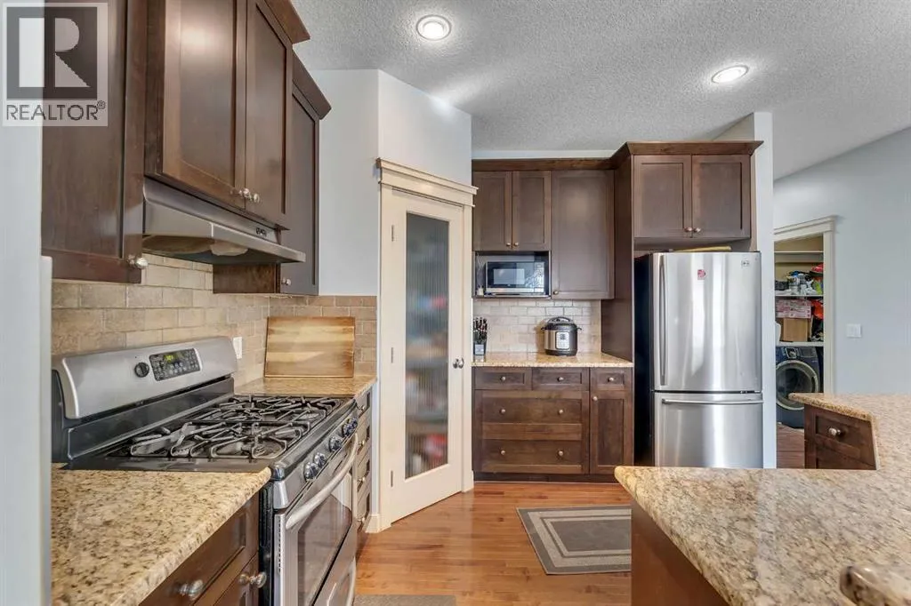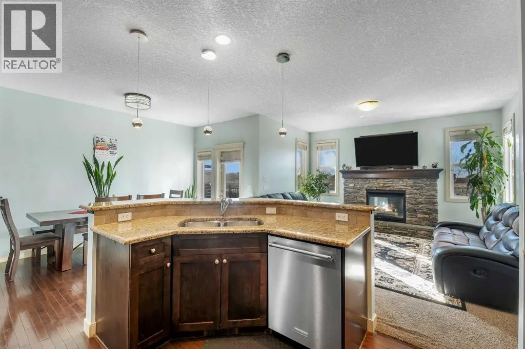 Nestled in the picturesque hamlet of Langdon, this beautifully finished 6 bedroom home offers exceptional space, comfort, and lifestyle both inside and out. From the moment you step into the welcoming front foyer, youâre greeted by soaring ceilings and transom windows that fill the space with natural light and create an impressive first impression.Just off the entry is the perfect home office, room ideal for working or studying from home. Elegant textured glass French doors allow sunlight to filter through while maintaining the privacy you need.The main living area showcases bright, open-concept living and hardwood floors, creating a warm and inviting space perfect for entertaining or everyday family life. The well-designed kitchen is sure to impress with sleek dark cabinetry, granite countertops, stainless steel appliances including a gas range, a raised breakfast bar with seating, and a convenient corner pantry. It flows effortlessly into the spacious dining area, offering plenty of room for hosting family gatherings or dinner parties. The cozy stone fireplace with a wooden mantel adds warmth and character, making the living room the perfect place to relax.Upstairs, youâll find three generously sized bedrooms, including a tranquil primary retreat complete with a walk-in closet and private 4-piece ensuite. The additional bedrooms share the main bathroom. This level also features a large bonus room, currently used as a bedroom but easily transformed into a playroom, media room, games room, or home gym.The fully finished basement provides even more versatile living space with a large recreation area, two additional bedrooms, and a full bathroomâideal for teenagers, guests, or extended family.Step outside to what may be the homeâs most spectacular feature: a huge west-facing backyard backing directly onto the canal. Enjoy peaceful open views and direct access to the pathway system for walking and biking. The backyard is designed for year-round enjoyment wi th a two-tier deck, a large storage shed, and plenty of space for kids and pets to play.Additional highlights include central air conditioning, central vacuum, a water softener, and heated garage.This wonderful home offers the perfect balance of comfort and lifestyle, along with the friendly small-town charm of Langdon, known for its great schools, local businesses, and easy access to the city. A truly special place to call home. Hurry and book a showing for this gorgeous home today!" (id:27476)
