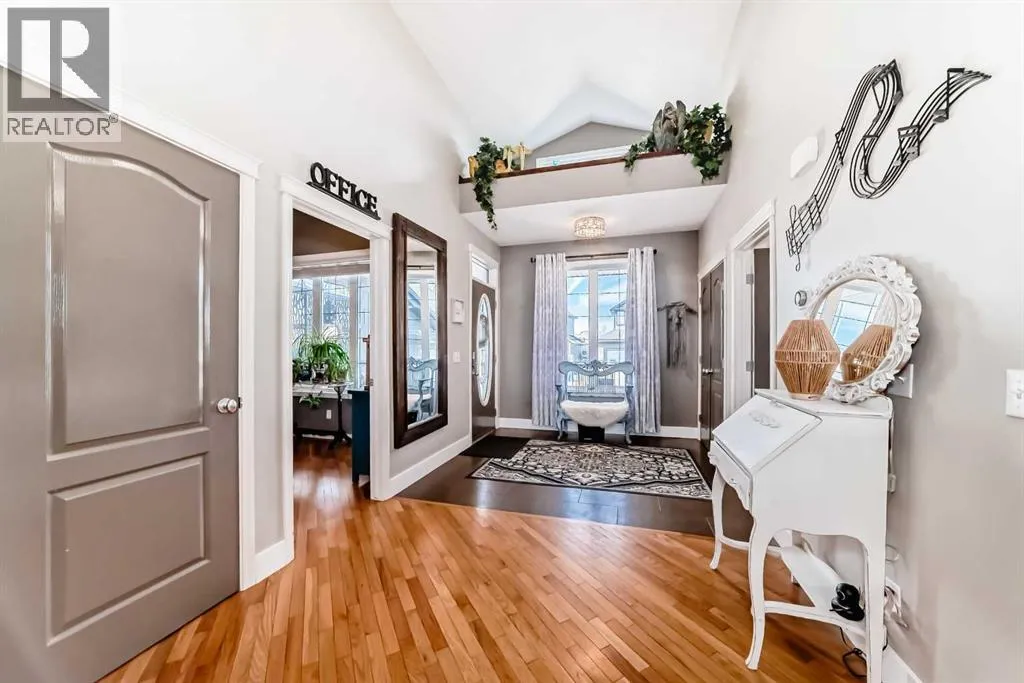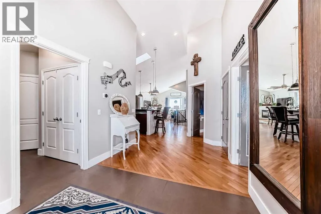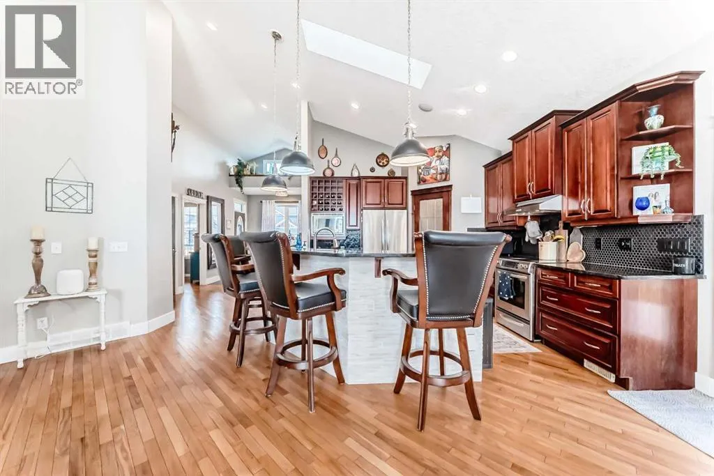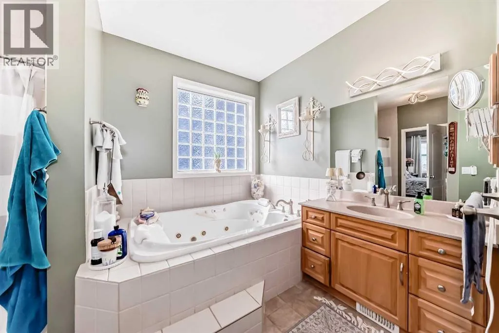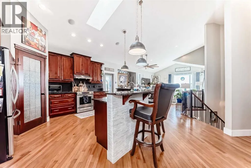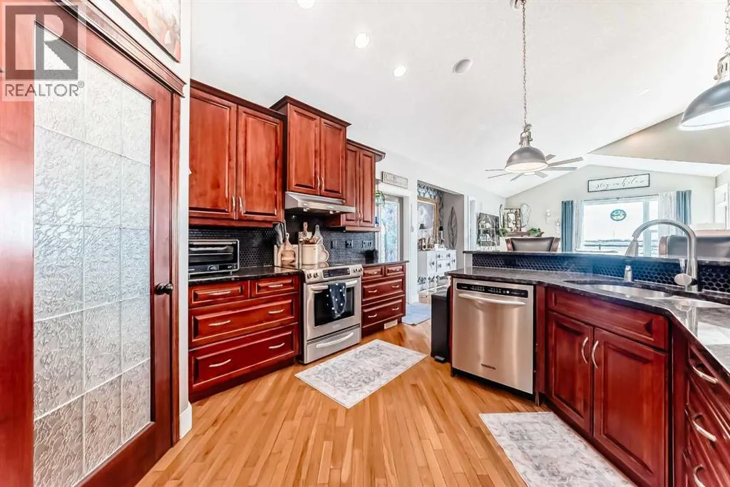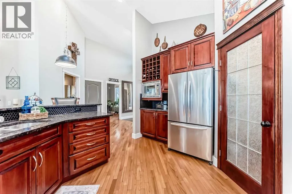 Beautiful 3-bedroom walk-out bungalow in the sought-after Boulder Creek Estates, perfectly positioned on the Par 3 11th fairway with stunning golf course views! Enjoy the spacious, private east-facing deck, complete with gas line hookup - perfect for relaxing while taking in the peaceful surroundings and the occasional golfer passing by. This outstanding open-concept bungalow features a welcoming foyer finished with cork flooring and vaulted ceilings throughout the main level. The kitchen has abundant cabinetry, a large island with an eating bar, granite countertops, and Whirlpool appliances, all opening to the living room with huge windows with a great view of the golf course. A newer deck with access from the kitchen is a great spot for a BBQ or smoker! The main level offers a spacious mudroom/laundry room complete with a sink and a convenient walk-through pantry. The oversized heated double garage features newer epoxy flooring and ample space for a workbench. The primary suite features a walk-in closet with stylish barn doors and a spacious ensuite, complete with a jetted tub and a separate shower. Also on the main level is a 2-piece bathroom and a versatile office/den. Downstairs features two bedrooms, both with walk-in closets, and a spacious 4-piece bathroom. The rec room flows into the family room, complete with a wet bar rough-in, and offers walk-out access to the covered patio and a private yard with a paved patio with gas line, sidewalks, and a hot tub rough-in. This exceptional home is wired for sound throughout, with speakers on both levels, both decks, the patio, and even the garage. The utility room also features newer epoxy flooring. Conveniently located close to schools and great restaurants, it offers the feel of living outside the city while still enjoying nearby amenities. This is one you donât want to miss! (id:27476)