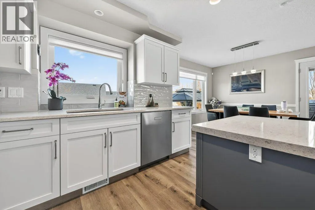 Tucked into the quiet, family-friendly enclave of Henderson Bay, this beautifully maintained two-storey home offers the perfect blend of space, functionality, and small-town charm. Set on an impressive 0.25-acre lot, the property delivers the kind of breathing room and backyard lifestyle that makes Langdon so sought after.With 1980 sq ft above grade plus a fully finished basement, this home is designed for growing families and effortless entertaining. The main floor offers a warm and inviting layout, ideal for both everyday living and hosting, while large windows frame views of the stunning backyardâyour own private retreat with room to relax, play, and gather. Upstairs, youâll find three spacious bedrooms, including a large primary suite with 4 piece ensuite, creating the perfect separation between living and rest. The fully developed lower level expands your options with two additional bedrooms and a dedicated workout roomâperfect for active lifestyles, guests, or flexible family needs.Car enthusiasts, hobbyists, or those simply craving extra space will appreciate the rare combination of a heated double attached garage with a workshop, plus an oversized, heated double detached garage (27'8" x 23')âoffering ample room for vehicles, storage, and projects.Step outside and experience what truly sets this home apart: a beautifully landscaped quarter-acre yard that invites connection, whether itâs summer barbecues, kids playing freely, or quiet evenings under Albertaâs wide-open skies. Other things to note: Triple Pane Window (Aug 2025), Roof (2024), Siding (2024), Sump Pump (2026) (id:27476)