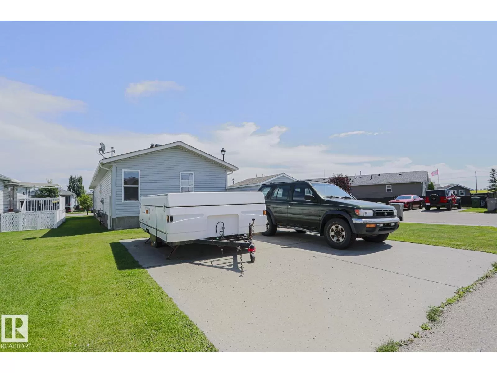 Attractive three bedroom bungalow in desirable Aspen Creek land lease community. You can have it all! Top 10 benefits of life in Leduc's best kept secret: 1. Affordable private residence with fenced yard for your pets' and kids' enjoyment. 2. Huge kitchen with lots of cabinets and counter space to cook your way. 3. Expansive dining area where you can share delicious meals with family and friends. 4. Vaulted ceiling in grand living room with room for your sectional sofa, comfy recliners, end tables, ottoman, big screen TV and more! 5. King size owners' suite with walk-in closet and three piece ensuite. There's a place for a reading lamp and chair too! 6. Other end has two good size bedrooms and a full 4 piece bath to ensure everyone is happy. 7. Convenient laundry room offers storage, freezer area and includes washer and dryer. 8. Back porch and front foyer with good closet space. 9. Super-sized storage shed for all your outdoor toys and accessories. 10. Two vehicle parking pad. Bonus Fun Community Centre! (id:27476)