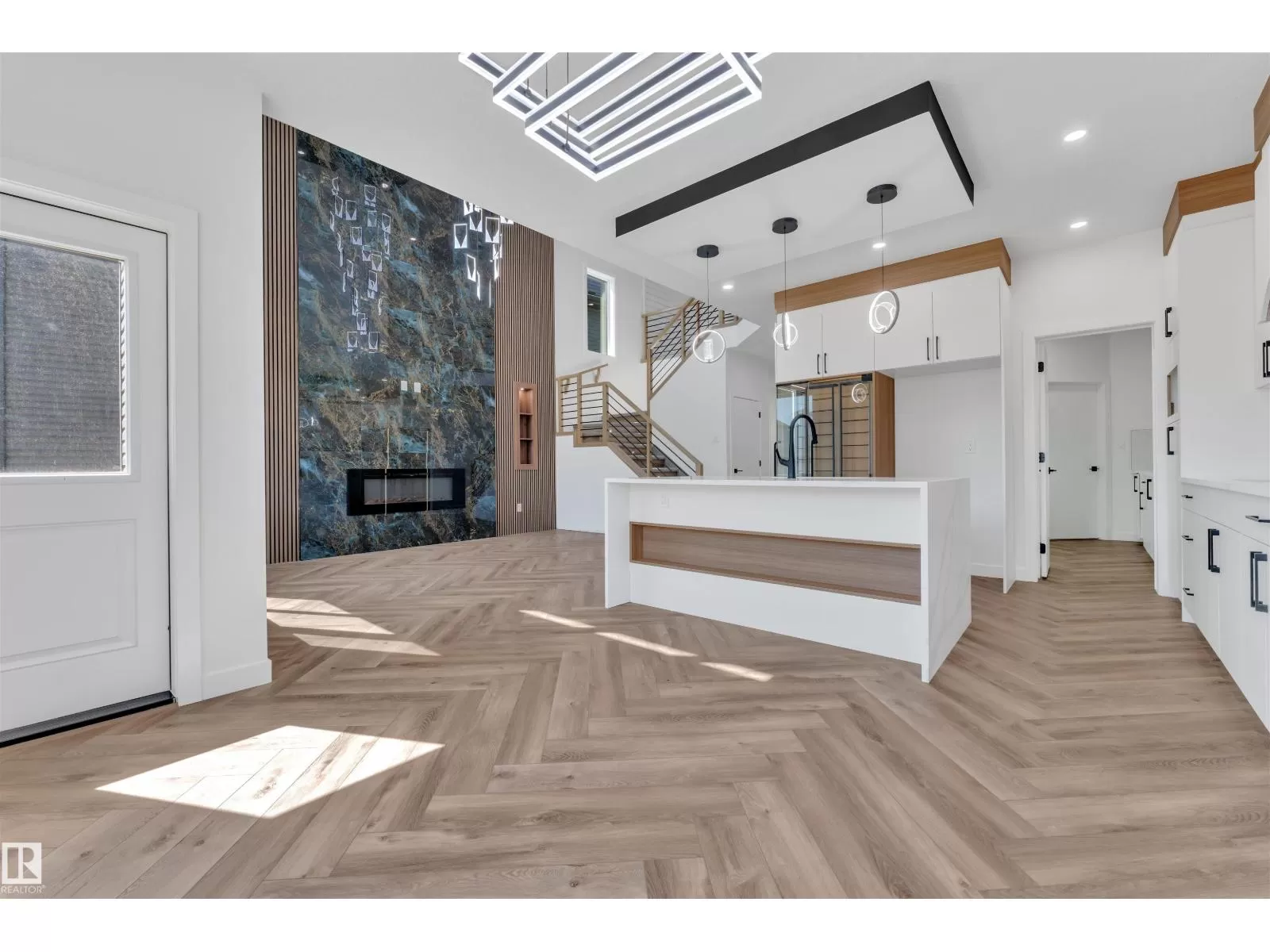 5 Br 4 bath || Stunning Double car Garage || The main floor welcomes you with an open layout that flows effortlessly. Open to above Living area with feature wall & electric fireplace . Main floor bedroom and full bathroom. BEAUTIFUL Built In Kitchen truly a masterpiece with Centre island. Spice Kitchen. Dining nook with access to backyard. Mud room with MDF Shelves. Oak staircase leads to bonus room. 4 bedrooms on upper level with 3 bathrooms. Huge Primary br with 5pc fully custom ensuite & W/I closet. Two more br's with jack & jill bathroom. Another bedroom with common bathroom. Laundry on 2nd floor. Side entrance for basement. (id:27476)