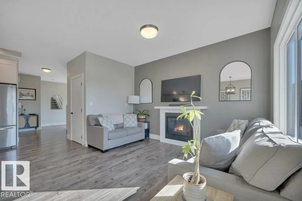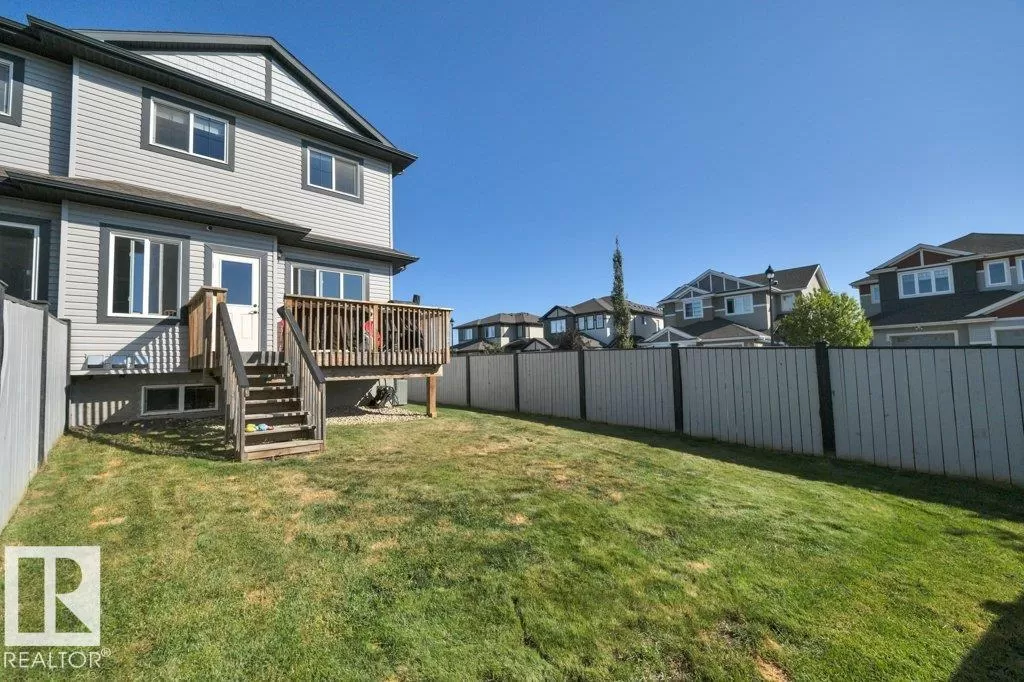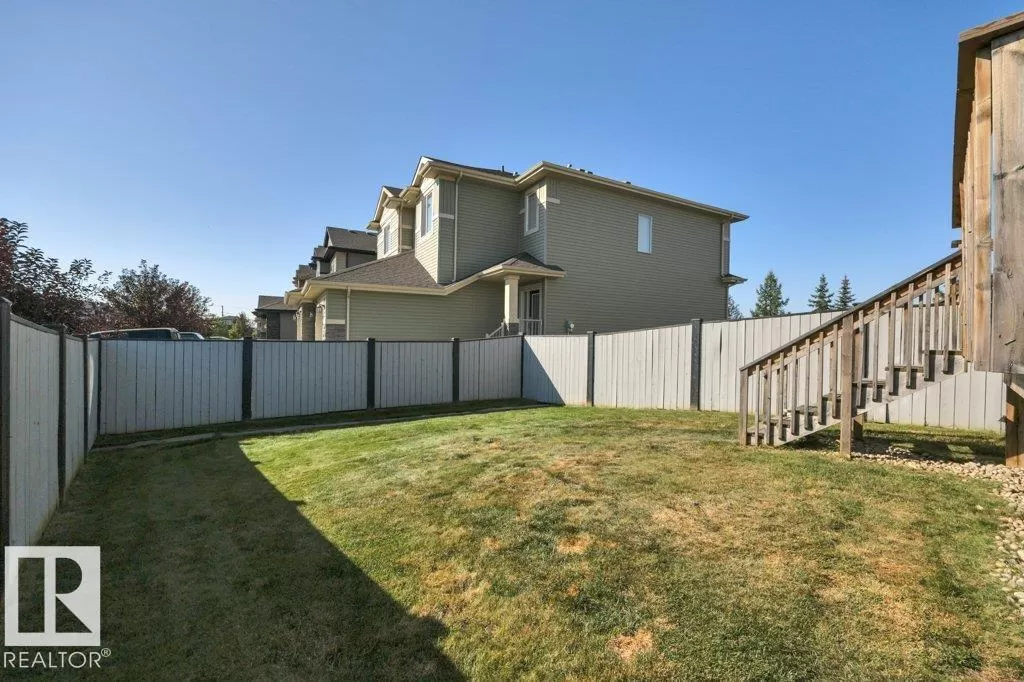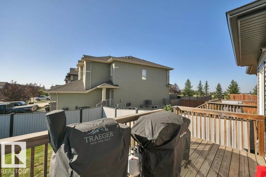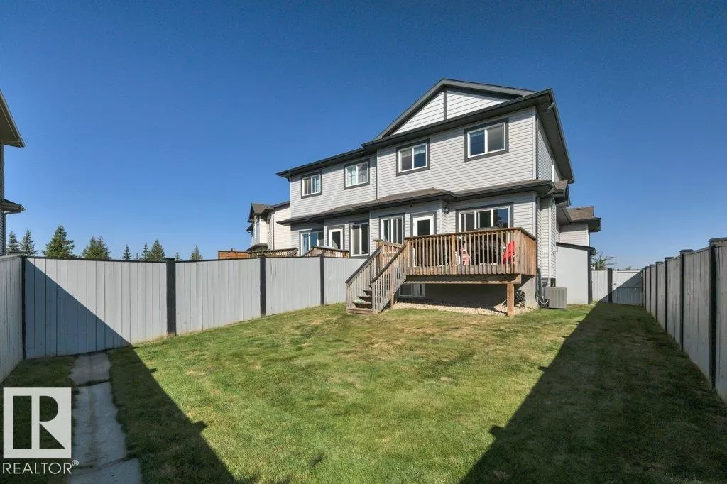 Stunning half-duplex in Suntree with a finished basement, double garage, A/C and beautiful finishes! The open-concept floor plan is flooded with natural light and shows off the well-appointed kitchen with large cabinets, quartz countertops and stainless steel appliances. The living room offers a cozy gas fireplace, and the dining room is spacious with a door that leads to the rear deck and a fully fenced backyard. Upstairs has 3 bedrooms, including the primary with a walk-in closet, a 4-piece ensuite, as well as convenient upper-floor laundry, and an additional 4-piece bathroom. The basement is professionally finished with a 4th bedroom, a 3-piece bathroom, a storage area, and a large rec room. This property is close to all amenities and has easy access to the highway for your commute. There is a double attached garage and an extra-long driveway. Located in a cul-de-sac, but has the added benefit of plenty of extra parking for your guests. (id:27476)