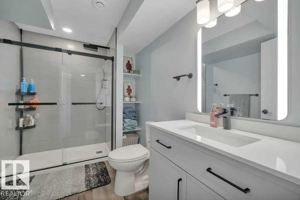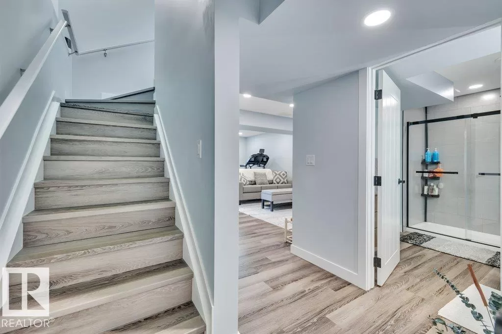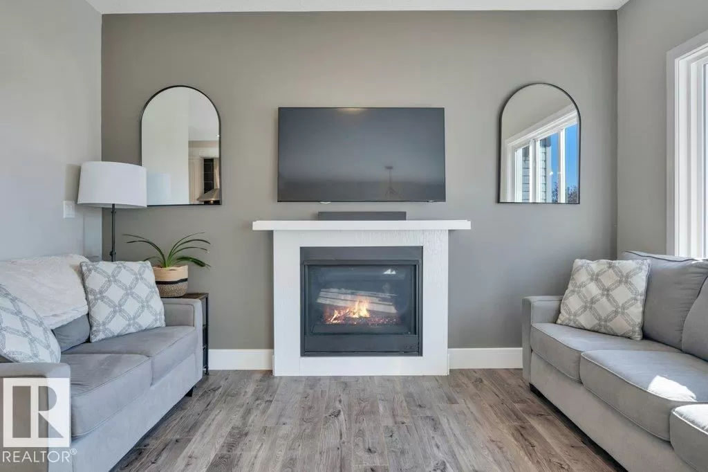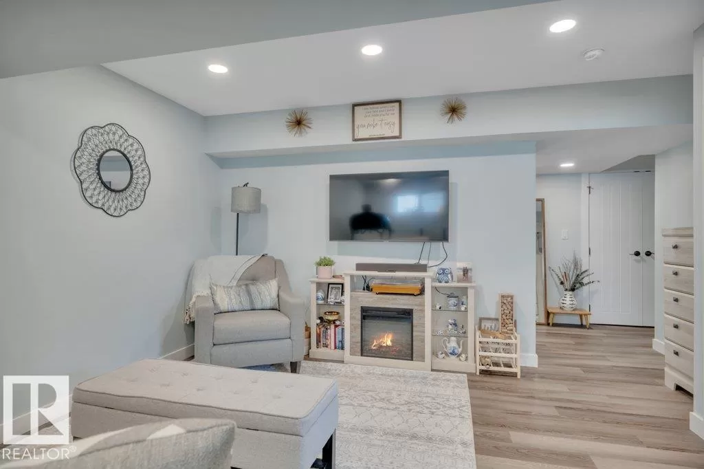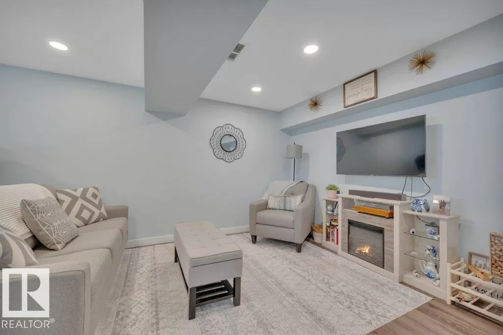 Stunning half-duplex in Suntree with a finished basement, double garage, A/C and beautiful finishes! The open-concept floor plan is flooded with natural light and shows off the well-appointed kitchen with large cabinets, quartz countertops and stainless steel appliances. The living room offers a cozy gas fireplace, and the dining room is spacious with a door that leads to the rear deck and a fully fenced backyard. Upstairs has 3 bedrooms, including the primary with a walk-in closet, a 4-piece ensuite, as well as convenient upper-floor laundry, and an additional 4-piece bathroom. The basement is professionally finished with a 4th bedroom, a 3-piece bathroom, a storage area, and a large rec room. This property is close to all amenities and has easy access to the highway for your commute. There is a double attached garage and an extra-long driveway. Located in a cul-de-sac, but has the added benefit of plenty of extra parking for your guests. (id:27476)