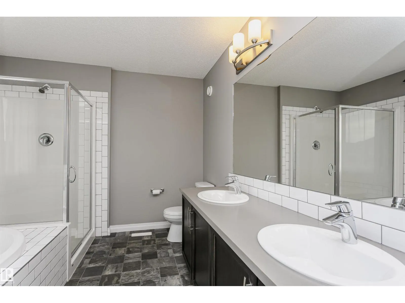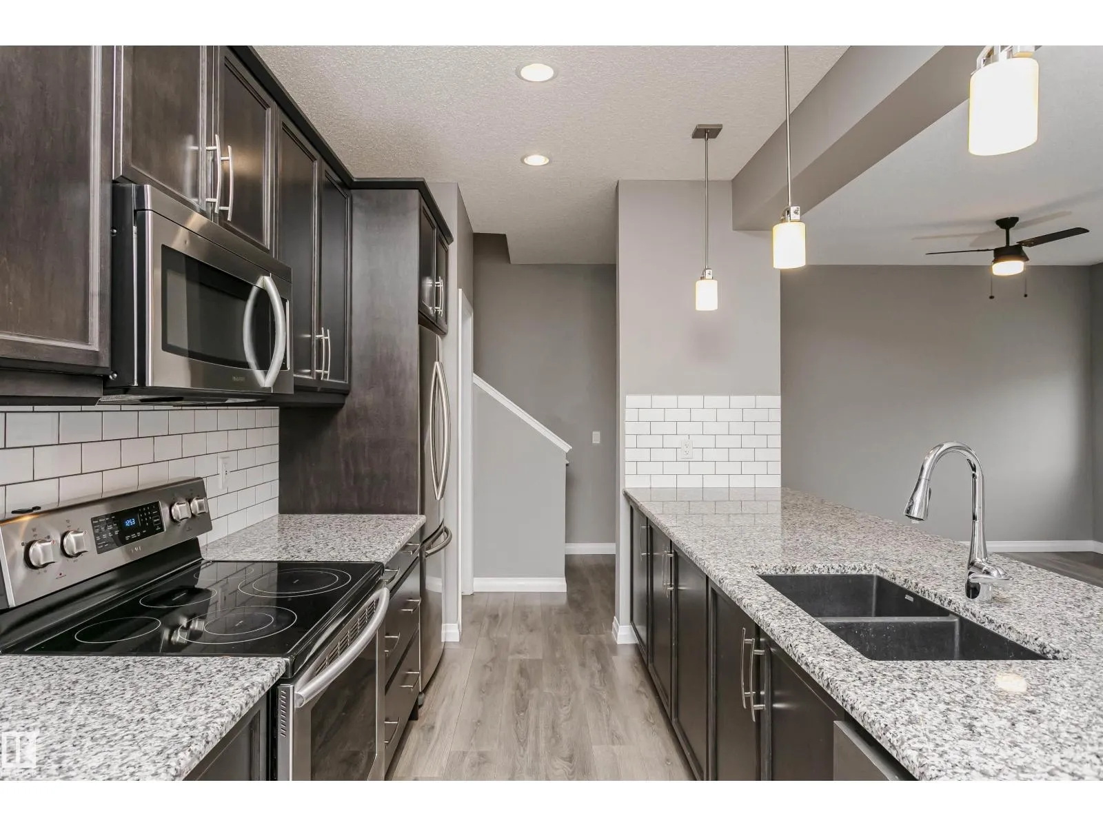 In the heart of family neighborhood of SouthFork. This elegent 2 storey home has a fantastic location, backing on a walking trail which takes you to Catholic K-8 School, Playground and Lake. Built by Jayman in 2016, this home offers all the conveniences and space to grow your family. Separate side entrance to future basement suite. Bright, open design, livingroom has direct access to back deck and large triple-pane windows, new blinds, overlooking kids playing in the backyard. Laminate flooring on main for easy cleanup with plush carpets on upper levels. Galley kitchen with Dark Expresso cabinets set against contrasting quartz countertops and granite undermount sink. S/S appliances, subway tile backsplash and pendent lighting over the extended countertop. Generous family room on upper level perfect for movie nights. Master suite features walk-in closet and spa-like 5 pce ensuite. H/E furnace and On-demand water system. Huge Oversized double garage offers plenty of space for a workbench and floor drain. (id:27476)