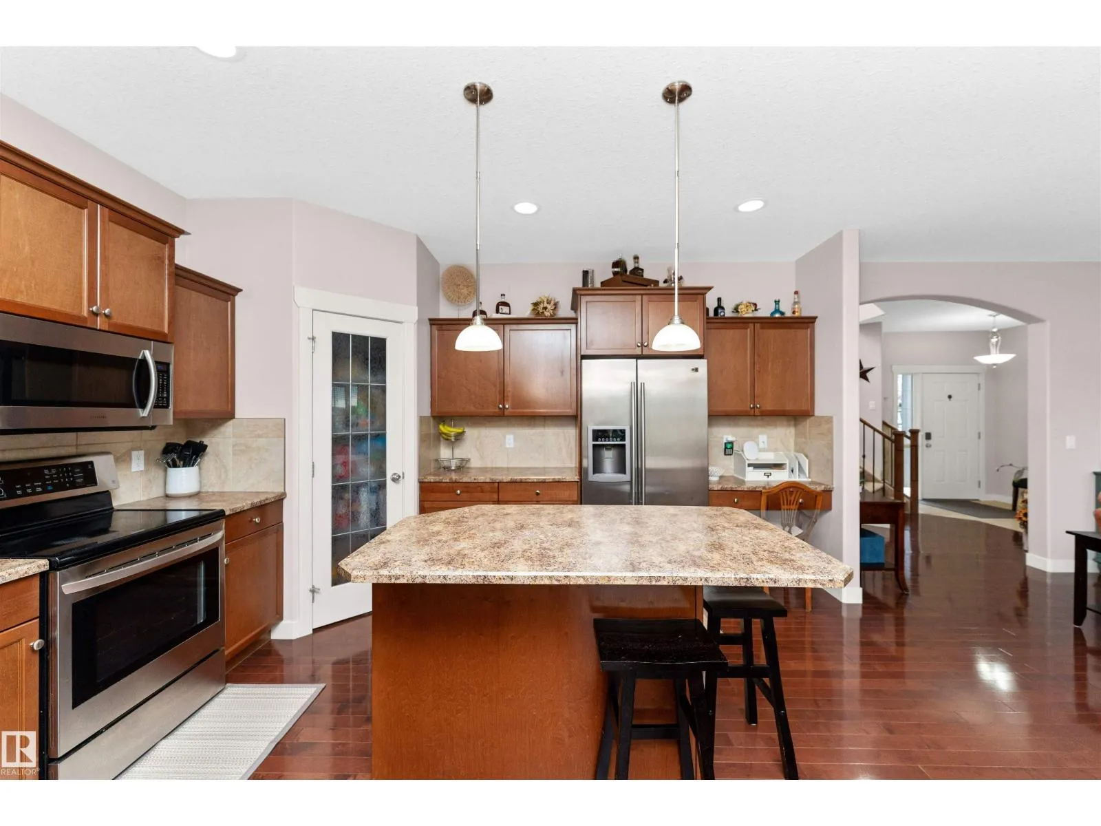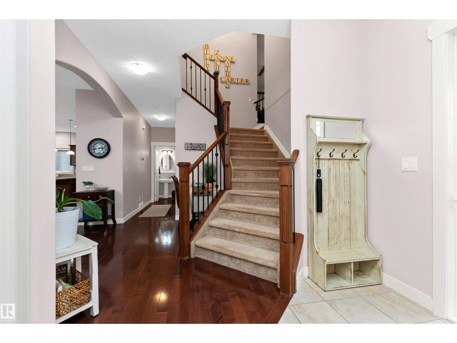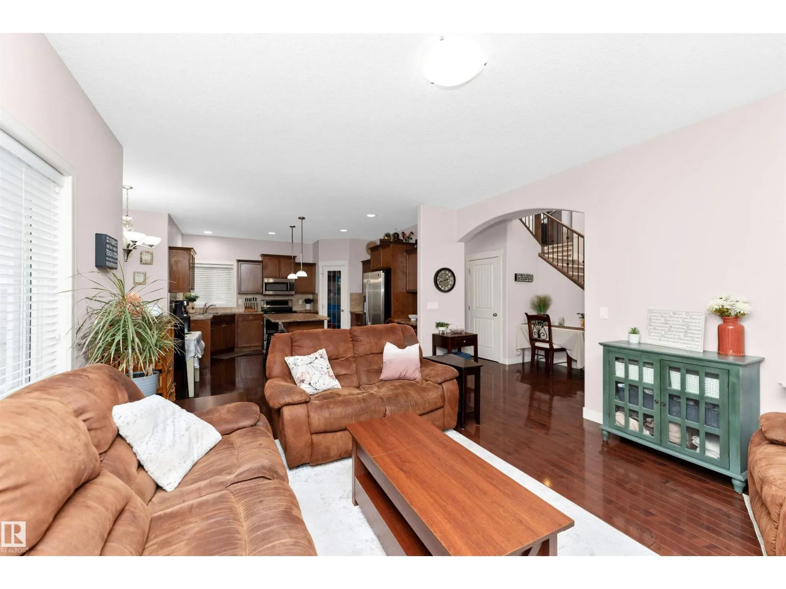 Welcome to Windrose in family oriented Leduc! Widely regarded as Leduc's Premier Community. Windrose offers architecturally controlled streetscapes that link to the community's professionally planned parks, community lake & multi-way path system. This gem is tucked away on a quiet street. Over 1900 Sq. Ft. PLUS a FULLY DEVELOPED BASEMENT. Built by Jacob's Construction. FEATURES INCLUDE: 4 Bedrooms, 4 Bathrooms. Spacious Bonus Room & Oversized Garage. UPGRADES & EXTRAS: 9 Ft Ceilings, Rich Hardwood Flooring, Contemporary Tile, Fireplace w/ Mantle/ Nook. Abundance of Quality Kitchen Cabinetry, Corner Pantry, Large Kitchen Island. Master Bedroom Features a Walk-in Closet & Ensuite Bath w/ a Jetted Tub. Additional Features: Front & Rear Maintenance Free Decks, Professionally Landscaped & Fenced. No Neighbors Behind Property. Ownership Includes: Leading Brand Name Stainless Appliances, Front Load Washer/ Dryer, Built-in Vacuum System, Custom Window Coverings and a NEW AC UNIT installed 2024 (id:27476)