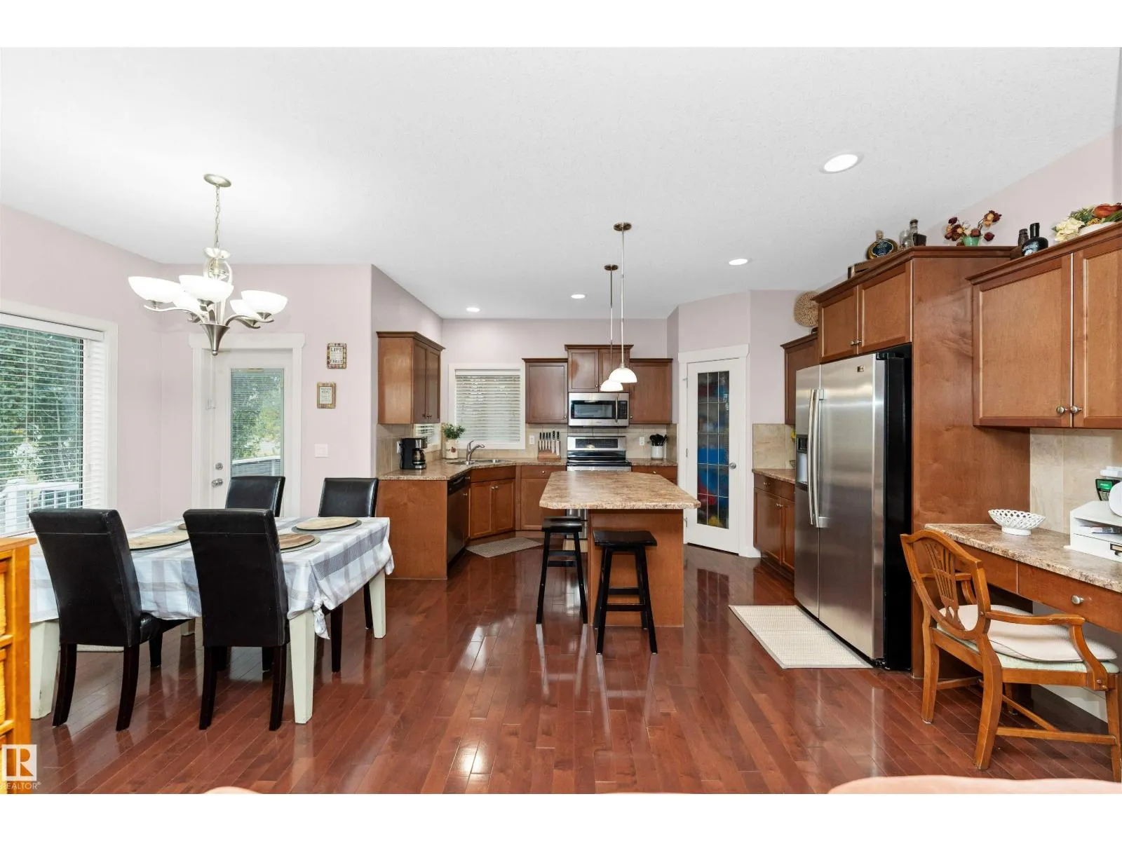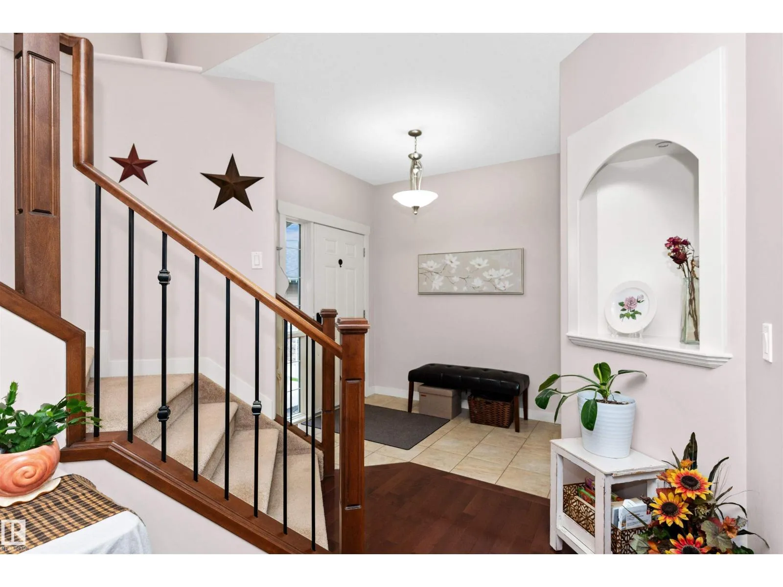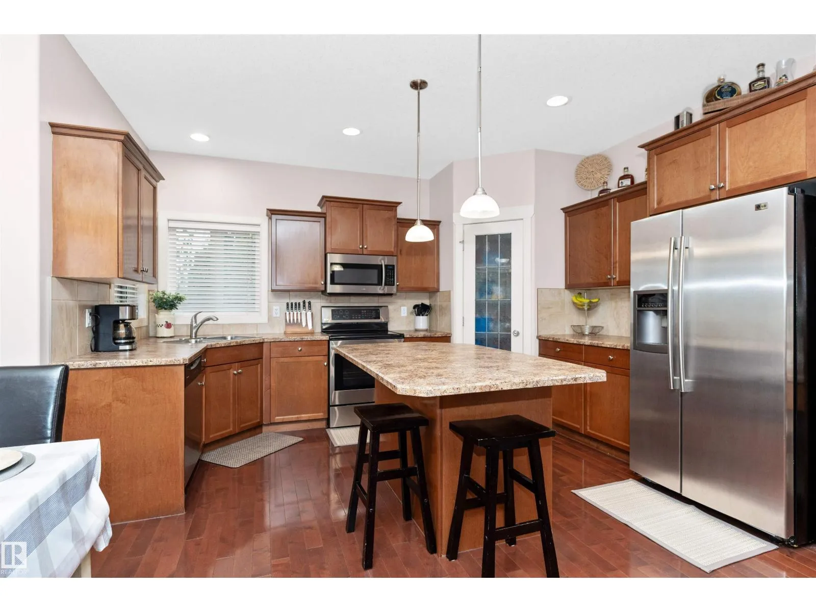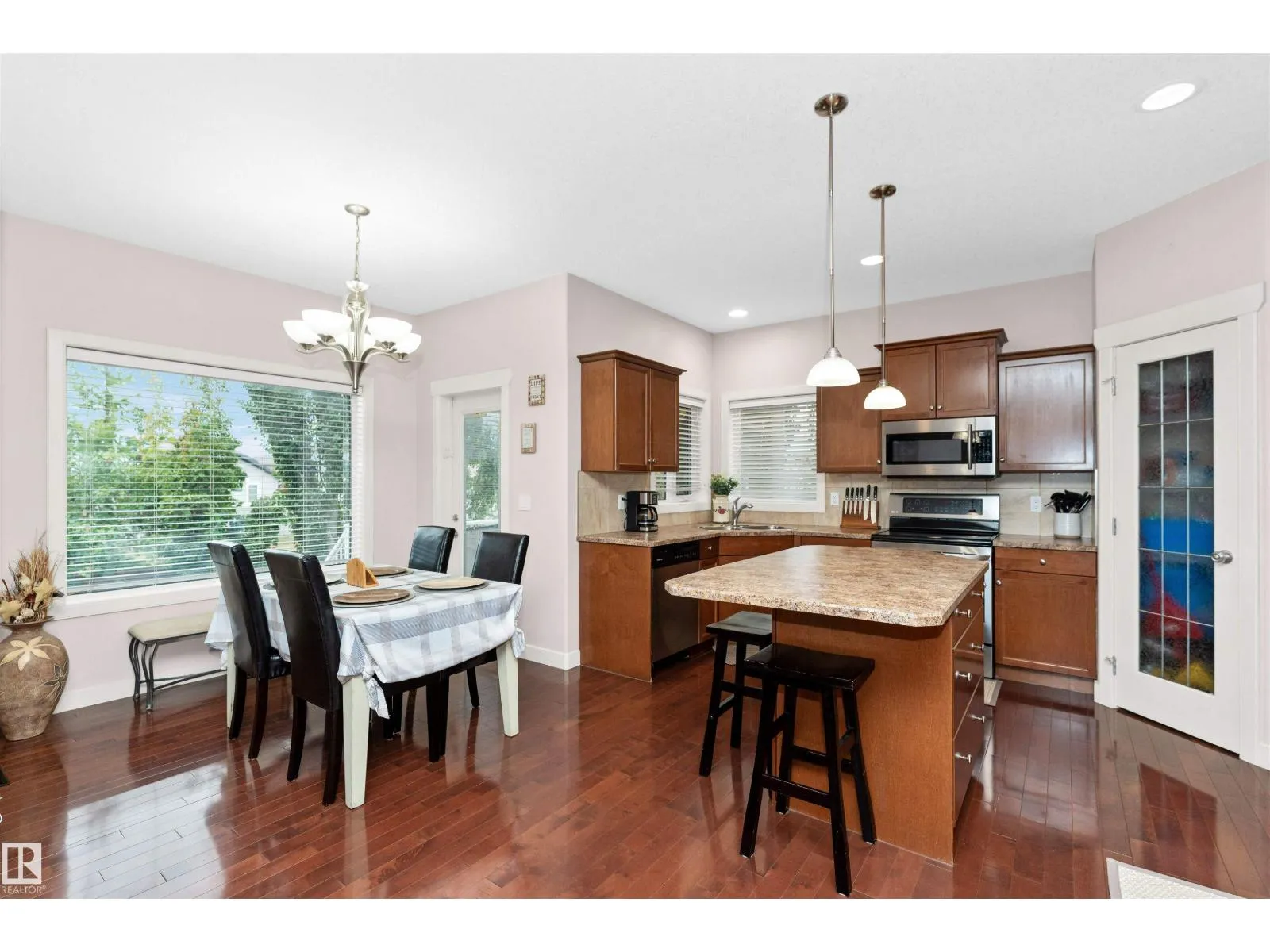 Welcome to Windrose in family oriented Leduc! Widely regarded as Leduc's Premier Community. Windrose offers architecturally controlled streetscapes that link to the community's professionally planned parks, community lake & multi-way path system. This gem is tucked away on a quiet street. Over 1900 Sq. Ft. PLUS a FULLY DEVELOPED BASEMENT. Built by Jacob's Construction. FEATURES INCLUDE: 4 Bedrooms, 4 Bathrooms. Spacious Bonus Room & Oversized Garage. UPGRADES & EXTRAS: 9 Ft Ceilings, Rich Hardwood Flooring, Contemporary Tile, Fireplace w/ Mantle/ Nook. Abundance of Quality Kitchen Cabinetry, Corner Pantry, Large Kitchen Island. Master Bedroom Features a Walk-in Closet & Ensuite Bath w/ a Jetted Tub. Additional Features: Front & Rear Maintenance Free Decks, Professionally Landscaped & Fenced. No Neighbors Behind Property. Ownership Includes: Leading Brand Name Stainless Appliances, Front Load Washer/ Dryer, Built-in Vacuum System, Custom Window Coverings and a NEW AC UNIT installed 2024 (id:27476)