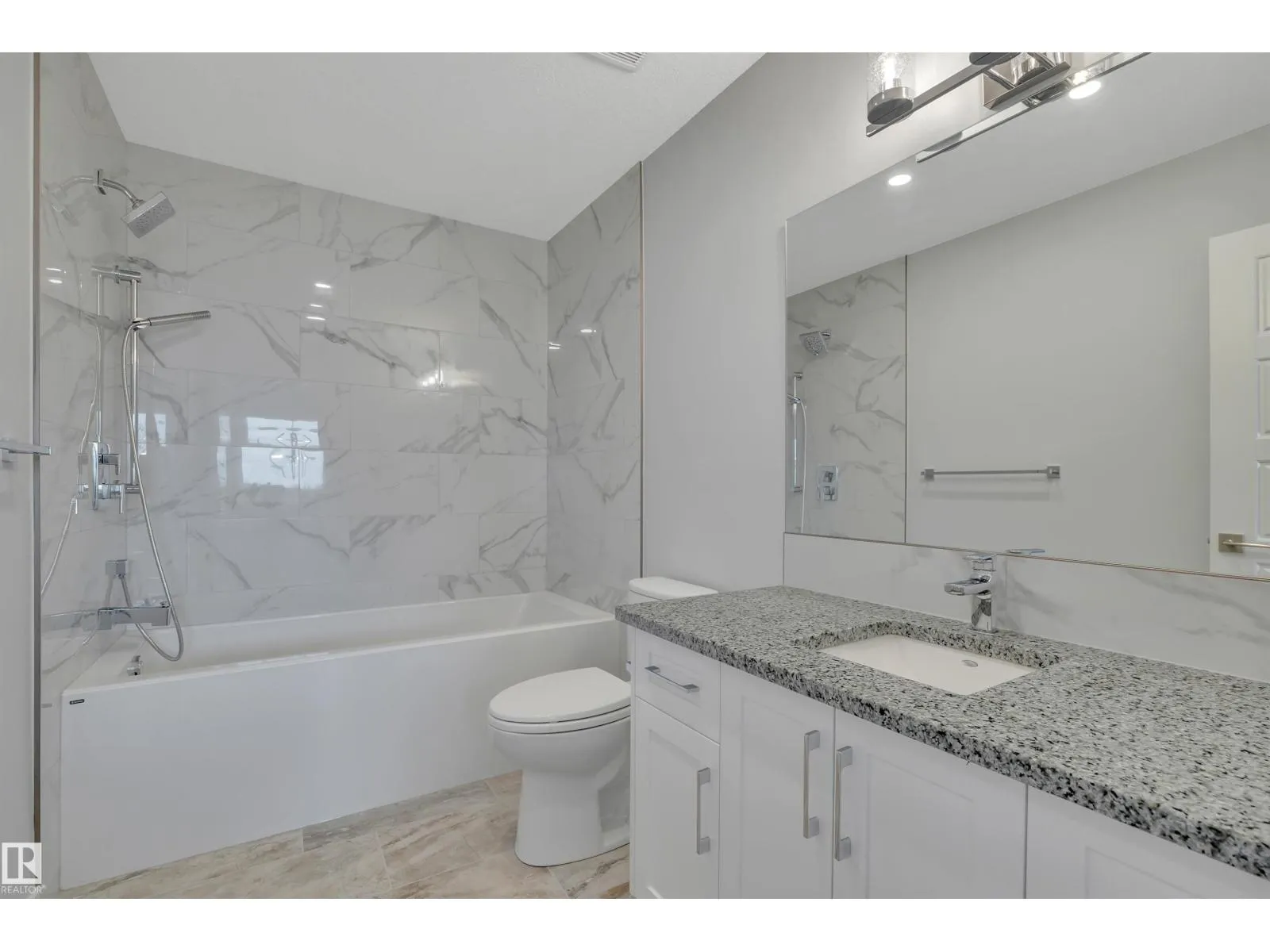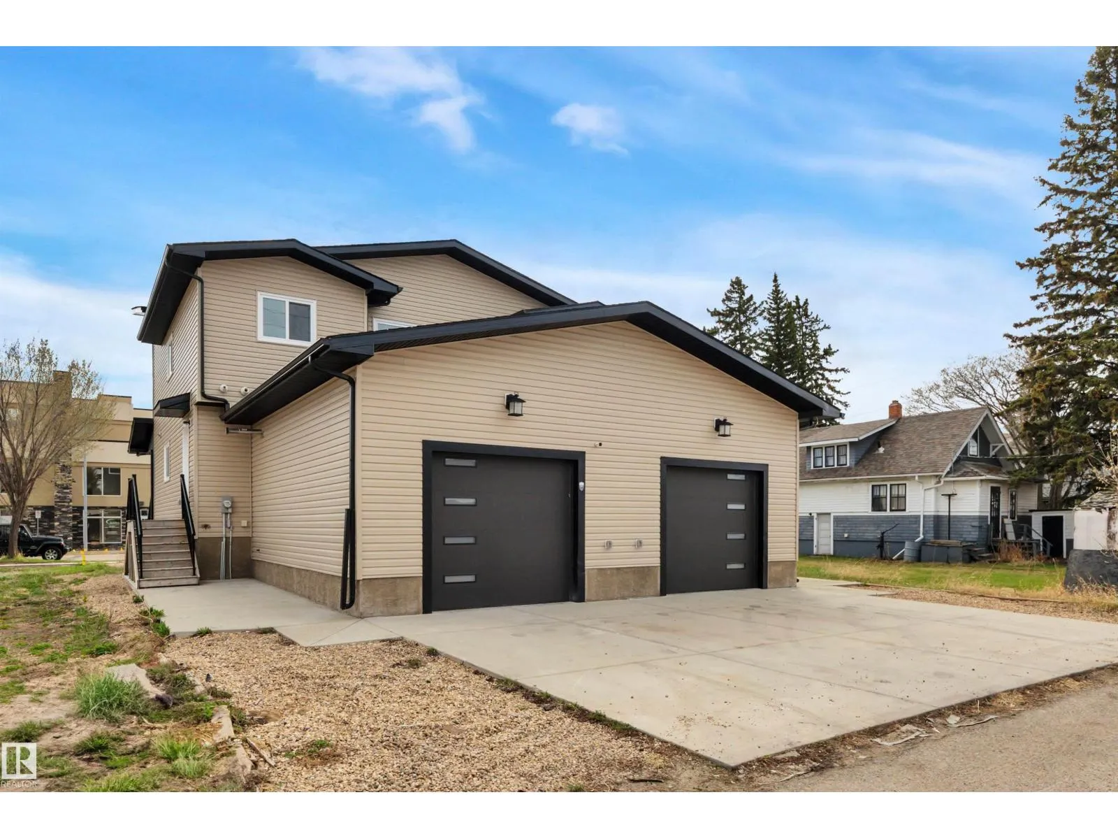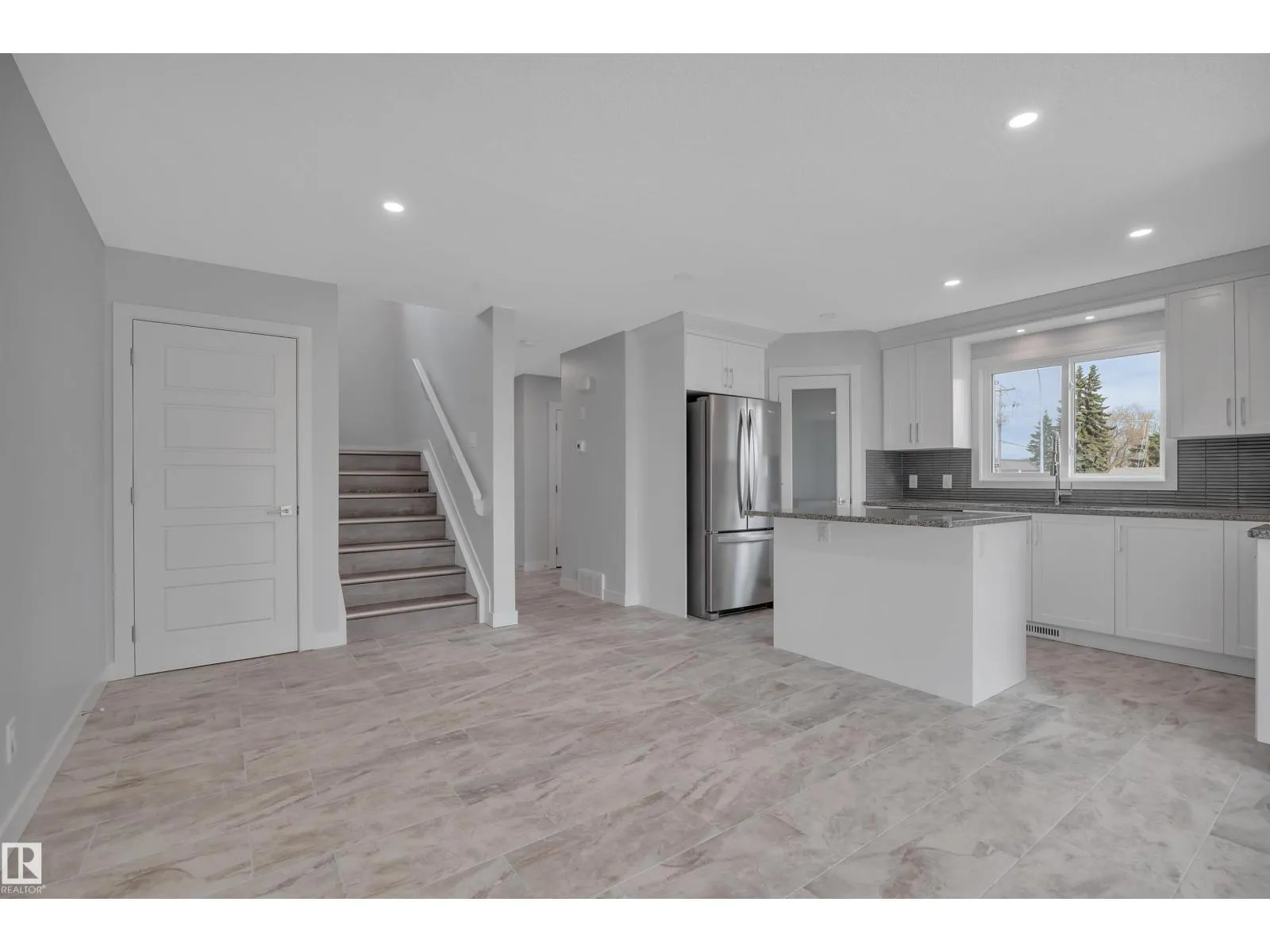 Updated half duplex (2025) in a highly desirable neighborhood of Leduc. This meticulously updated property features a modern, spacious kitchen with new cabinets, granite countertops, brand new appliances, and elegant porcelain tile floors. Large windows on the main floor flood the living space with natural light, creating a bright and inviting atmosphere. Enjoy energy efficiency with zone heating throughout and premium triple-pane windows on both floors for superior insulation and noise reduction. Each unit boasts three generous bedrooms upstairs, including a luxurious 3-pce ensuite in the primary bedroom and a 4-pce main bath. Convenient upper-floor laundry adds to the appeal. The open-concept main floor offers a bright living room, a cozy 2-pce bath, and a stylish kitchen perfect for family living or entertaining. The finished basement includes an additional bedroom with a 3-pce bath and a large recreation room, ideal for guests or a home office. (id:27476)
