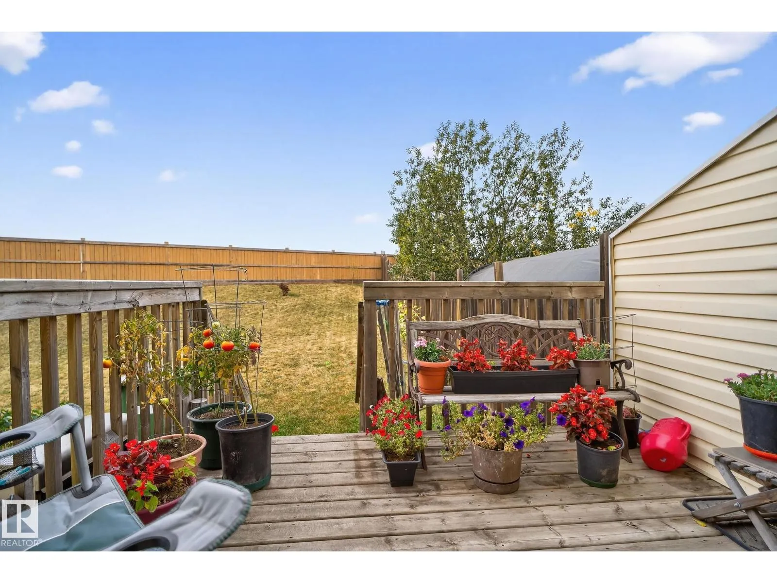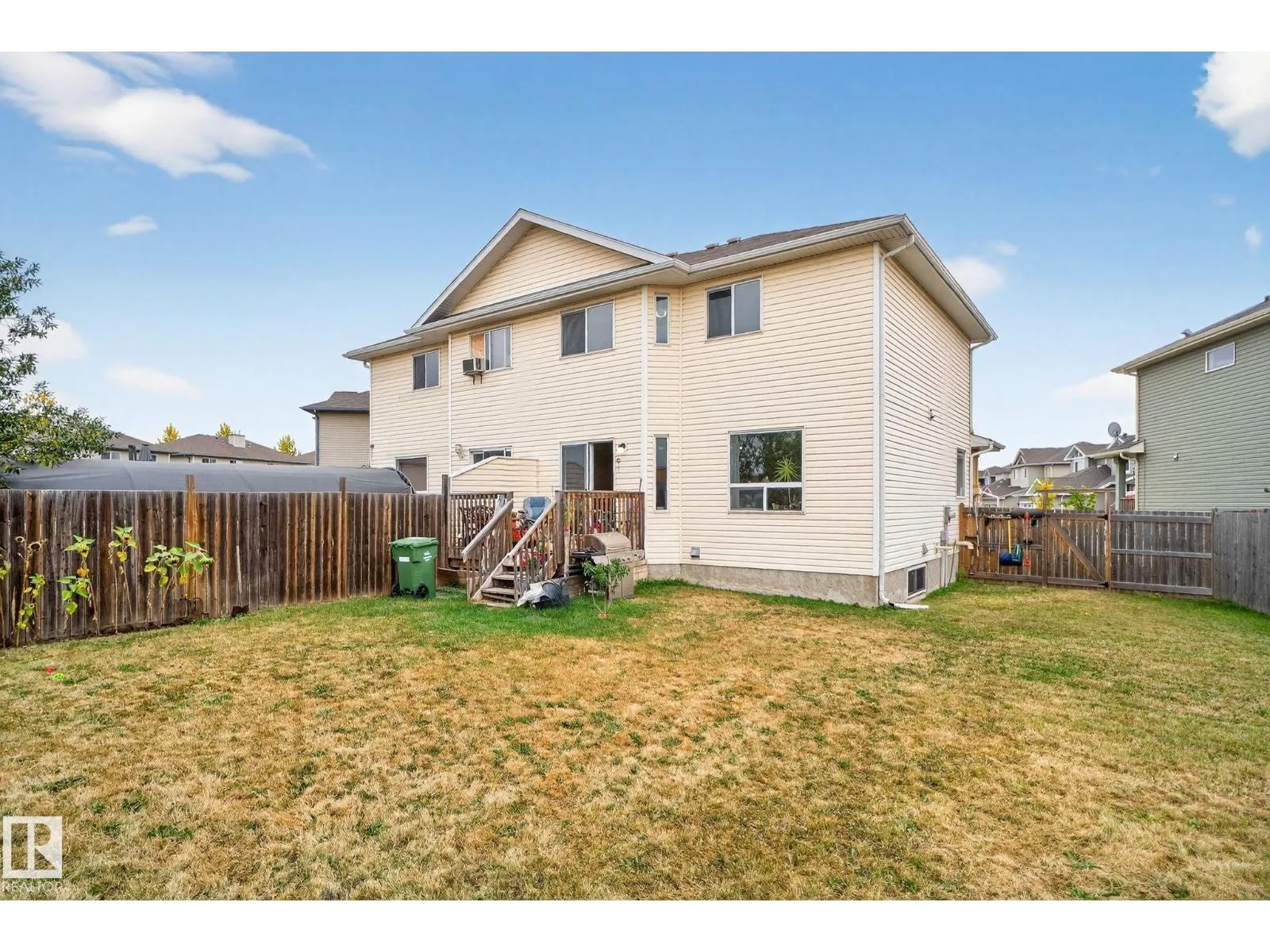 Bright and cheerful half duplex sitting on a massive lot in Tribute with no back neighbors. The property is ideal if you have pets or kids and comes fully fenced with a deck, toboggan hill and a west facing yard! The main level is spacious complete with all hard surface flooring and provides great functional spaces for living and cooking. Upstairs the home offers 3 good sized bedrooms including a 4pc bathroom. The primary suite comes complete with a walk-in closet and 3pc ensuite. Unfinished basement is excellent for storage, and more kid play space. Front drive with a double attached garage to top it all off for this propertyâs features. Close to schools, parks, shopping and EIA. (id:27476)