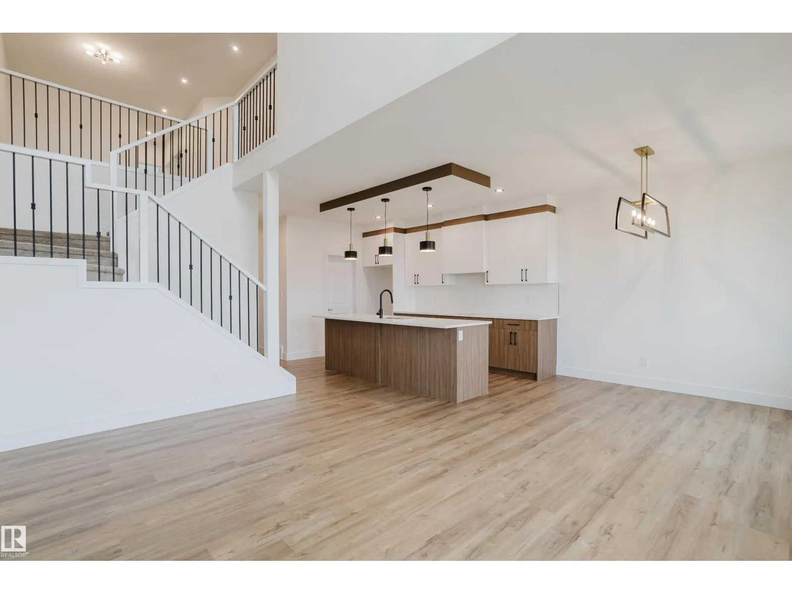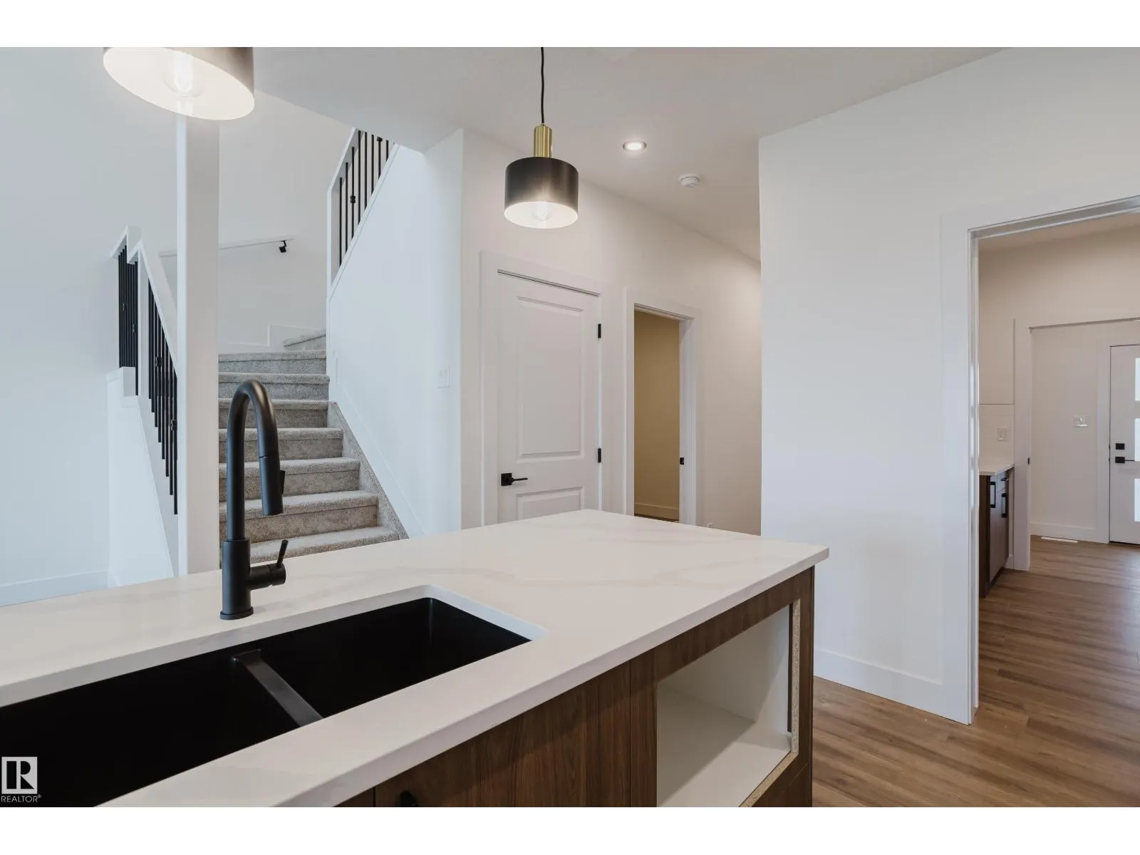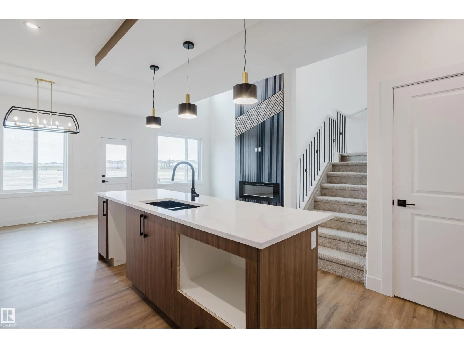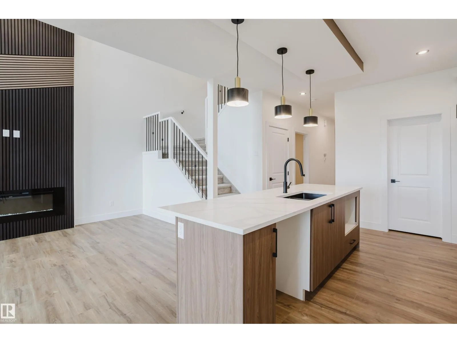 Located in the family-friendly community of Meadowview in Leduc, this Destino model offers a spacious layout with modern finishes throughout. The main floor features vinyl flooring, a den, and a full bath with a standing shower ideal for guests or a home office. The chef-inspired kitchen includes a walkthrough spice kitchen and flows into the dining area and great room, which is open to above with a built-in fireplace. Upstairs offers three bedrooms, including a primary suite with a five-piece ensuite, soaker tub, tiled shower, and walk-in closet. A bonus room and upper laundry add convenience, while the side entrance provides potential for future development. (id:27476)