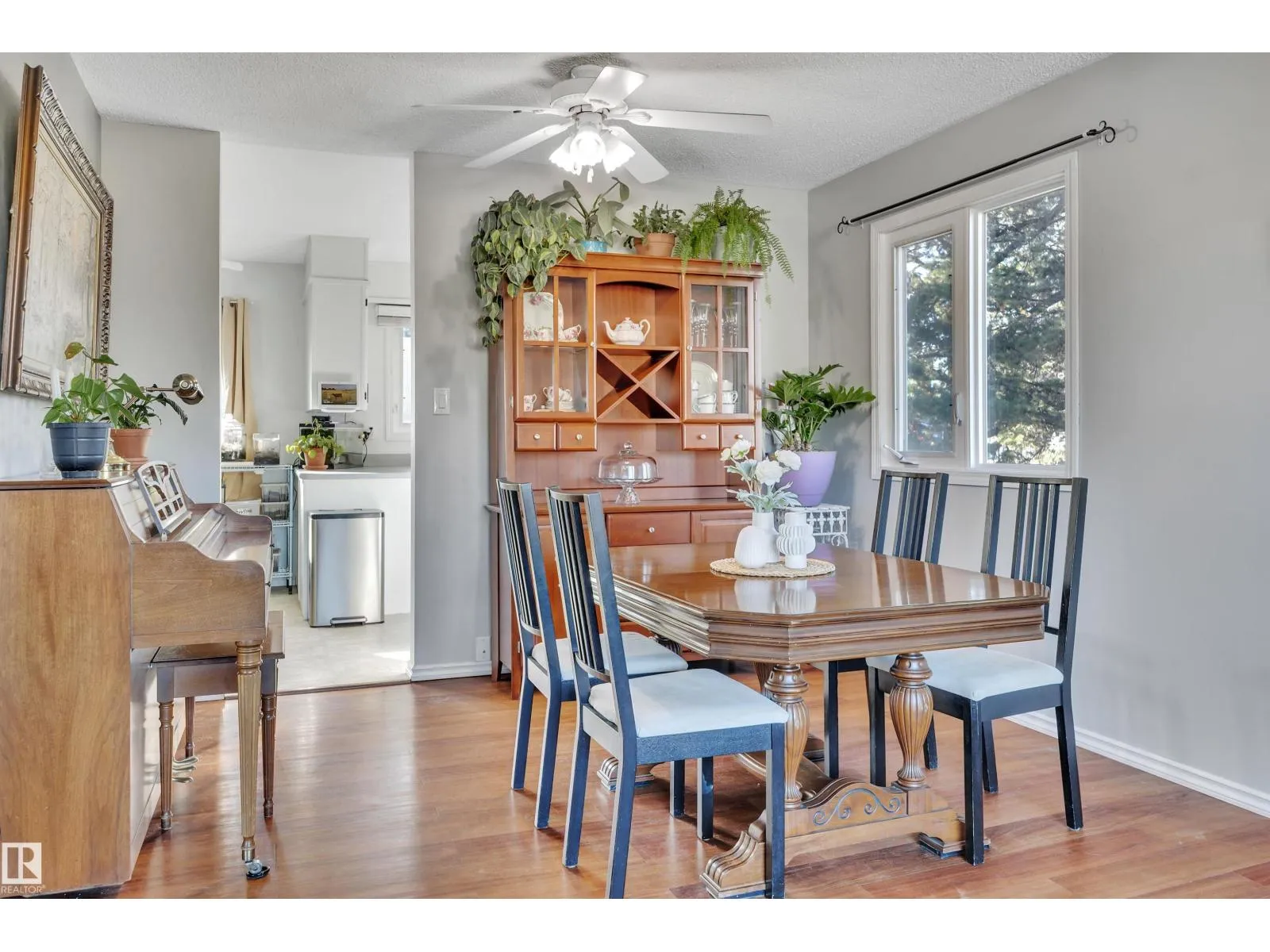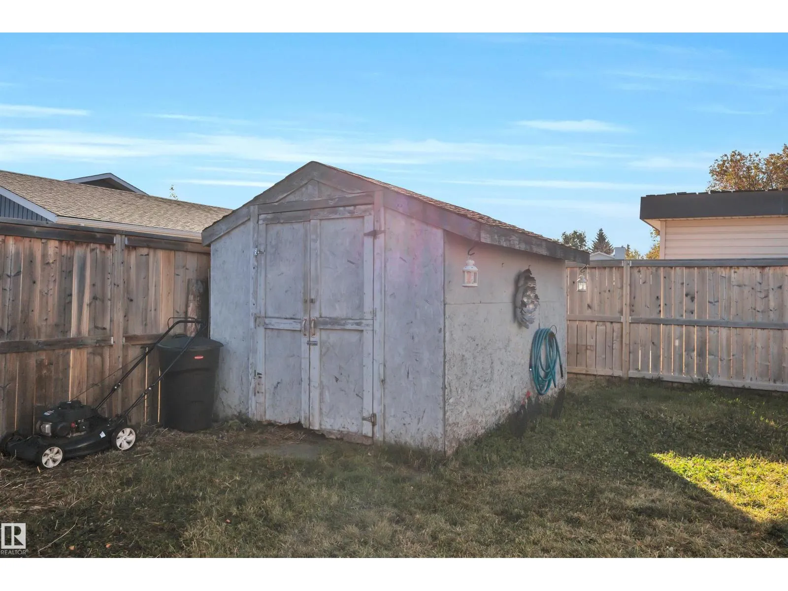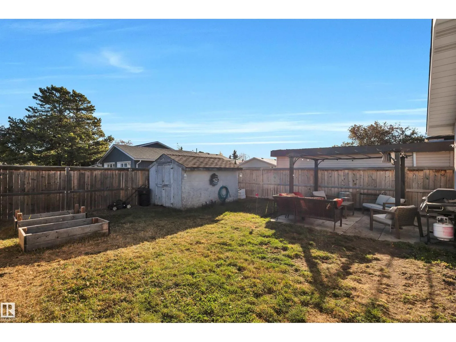 Incredible value in this beautifully updated bungalow in Leduc! Youâll love the charm of 4411 42B Ave, set on a unique semi-pie corner lot with a truly private yard. At 5193 sqft, thereâs space for RV parking and even a future garage, with access from both the road and laneway. Updates include shingles, soffits, fascia, siding, vinyl windows, bathrooms, flooring, high-efficiency furnace (2019) and newer appliances. It's move-in ready at a price that leaves room to make it your own! Inside, youâll find 3 bedrooms upstairs, a full bath & a half ensuite; large open living room + dining room at the front of the home and kitchen + eating nook. The separate back entry has a concrete walkway that leads to the fenced in yard, including patio/pergola, garden beds, shed, & plenty of yard left. The finished basement adds more cozy living/rec space with a full bath and room. Fantastic locationâsteps to both public & catholic schools, Leduc Rec Centre, shopping amenities, Telford Lake trails, and the off-leash park! (id:27476)