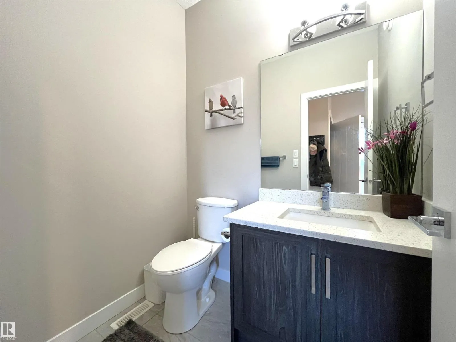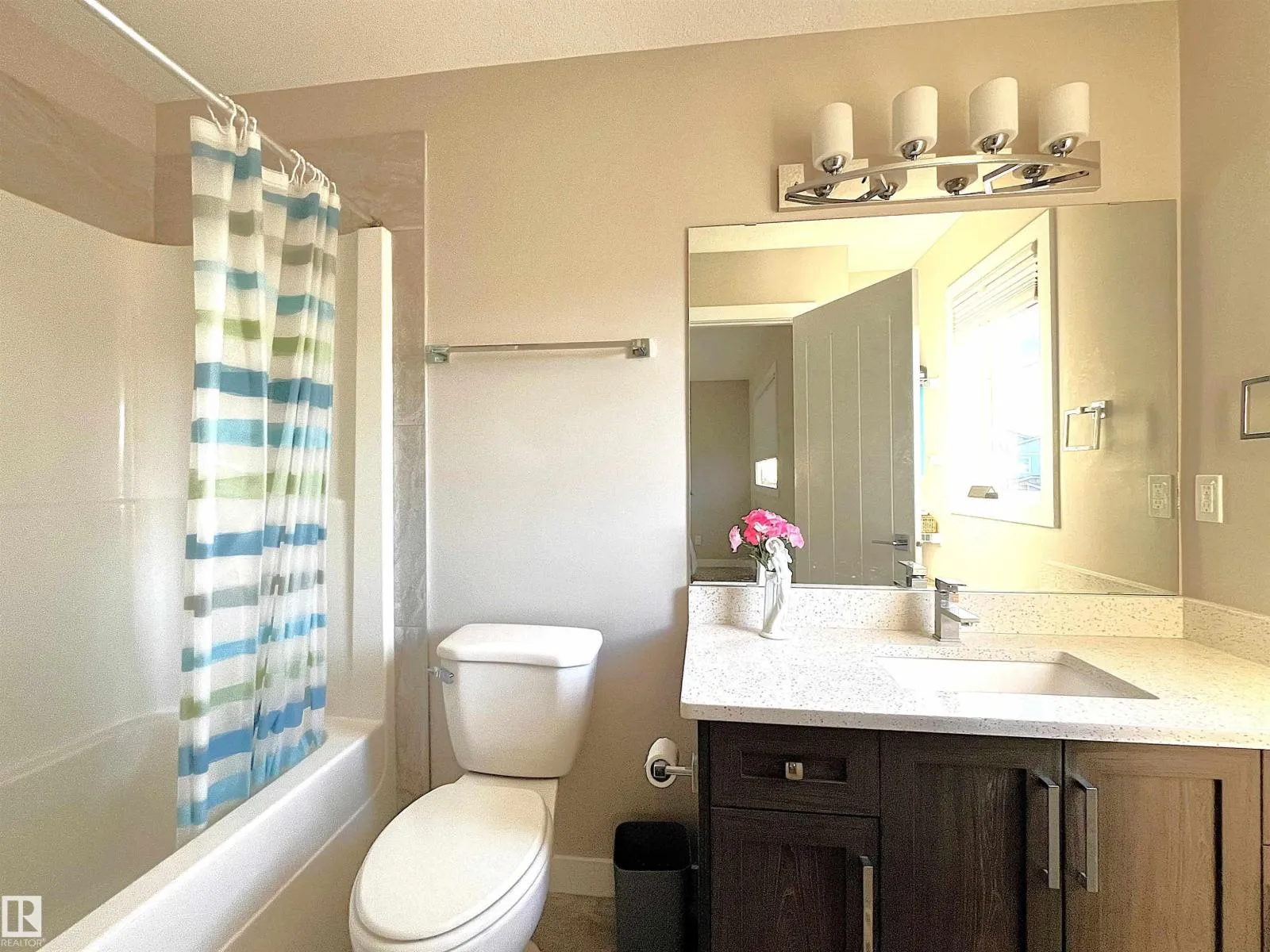FINISHED BASEMENT with separate entrance! Amazing, like new condition, 3 + 1 bedroom, 3.5 bathroom home in a quiet crescent location! Open design main floor with 9 ft ceilings. Excellent upgraded kitchen with pantry, quartz counter tops, 40 upper cabinets, tile back splash and premium stainless steel appliance package. Cozy living room is enhanced with electrical fireplace. Main floor laundry with front load Samsung washer and dryer. Upper floor boasts 3 bedrooms. Master with walk-in closet and full ensute. Basement is fully finished with another living room, good size bedroom and 3 pcs bathroom. Separate entrance to the basement gives potential rental possibility. Garage is fully finished too! Walk to award winning playground, hockey rink and lake! In excellent condition and move in ready! Flexible possession too! (id:27476)