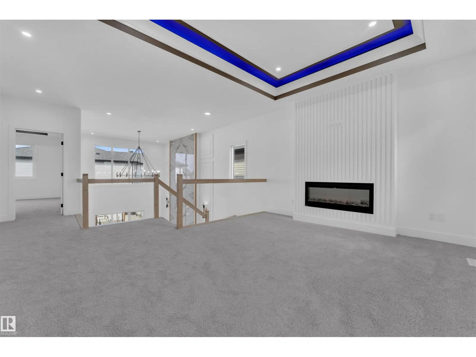 Welcome to this beautifully upgraded 3-bedroom + den home, thoughtfully designed for functional living. Boasting an extended main kitchen and a fully equipped spice kitchen, this home is perfect for families who love to cook and entertain. The main floor features a full bathroom and a versatile denâideal for a home office or guest room. The spacious living area showcases a feature tiled fireplace, complemented by upgraded lighting that creates a warm and inviting ambiance. Upstairs, you'll find a cozy bonus room with a second fireplace and stylish rope lighting, perfect for relaxing evenings. The primary suite is a true retreat, complete with a 5-piece ensuite featuring a free-standing soaker tub, dual vanity with under cabinet lighting, and a huge walk-in closet. Two additional spacious bedrooms and a full laundry room round out the upper level. Additional highlights include: Built-in desk and custom shelving, Finished deck with durable metal railing and Many high-end upgrades throughout the home! (id:27476)