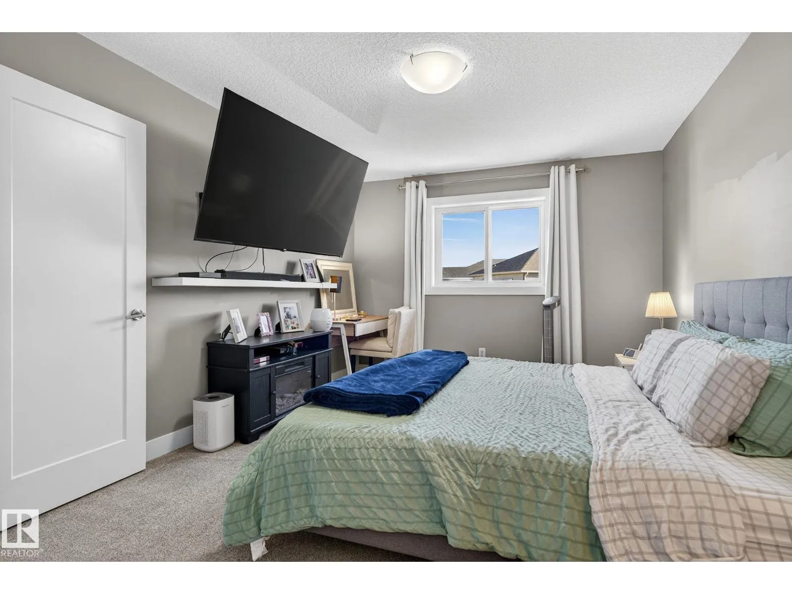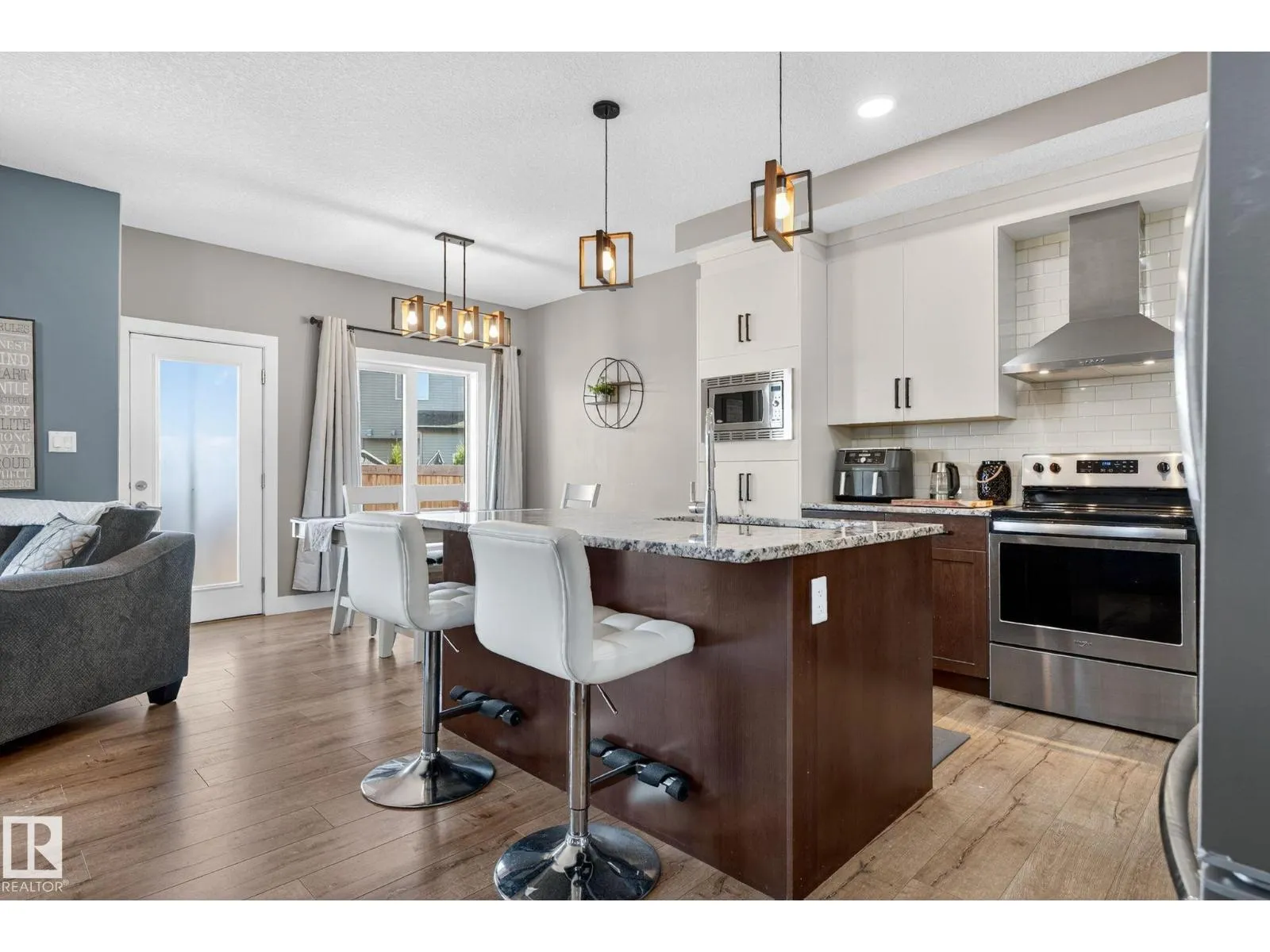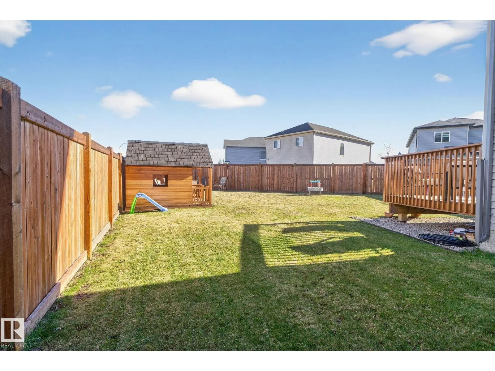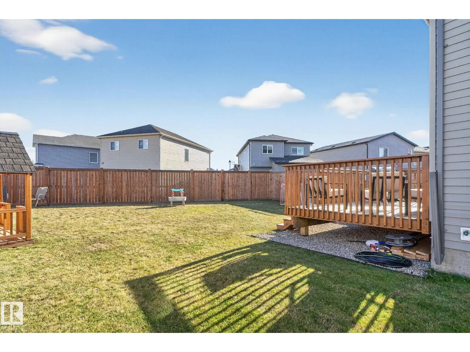 Welcome to this beautifully maintained half duplex in the family-friendly community of Blackstone! Offering a thoughtfully designed living space, this home truly shows pride of ownership. The bright and open main floor features a welcoming layout with a walkthrough pantry leading to a stunning kitchen with granite countertops and newer stainless steel appliances. The living room is highlighted by a shiplap feature wall with a ceramic tile fireplace and large windows that fill the space with natural light while overlooking the backyard. Step outside to enjoy a large pie-shaped, fully fenced, and beautifully landscaped yardâcomplete with a deck, fire pit, and charming wooden playhouse, perfect for summer entertaining. Upstairs, youâll find a spacious primary suite with a luxurious 5-piece ensuite and walk-in closet. A cozy bonus room, convenient upstairs laundry, and two additional bedrooms with a 4-piece bathroom complete the upper level. Additional features include a double attached garage and A/C (2024) (id:27476)