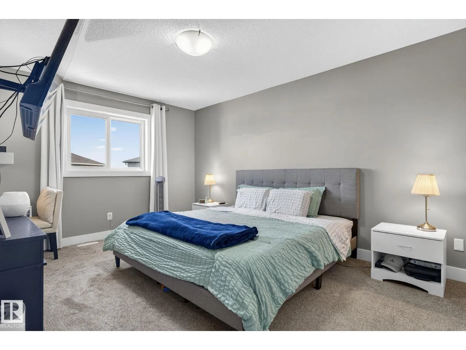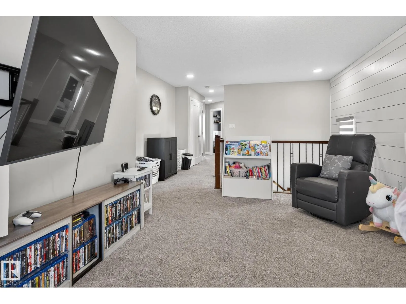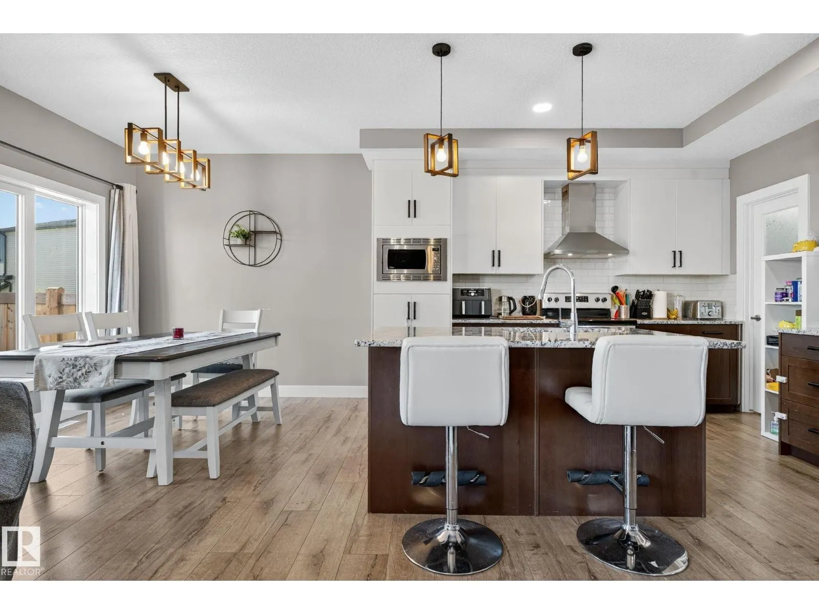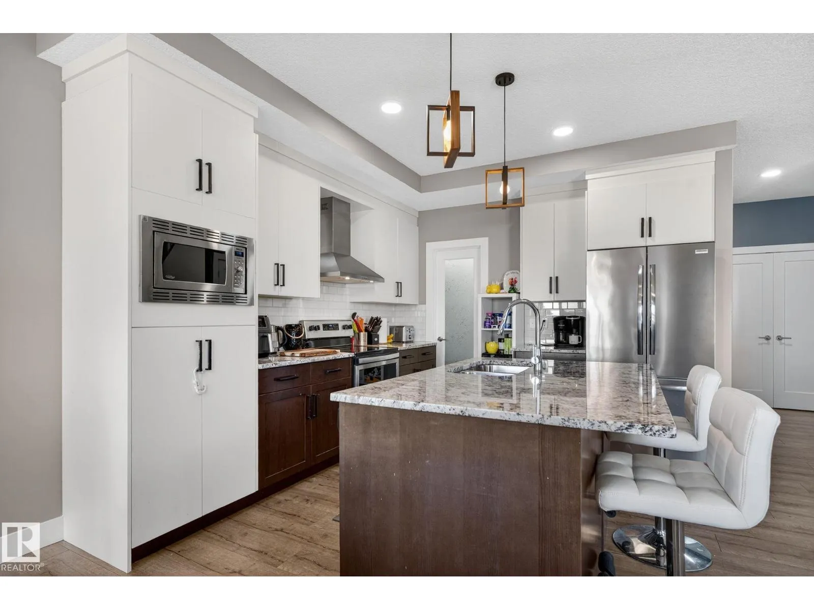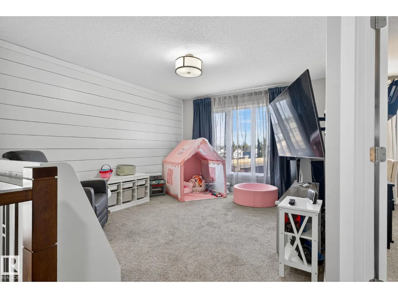 Welcome to this beautifully maintained half duplex in the family-friendly community of Blackstone! Offering a thoughtfully designed living space, this home truly shows pride of ownership. The bright and open main floor features a welcoming layout with a walkthrough pantry leading to a stunning kitchen with granite countertops and newer stainless steel appliances. The living room is highlighted by a shiplap feature wall with a ceramic tile fireplace and large windows that fill the space with natural light while overlooking the backyard. Step outside to enjoy a large pie-shaped, fully fenced, and beautifully landscaped yardâcomplete with a deck, fire pit, and charming wooden playhouse, perfect for summer entertaining. Upstairs, youâll find a spacious primary suite with a luxurious 5-piece ensuite and walk-in closet. A cozy bonus room, convenient upstairs laundry, and two additional bedrooms with a 4-piece bathroom complete the upper level. Additional features include a double attached garage and A/C (2024) (id:27476)