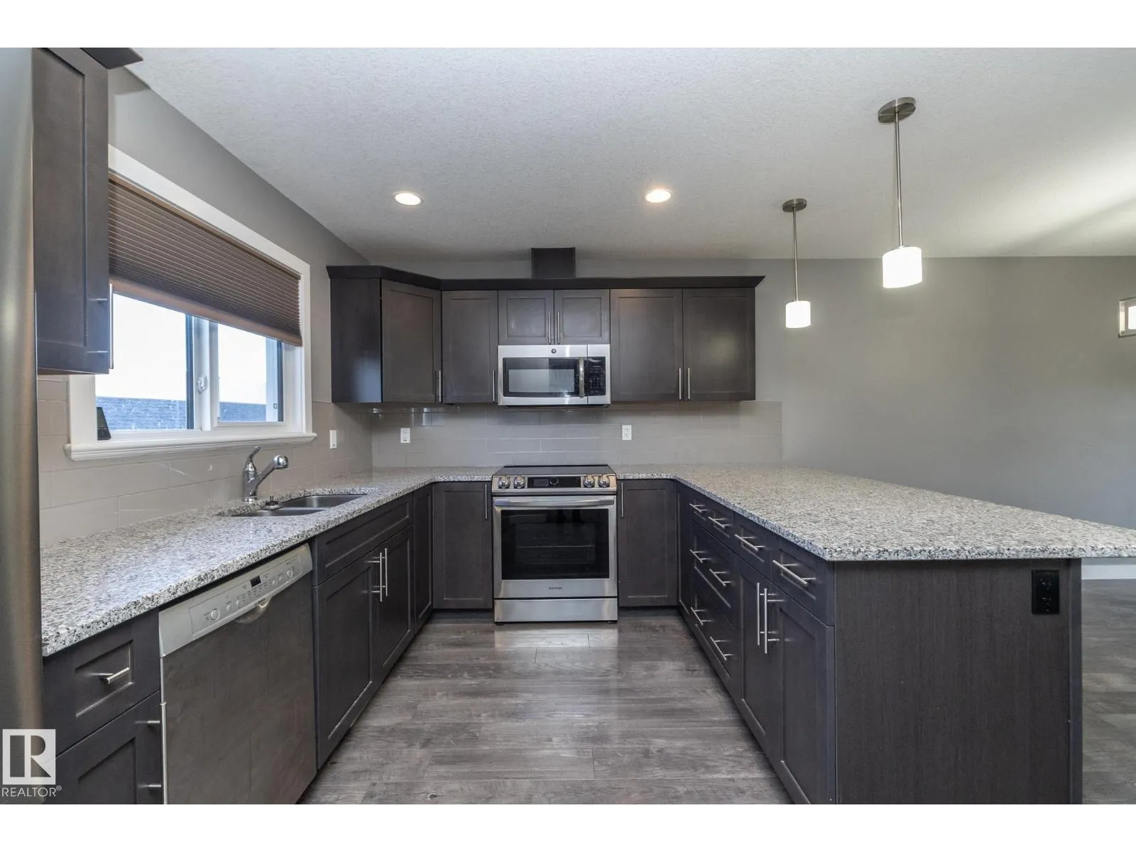 Welcome to Robinson, one of Leducâs most sought-after neighbourhoods! Built by Dolce Vita Homes, this beautifully finished 2-storey offers 3+1 bedrooms, 4 baths, & a developed basement designed for comfort and convenience. The open-concept main floor features rich espresso cabinetry, granite counters, stainless appliances, pendant lighting, & a large islandâperfect for family meals or entertaining. The bright living area flows seamlessly into the kitchen & dining space, while the deck offers relaxing views of the park and lake. Upstairs, the primary suite includes a JUILET BALCONY, walk-in closet, & a private ensuite with oversized stand-up shower. Two additional bedrooms, a full bath, & UPPER-FLOOR LAUNDRY make daily living easy. The FINISHED BASEMENT adds a cozy family/media room, 4th bedroom, & full bath. Enjoy year-round comfort with A/C, R-60 insulation for energy efficiency, & a no-maintenance yard complete with deck & double garage. Steps to Ruddy Park & walking trails. This home has it all! (id:27476)