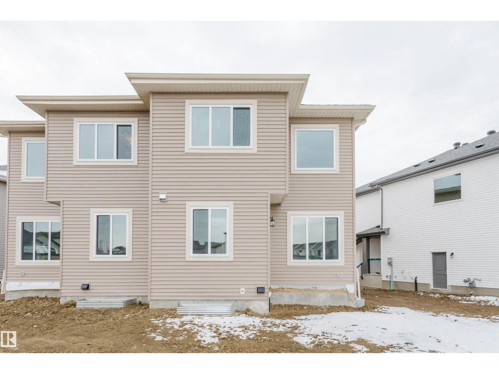 Welcome to this half duplex in the desirable Meadowview community of Leduc. The main floor offers a spacious layout with vinyl flooring, an extended kitchen with ample cabinetry and counter space, a versatile den, and a full bathroom with standing shower. The open to above living room provides abundant natural light and a sense of space. Upstairs you will find three bedrooms including a primary suite with a five piece ensuite, as well as a bonus room. The basement is unfinished and ready for your personal design. Located close to schools, shopping, and parks, this home offers functionality and convenience while being peacefully set away from the busyness of the city. (id:27476)