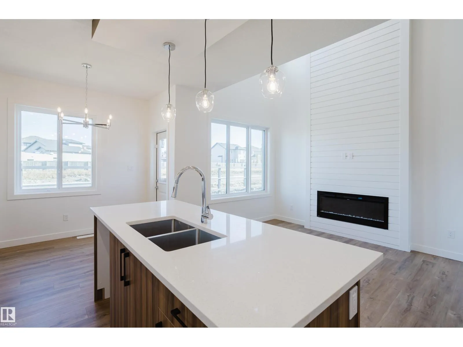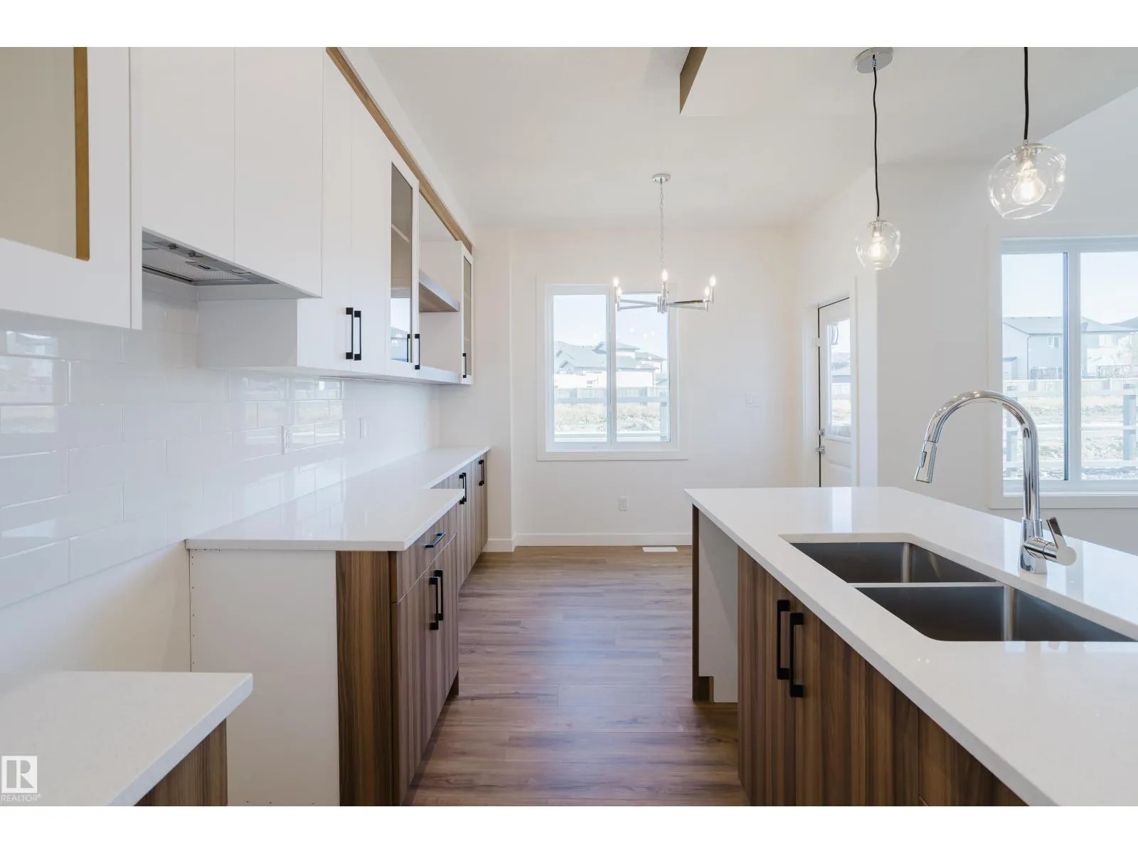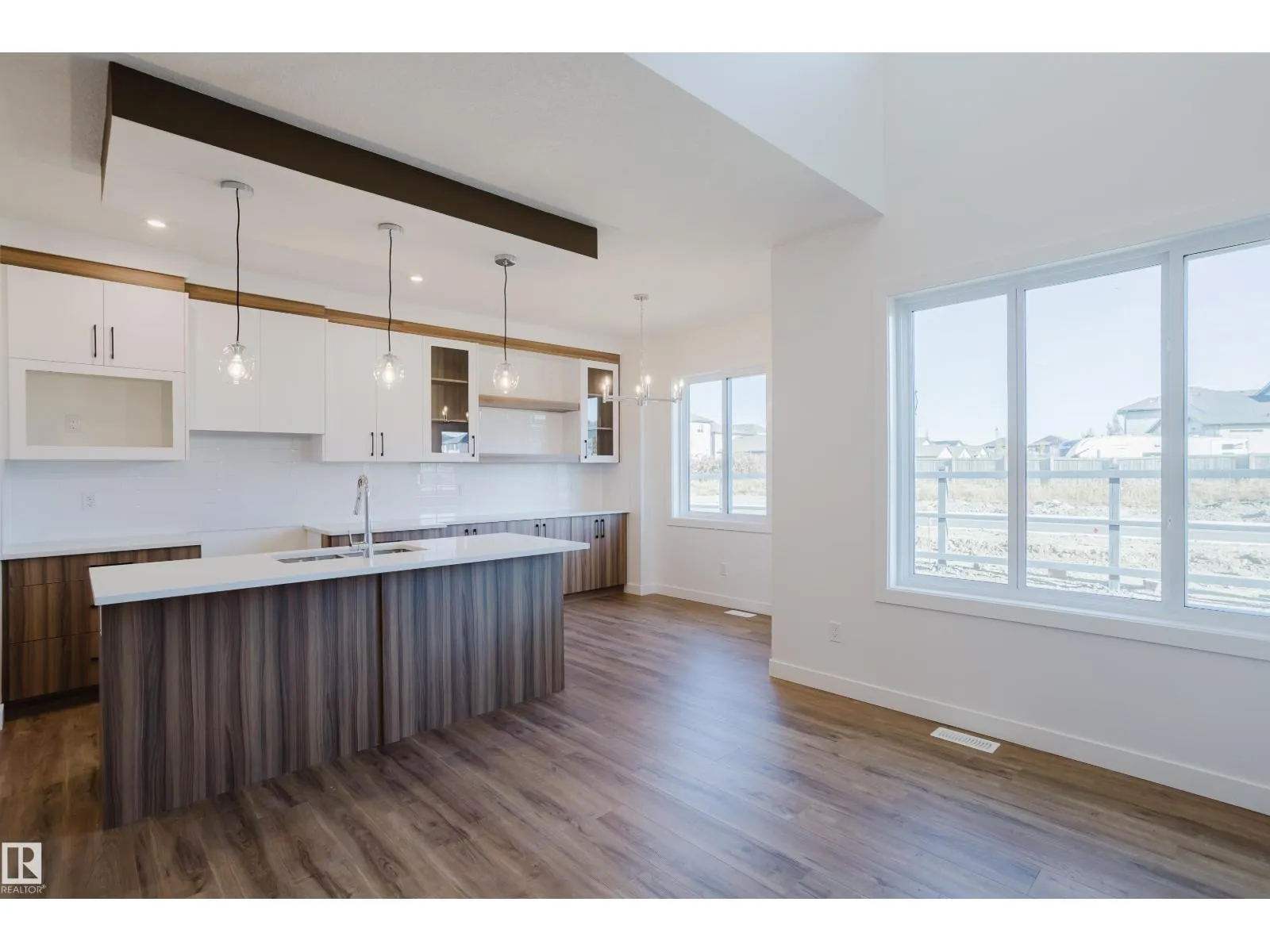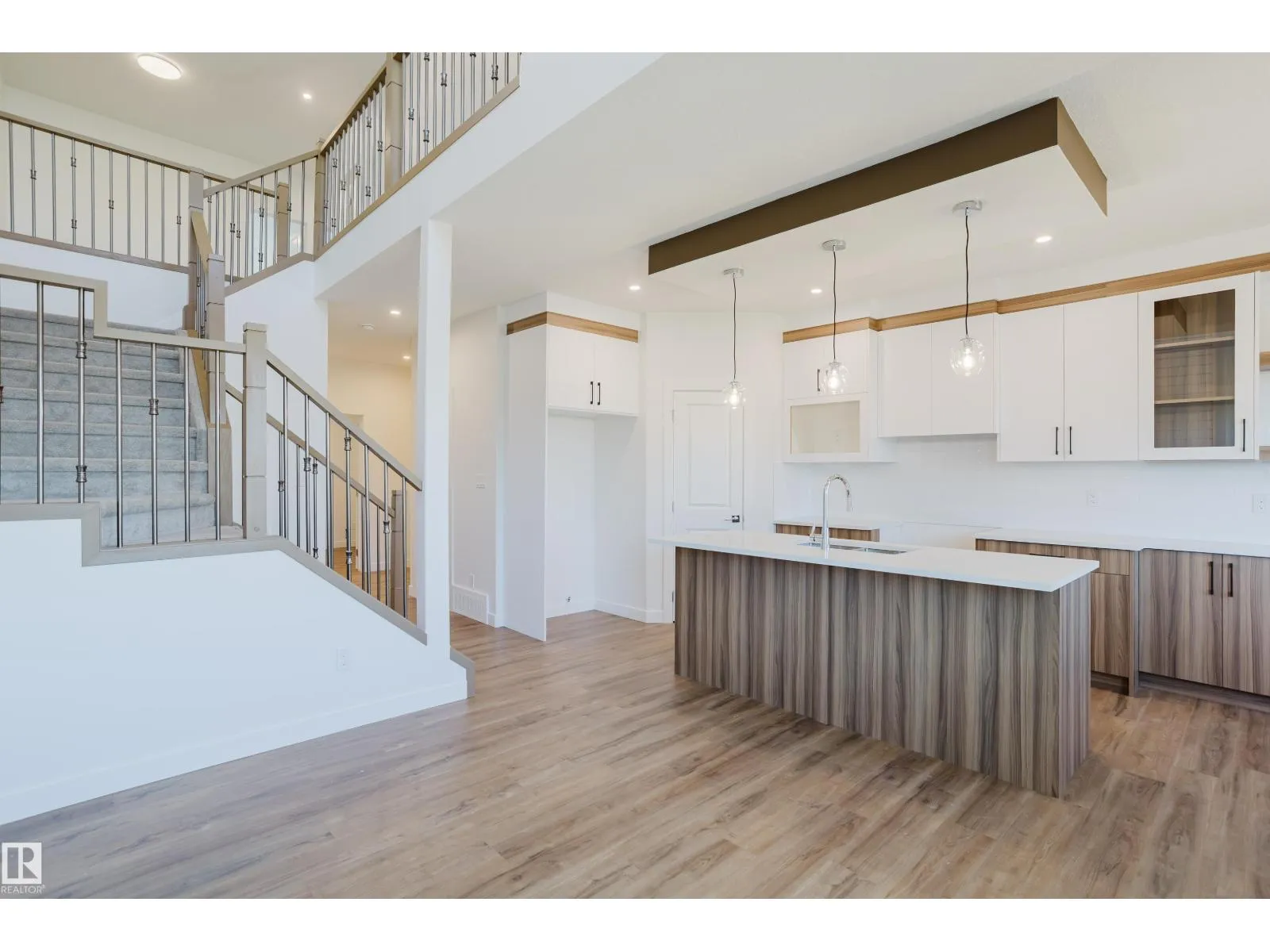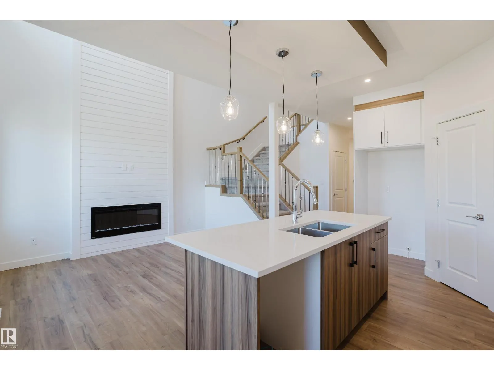 Welcome to this half duplex in the desirable Meadowview community of Leduc. The main floor offers a spacious layout with vinyl flooring, an extended kitchen with ample cabinetry and counter space, a versatile den, and a full bathroom with standing shower. The open to above living room provides abundant natural light and a sense of space. Upstairs you will find three bedrooms including a primary suite with a five piece ensuite, as well as a bonus room. The basement is unfinished and ready for your personal design. Located close to schools, shopping, and parks, this home offers functionality and convenience while being peacefully set away from the busyness of the city. (id:27476)