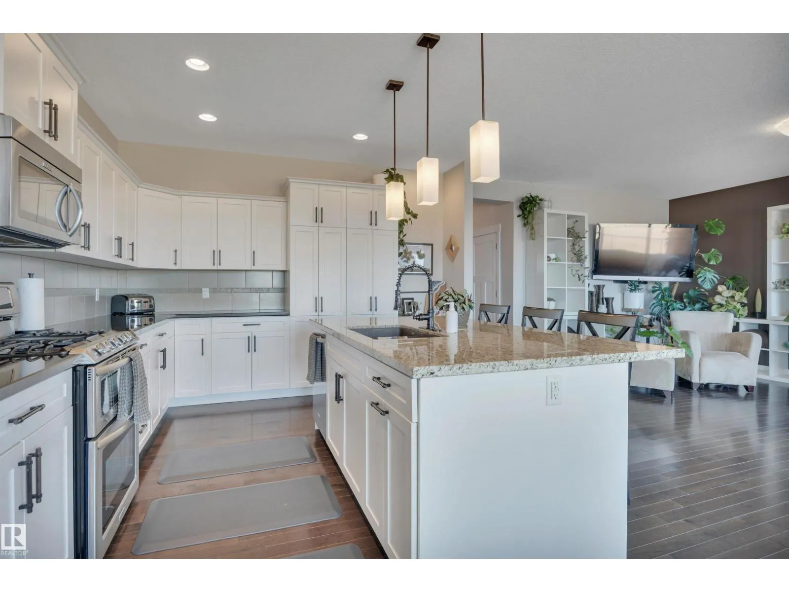 Discover this stunning 5-bedroom with large bonus and recreation rooms, 2649sf custom-built 2011 single detached home in peaceful Tribute, Leduc. Upgrades throughout: sleek granite countertops, rich hardwood flooring, luxurious tiled shower, big soaker tub, and bathroom with his and hers sinks in ensuite, and builder installed window protection package. Breathtaking lake views from kitchen, deck, patio, office & master bedroom and bathroom. 2-storey w/ full basement walkout, pond backing, 2-car attached garage, fully landscaped with maintenance-free front yard. Smoke and pet free house, original owner. Steps to walking paths & walking distance to Caledonia Park School, minutes from groceries, gas and multiple restaurants. All furniture negotiable with purchase. Perfect blend of elegance & convenience! (id:27476)