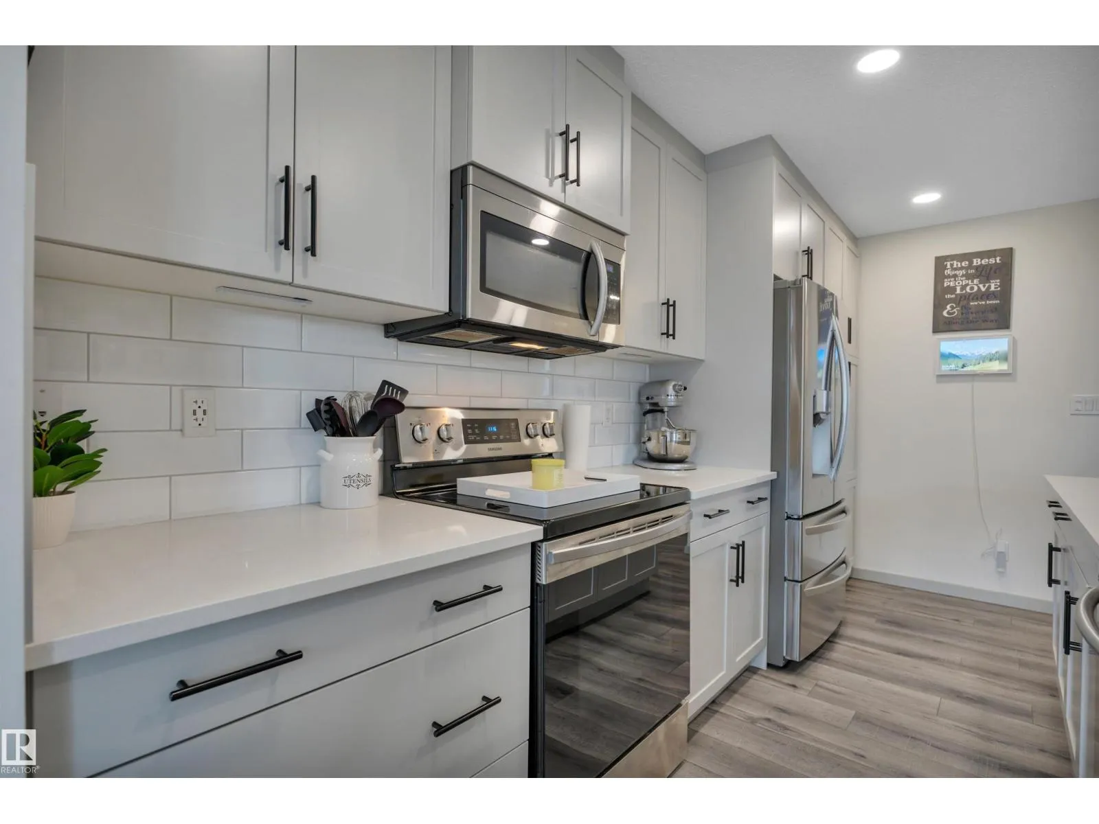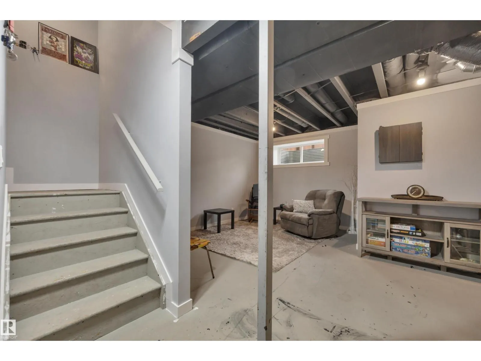 ABSOLUTE STUNNER! A/C & HEATED GARAGE! BETTER THAN NEW! 27' DEEP GARAGE! This 1413 sq ft 3 bed, 2.5 bath Bedrock duplex shows a 10, and is a mix of rustic charm with modern flair! Feat: vinyl plank flooring, quartz countertops throughout, electric fireplace, S/S appliances, large composite deck, plush carpets & more! Traditional open concept design features a beautiful kitchen w/ white subway tile backsplash, massive island for meal prep & entertaining, & big windows for ample natural light. Upstairs brings 3 large bedrooms for the kids or home office, including the primary bed w/ walk in closet & 3 pce ensuite. Additional 4 pce bath w/ linen storage. The basement is partially finished, w/ exterior walls drywalled, storage room (future bathroom) & room for a 4th bed or use as a large rec room. Tons of storage in your oversized garage too; deep enough to fit your half ton! Beautiful backyard w/ shed, trees, & fully fenced & landscaped. Wonderful move in ready home & priced to move; a must see! (id:27476)