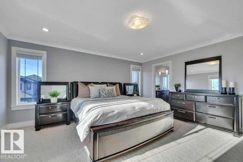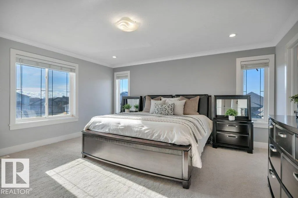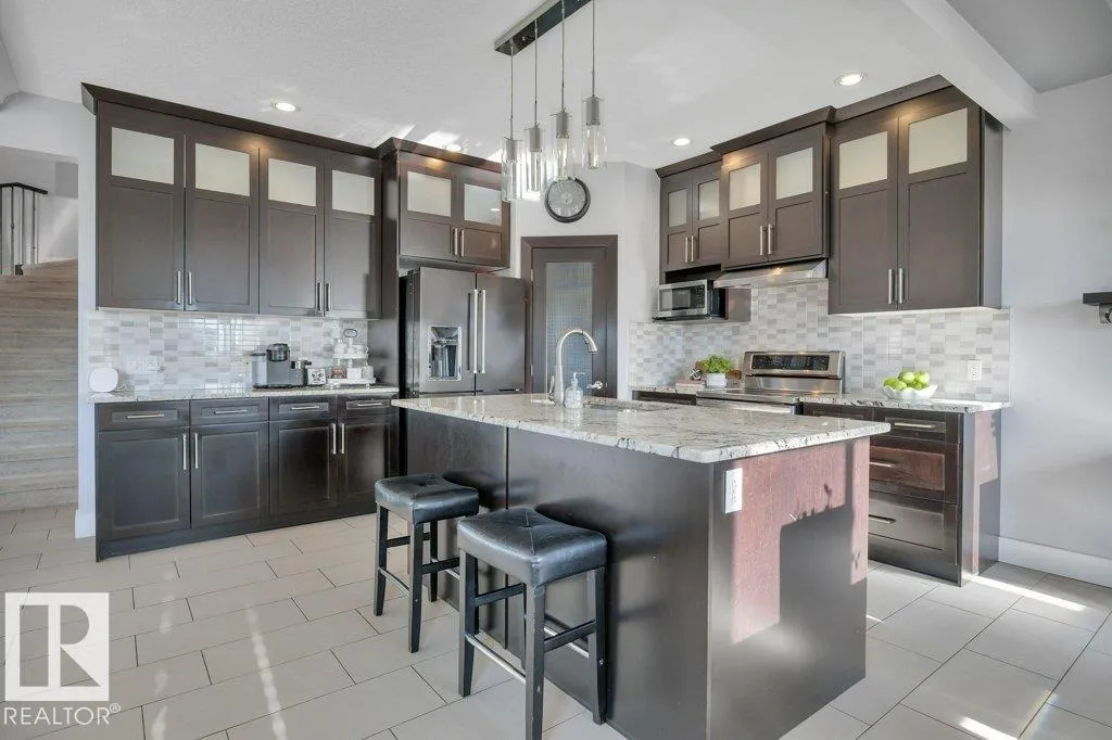 Bright, Beautiful & TURNKEY in Meadowview! This original owner home is over 3000sqft total with 5 Beds, 3.5 Baths & a main floor office â perfect for a growing family. Finally, youâve found that SW facing backyard with TWO-TIERED DECK for ALL-DAY SUN! Find quality finishes throughout like engineered hardwood, GRANITE countertops, wainscoting, high coffered ceilings, SOLID WOOD cabinets & built-in shelving. A layout designed for everyday life & entertaining â the kitchen connects seamlessly to the living & dining areas and the backyard. Central A/C, a HEATED DOUBLE GARAGE & patio heaters deliver comfort year-round. Upstairs are 3 bedrooms including the large primary with ensuite designed for max relaxation. More room for the whole family is found in the vaulted ceiling bonus room (high enough for a golf simulator!) & the large basement with 2 additional bedrooms, large REC ROOM with WET BAR + FULL bathroom. Located in a quiet community just steps to Caledonia Park School (k-7), pond & trail system. (id:27476)
