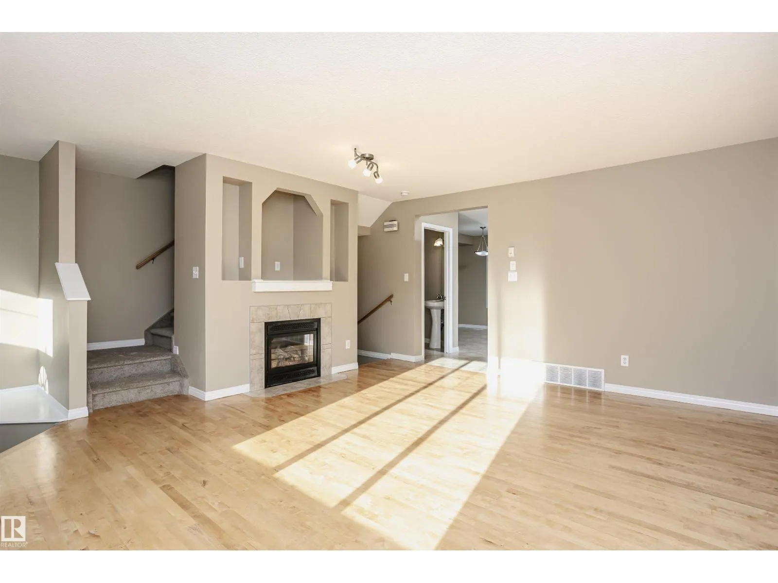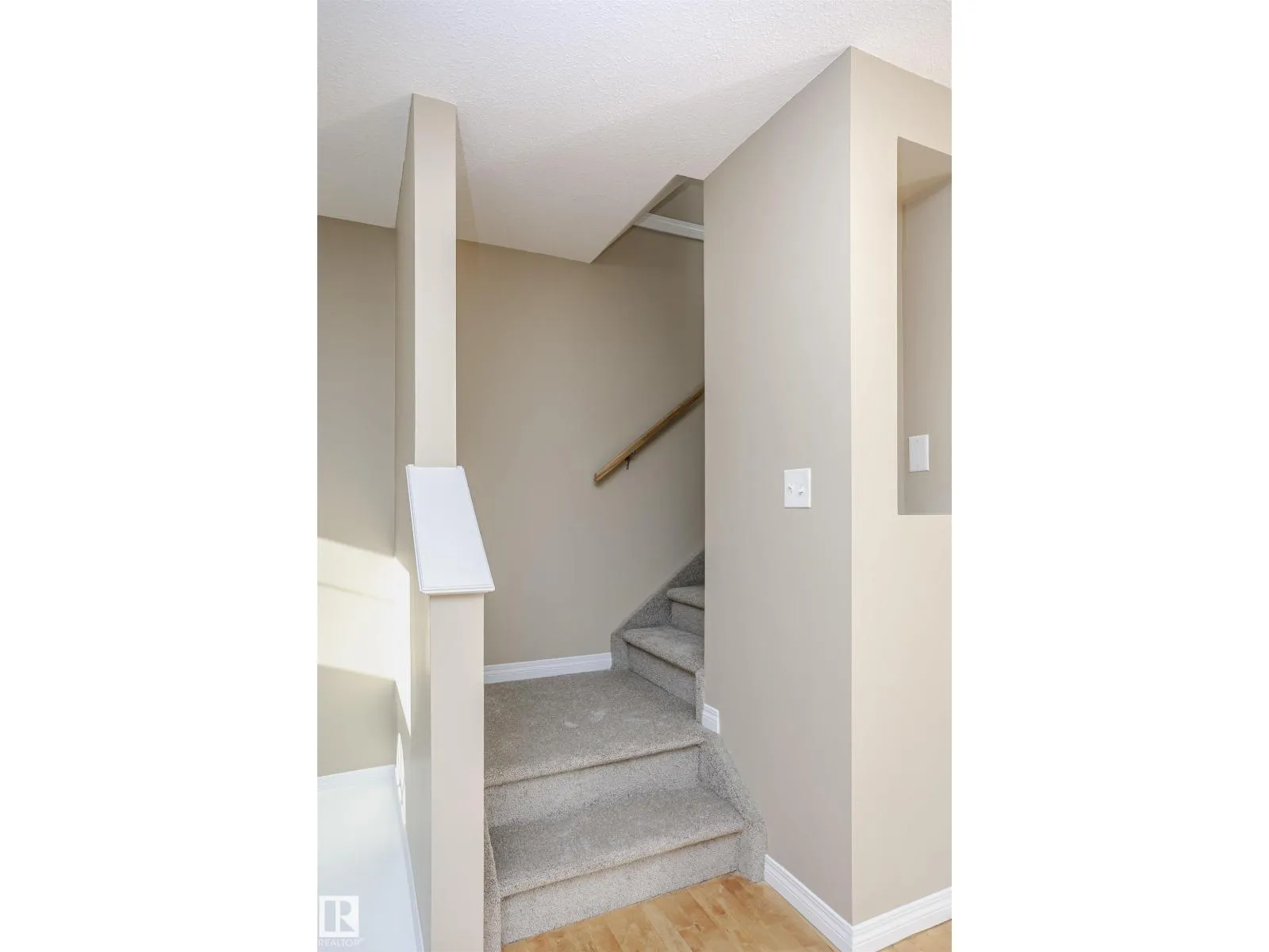 Don't miss this bright, updated 4-bed, 3-bath townhome just steps from Leduc Common and Harry Bienert Park! Your plants will love the sun filled south-facing living room, with freshly refinished hardwood floors and a cozy gas fireplace. The centrally located 2-piece bath on the main makes hosting a breeze. The kitchen features stainless steel appliances and ceramic tile flooring, with the dining area opening to a north-facing deck and treed green space - giving you plenty of privacy. Upstairs, the NORTH-FACING primary bedroom offers a walk-in closet and 3-piece ensuite with a roomy step-in shower, plus two more bedrooms and laundry. The lower level includes a fourth bedroom, storage, and access to your OVERSIZED TANDEM GARAGE with room for two vehicles plus a workshop! UPDATES INCLUDE: refinished hardwood, new carpet upstairs and in all bedrooms, new basement LVP, and fresh paint throughout. Move-in ready and just minutes to schools, parks, golf, shopping, the QE II, and EIA. (id:27476)