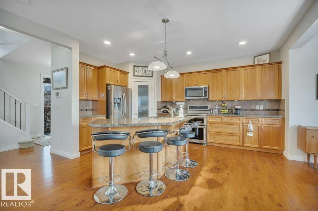 AN ABSOLUTE GEM in an A-1 LOCATION, all the WOW FACTOR YOU COULD DESIRE. Absolutely gorgeous home with many special features. 2277 sq ft plus WALK OUT onto multiway. Freshly painted, 9 ft ceilings, hardwood. Dream kitchen boasts an abundance of cabinetry, pot drawers, granite counter tops, hi end SS appliances, walk in pantry & Island w breakfast bar. Great room w gas fire place & dining area allows for lots of sunlight. Upstairs features very spacious bonus room w 13' vaulted ceiling. Primary bedroom has 5 pc ensuite with dual sinks, separate vanities, corner soaker tub & W I closet. Bedrooms 2+3 are good sizes, 4 pc main bath. Basement includes rec room, 4th bed, 3 pc bath. Central Air Conditioning, new furnace, new 40 year shingles. Awesome heated garage 23x22 w $8000 custom cabinets. Ultimate back yard is professionally landscaped, unique stone walk way on one side of the house, stone patio fire pit area, large deck w Rhino decking, exposed aggregate patio below. Pride of ownership throughout. (id:27476)