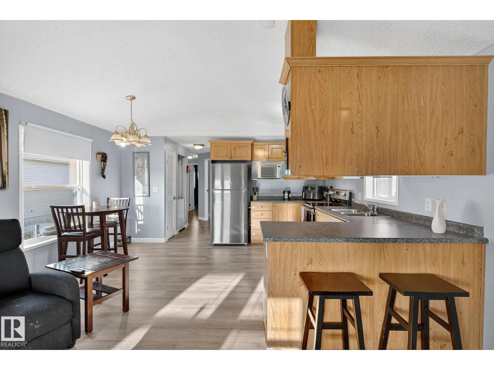 Affordable living in Aspen Creek! This well-kept 2 bedroom, 1 bath mobile home features an open floorplan perfect for entertaining, laminate flooring, and stainless steel appliances. Enjoy a front porch for morning coffee and a sizeable storage shed for all your extras. The primary bedroom is tucked at the back for added privacy. Move-in ready and easy to love! (id:27476)