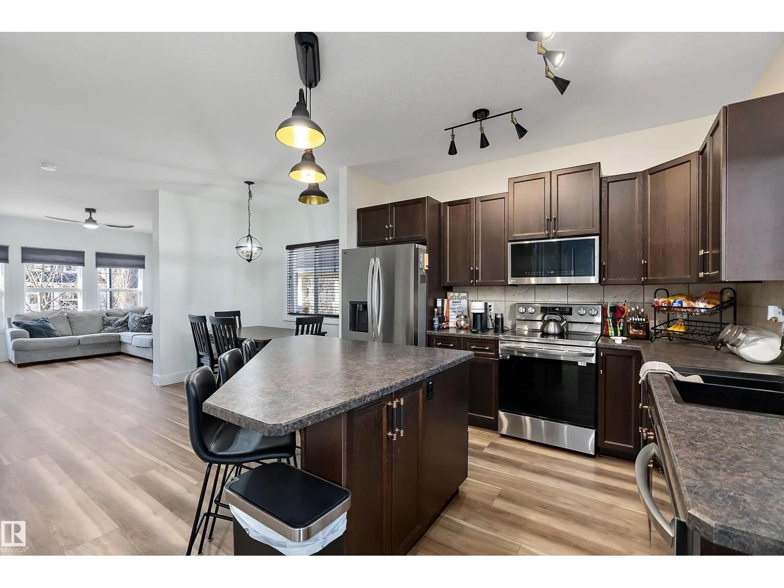 Welcome to this impressive 3 Bedroom home nestled in the desirable family community of Southfork Leduc. This fully finished home perfectly balances modern comfort with smart functionality. Step inside to discover updated luxury vinyl plank flooring and contemporary lighting that creates an inviting atmosphere at every corner. The heart of the home features a cozy fireplace in the Living Room opening up into your Dining Room & Kitchen featuring new appliances & a boujee high tech sink like you've never seen! Upstairs Laundry! A spacious Master Bedroom showcasing a large Walk-in Closet & En-suite with rain shower. Air Conditioning! Quality and comfort all the way! The finished Basement offers another entertaining space, Bedroom & Bathroom. Perfect for hosting guests or a growing family. Relax out back on your deck or play in your fenced yard. Yet another great space to unwind. A huge parking pad in the back awaits your future garage development. Steps away from playgrounds, walking paths & school. Enjoy! (id:27476)
