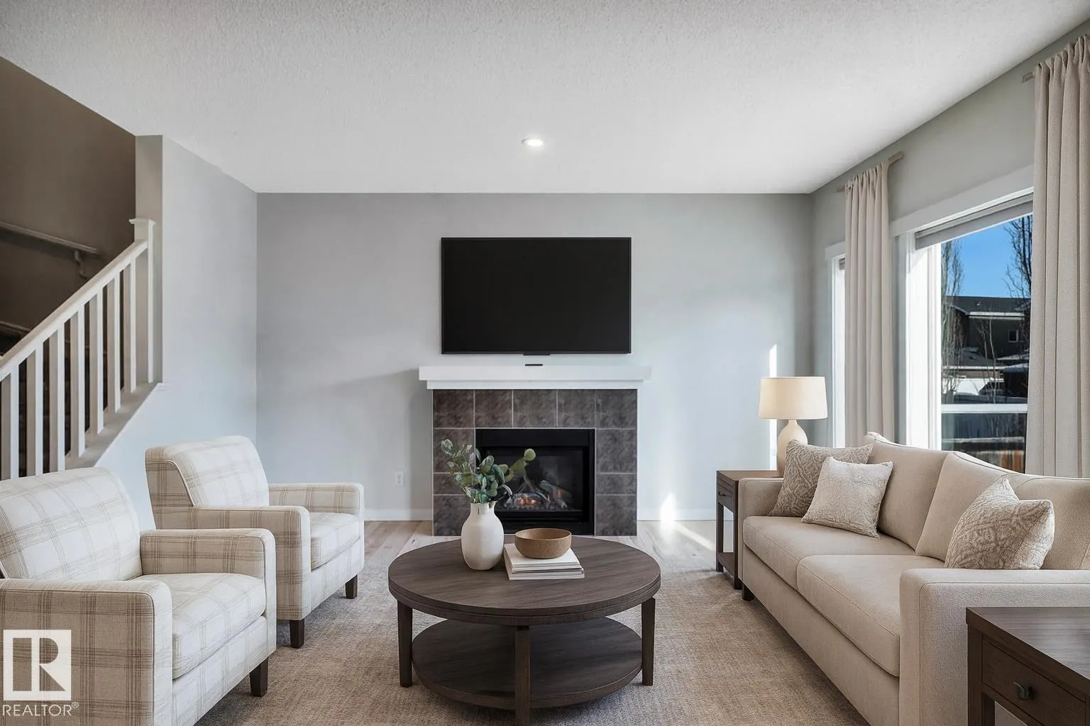 This fresh, move-in-ready 2200+ sq ft 4 bedroom, 3.5 bathroom home has been renovated top to bottom, so you can skip the projects & start living! Upstairs youâll find 3 generous bedrooms & 2 full baths, including a primary w/double vanities ensuite & a W/I closet. Vaulted bonus room is the perfect zone for movie nights/gaming, situated away from the main LR. The main level is welcoming with beautifully renewed hardwood, a fireplace, & updated lighting. Fresh paint and flooring on all 3 levels! The kitchen has granite, & an island with an w/extra counter, new backsplash, & walk-through pantry. Thereâs also a main-floor office/den, a 2-pc powder room, & spacious mudroom with B/I organization. Downstairs, the finished basement adds a rec room, 4th bedroom & an extra full bathroomâideal for a teen or guests. Outside, relax on the exceptionally large deck. Garage is 18' x 24'8 to fit your pickup! Close to parks, schools, rec & NOT a zero lot line! Like new without the price tag. Some pics virtually staged. (id:27476)