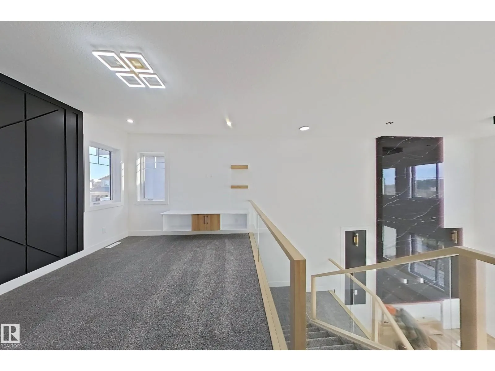 Welcome to this stunning single-family walkout home, ideally located with a walking trail behind and beautiful views of Saito Park in front. This thoughtfully designed property features a spacious triple tandem garage and a functional main floor with a den and full bathroom, perfect for guests or a home office. The chefâs kitchen includes high-end quartz countertops, a two-sided waterfall island, and a pantry with MDF shelving, flowing seamlessly into the open-to-above living room with a tiled feature wall, electric fireplace, and large windows that fill the space with natural light. Elegant glass railings lead to the upper level, offering a bonus room with a feature wall, a luxurious primary bedroom with a 5-piece ensuite and a walk-in closet with built-in shelving, along with three additional bright and spacious bedrooms. The unfinished walkout basement provides endless opportunities to create your ideal custom space in this beautifully styled and meticulously crafted home. (id:27476)