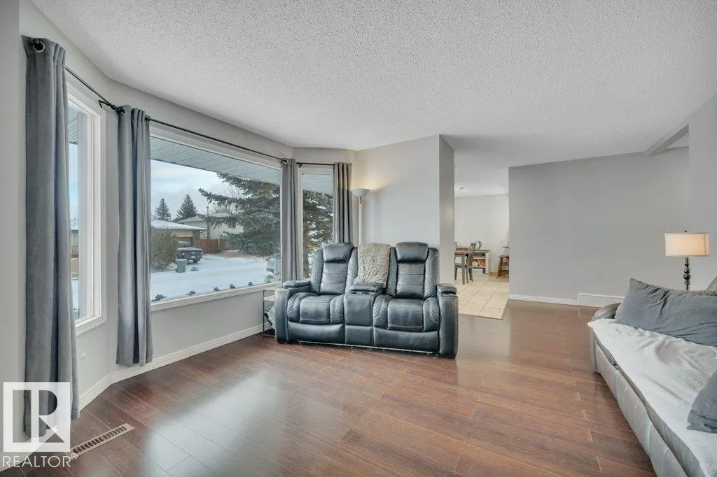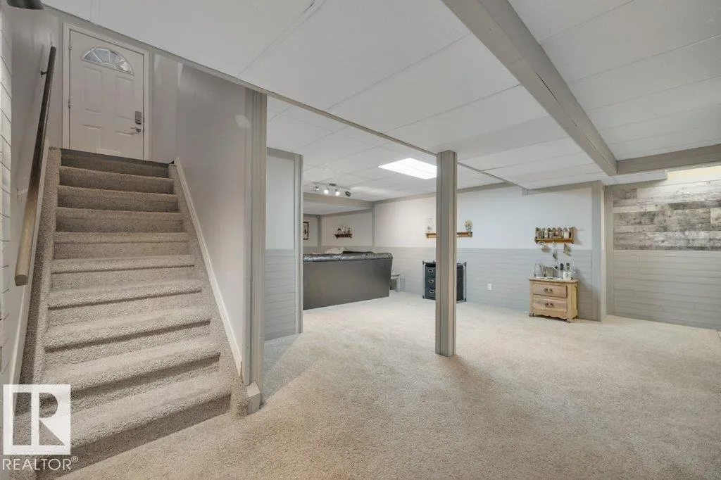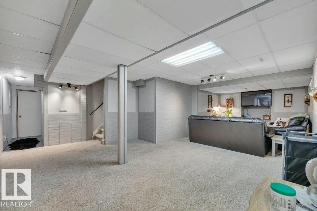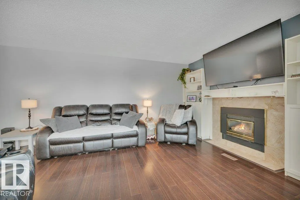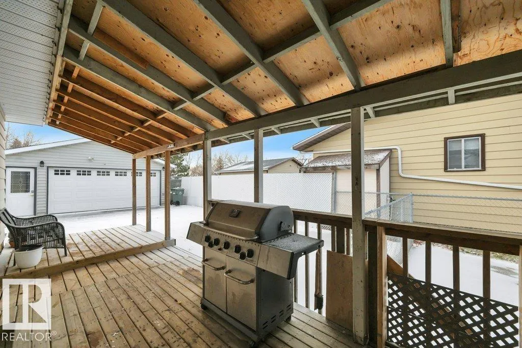Beautiful family home in Southpark! This bungalow features a spacious living room with a cozy gas fireplace, dining area with large windows, and a generously sized kitchen. There are 3 bedrooms on the main floor, including the primary with a walk-in closet and ensuite with 2 sinks. There is also an additional 4-piece bathroom on the main floor. The fully-finished basement has two additional bedrooms, a 3-piece bathroom, a storage area, a laundry, and a huge rec room. The yard has a covered deck, a large storage shed, and an oversized heated garage. New shingles, newer windows on most of the main floor, newer water tank. Fully fenced, landscaped and awaiting its new family! Steps to Notre Dame School, and close to the Leduc Recreation Centre. (id:27476)