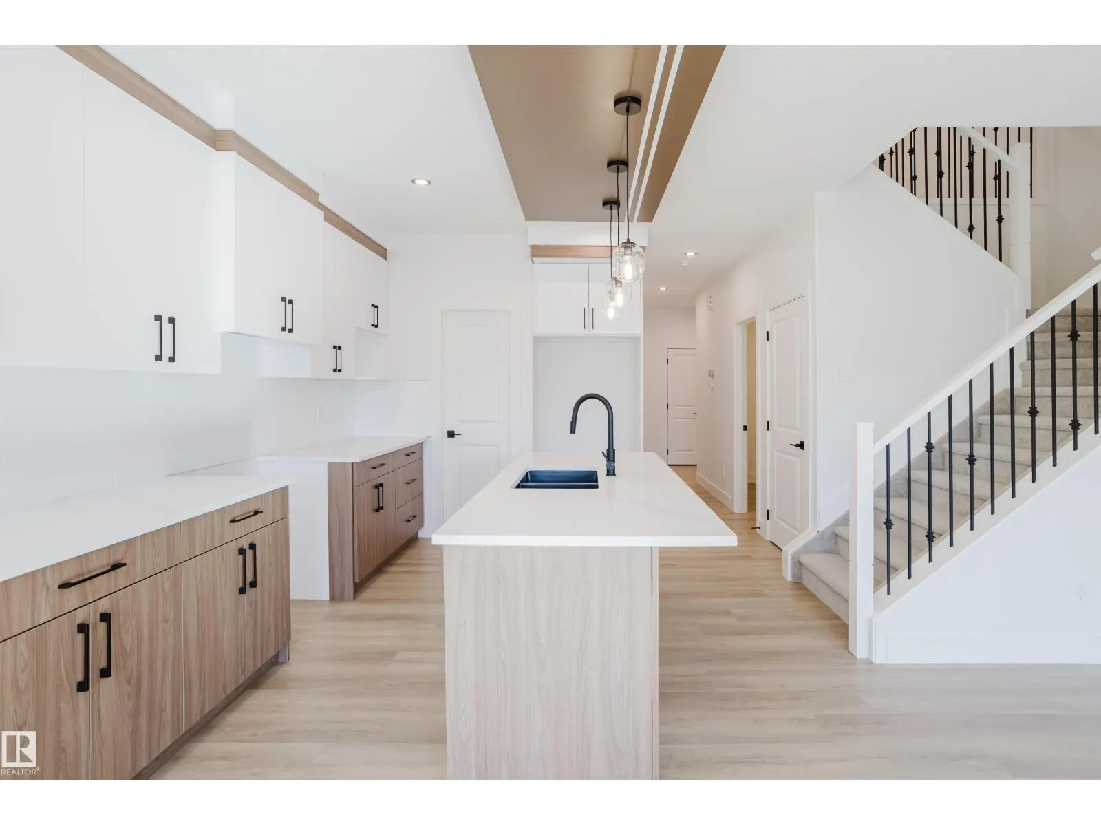 Welcome to this brand new home offering comfort, space, and versatility for modern living. The upper level includes three bedrooms, a spacious primary suite, and a convenient laundry room with built-in sink. The main floor features an extended kitchen with abundant cabinetry, generous counter space, and a seamless layout for everyday cooking and entertaining. A den and full bathroom on the main floor provide flexible options for a home office, guest room, or multi-generational living. The basement is unfinished but includes a separate side entrance, offering excellent potential for future development. (id:27476)