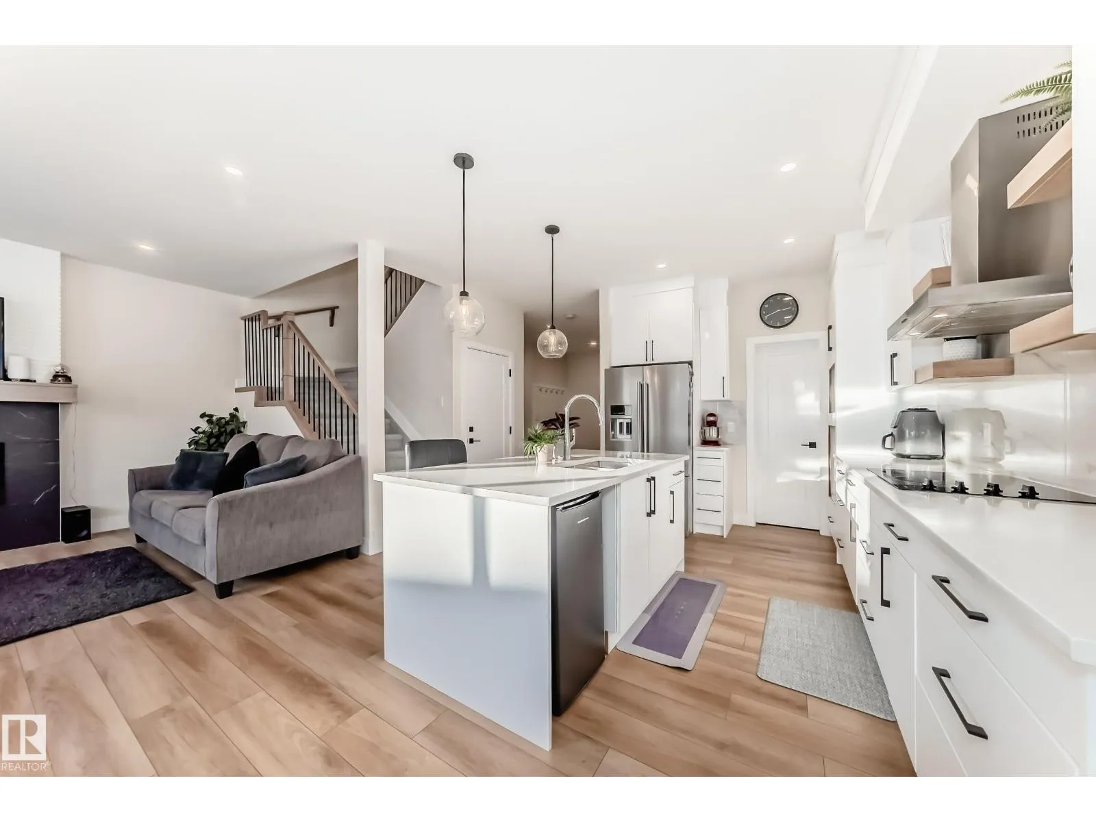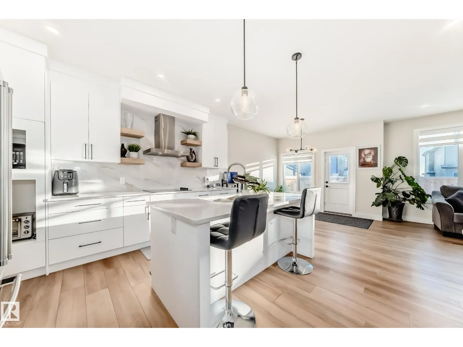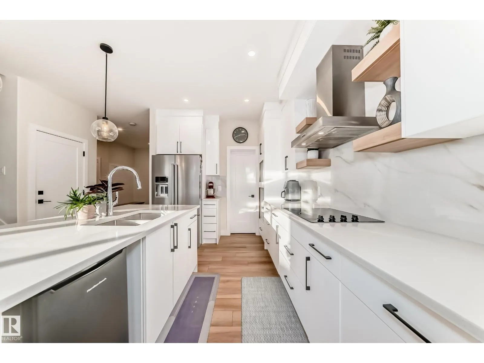 Welcome to this beautifully built home by a master builder in the sought-after community of Blackstone, located close to all major amenities. This well-designed floor plan offers 4 bedrooms, 3 bathrooms, a bonus room, and an upper-floor laundry. The south-facing backyard allows for plenty of natural light throughout the day.Upgrades include: ceiling-height cabinets, a large walk-in pantry, built-in appliance package setup, luxury vinyl plank flooring on the main level, quartz countertops throughout, maple railing with spindles, MDF shelving, premium zebra blinds, and an indent ceiling in the primary bedroom. The primary suite features a 5-piece ensuite with double sinks, a soaker tub, and an upgraded standing shower. Additional features: garage drain, side entrance to the basement, fully fenced and landscaped yard, fridge with water dispenser, and BBQ gas line for your future deck. Situated on a rare lot offering extra road parking right in front. A must-see home combining quality craftsmanship and modern (id:27476)