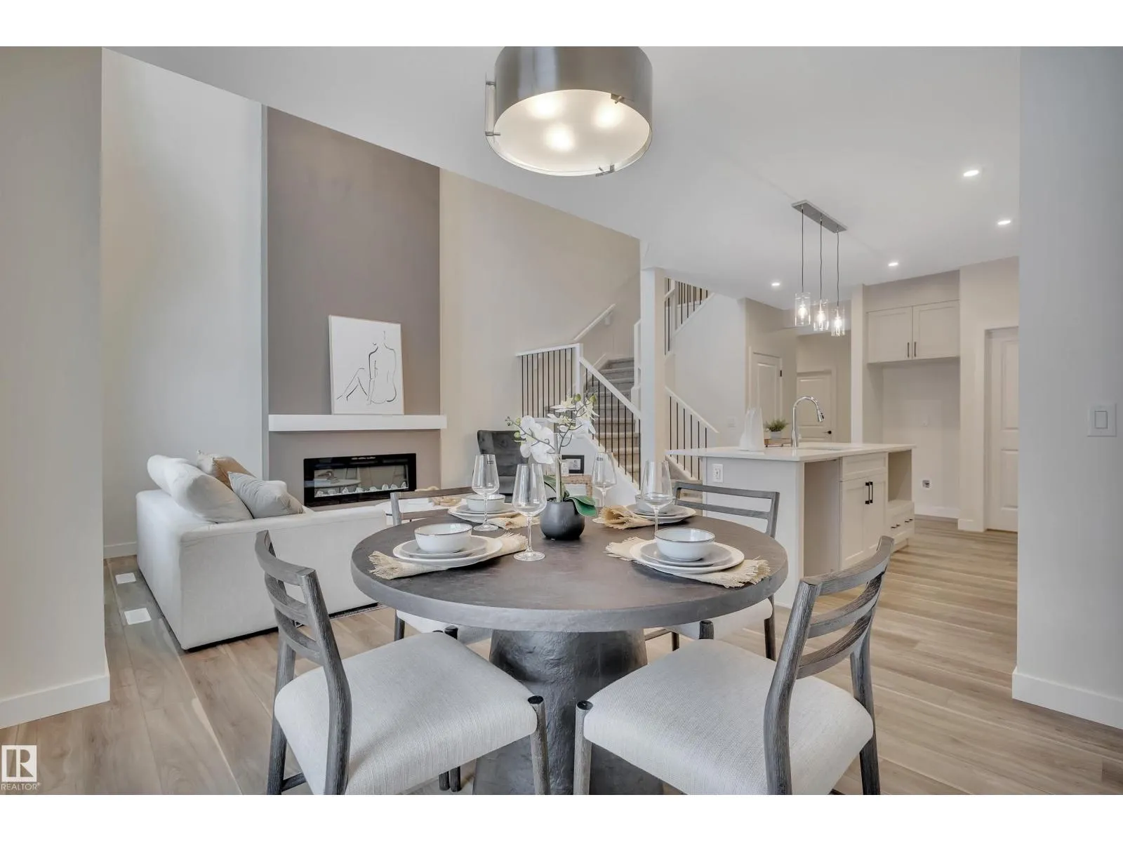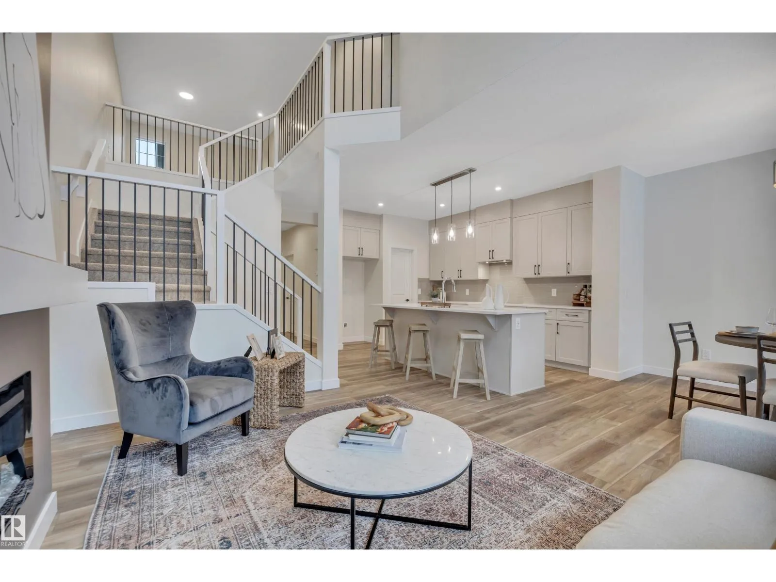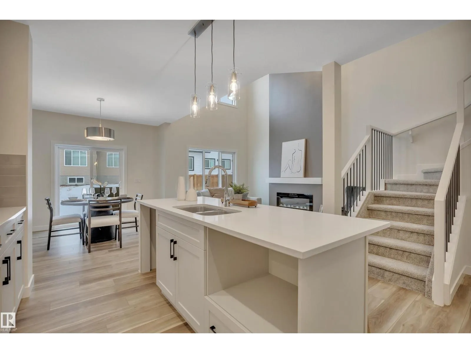 Victor by San Rufo Homes offers an inviting ambiance that welcomes you upon entry. Main floor features open design that flows effortlessly from the kitchen to dining nook & great room. Spacious island with eating ledge serves as the heart of the area, ideal for everything from morning meals to evening conversations. Aptly placed walk-thru pantry next to mudroom keeps kitchen tidy & simplifies grocery runs. Fireplace enhances the great room's charm, while the soaring ceilings bring an airy, bright feeling that connects to upper level. Second floor has versatile bonus room perfect for movie nights, gaming, & is nestled between the primary suite & other bdrms. Primary Bdrm showcases a walk-in closet & big ensuite with dual sinks, soaking tub, & shower. Other bdrms boast it's own walk-in closet & built-in study nook, creating designated areas for creativity. Full bath & laundry rm close to all bedrooms complete the layout. Conveniently located near Edmonton Int Airport, outlet malls, and Nisku. (id:27476)