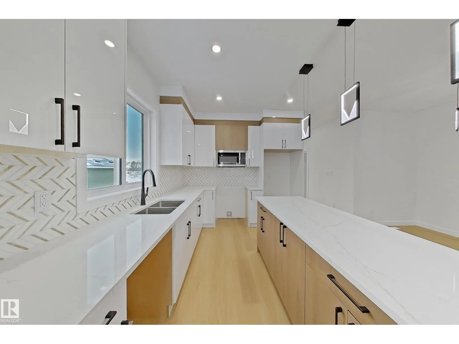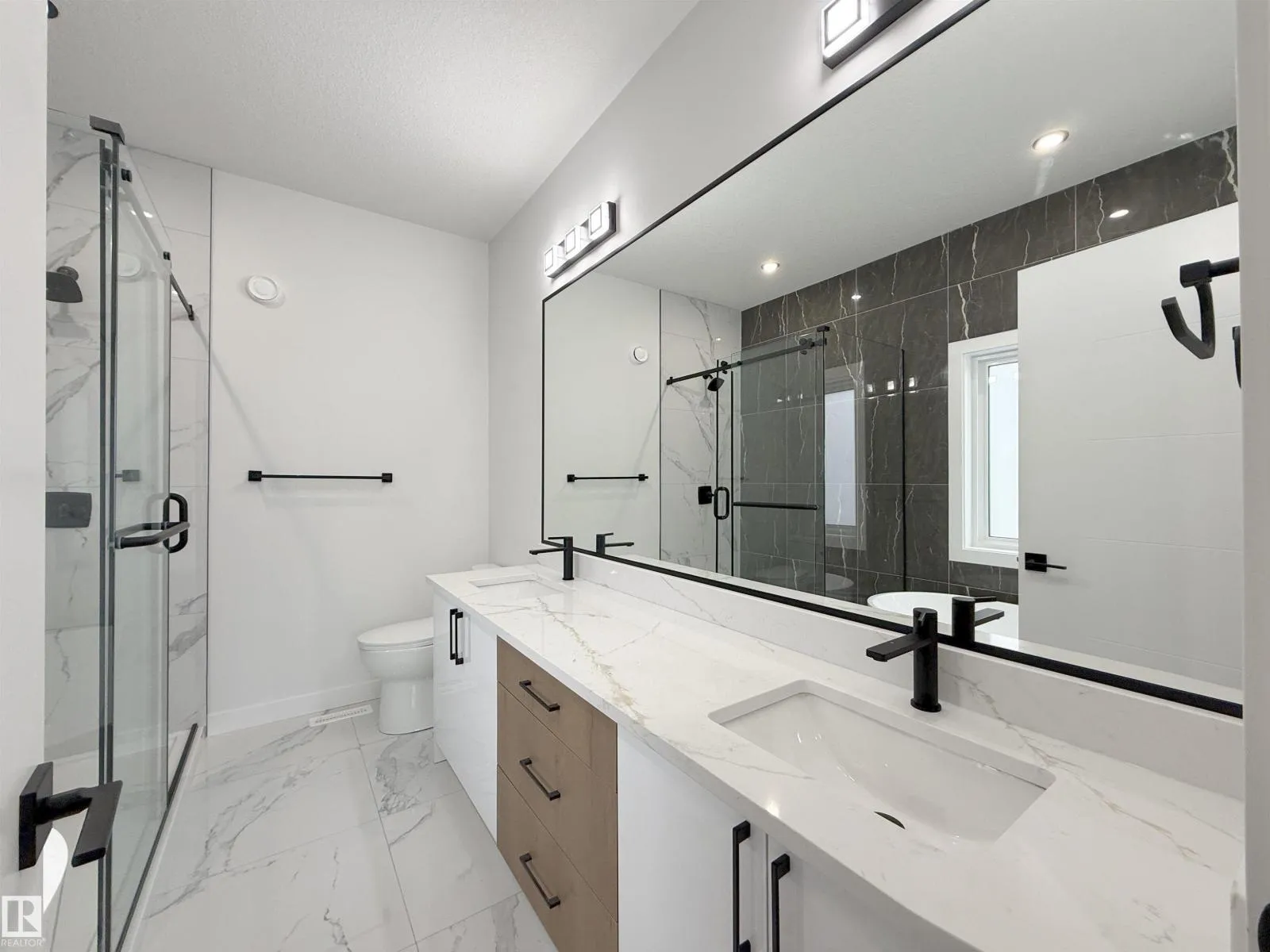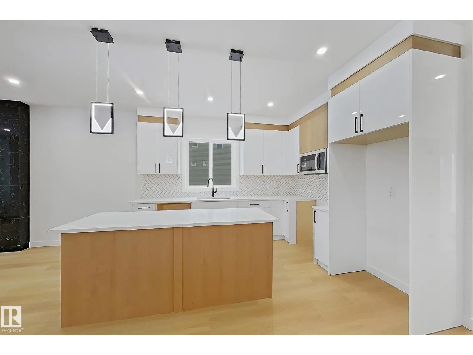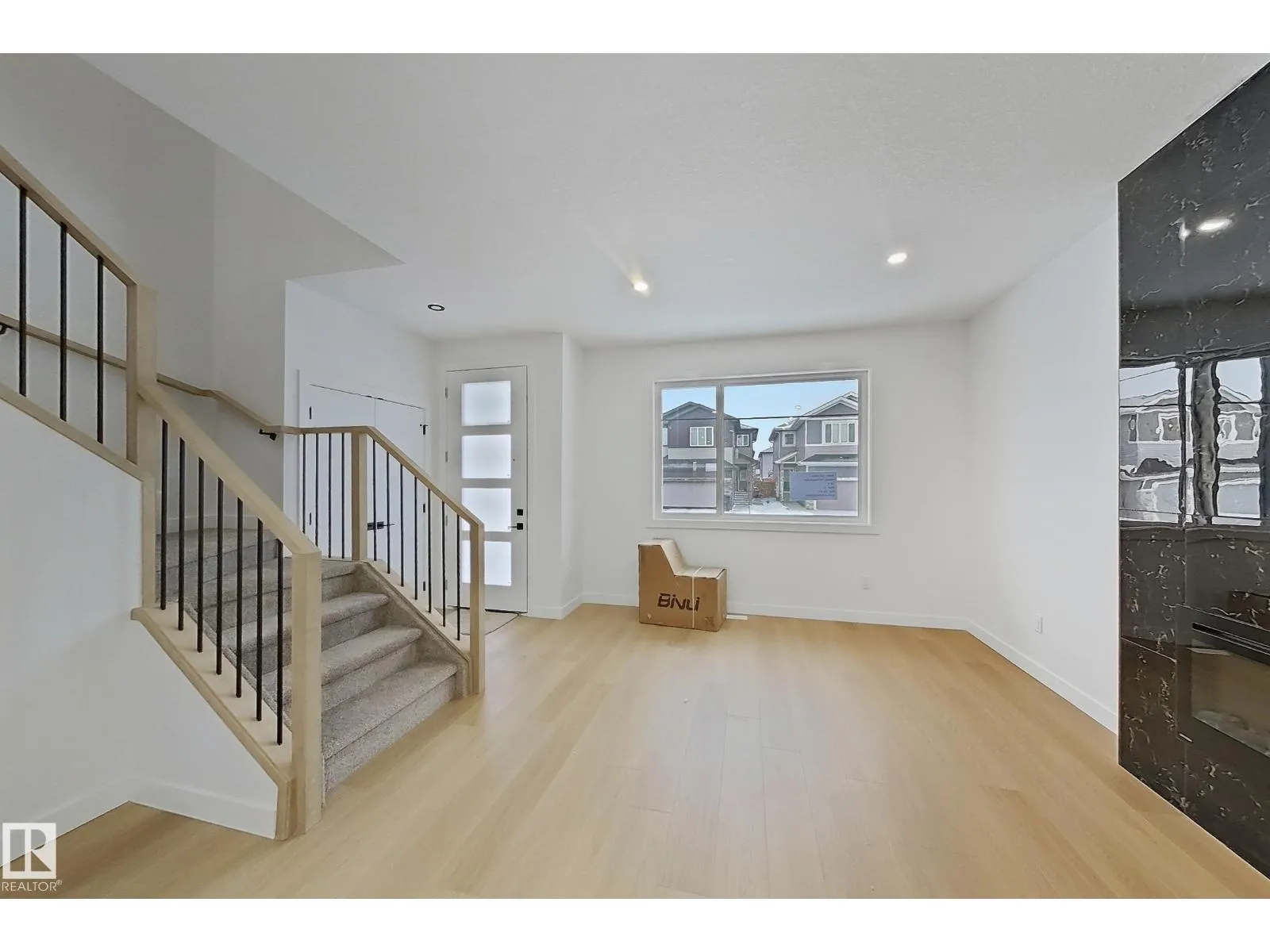 This stunning 4-bedroom, 3-bathroom single-family home showcases high-end finishes and a welcoming open-concept design. The main floor features a bright living room with an electric fireplace and feature wall, along with a modern kitchen. A main-floor bedroom and full bathroom add convenience and flexibility. Upstairs includes three spacious bedrooms and a bonus room with another feature wall. The primary suite impresses with its own feature wall and a luxurious 5-piece ensuite. A detached double garage completes this beautifully crafted home. The separate side entrance offers great potential for future basement development. (id:27476)