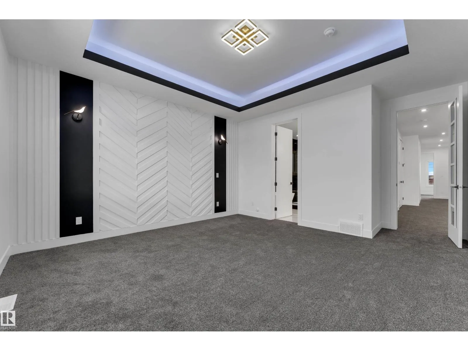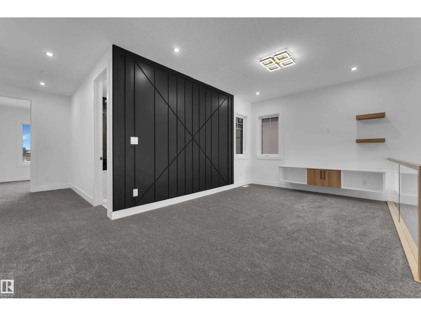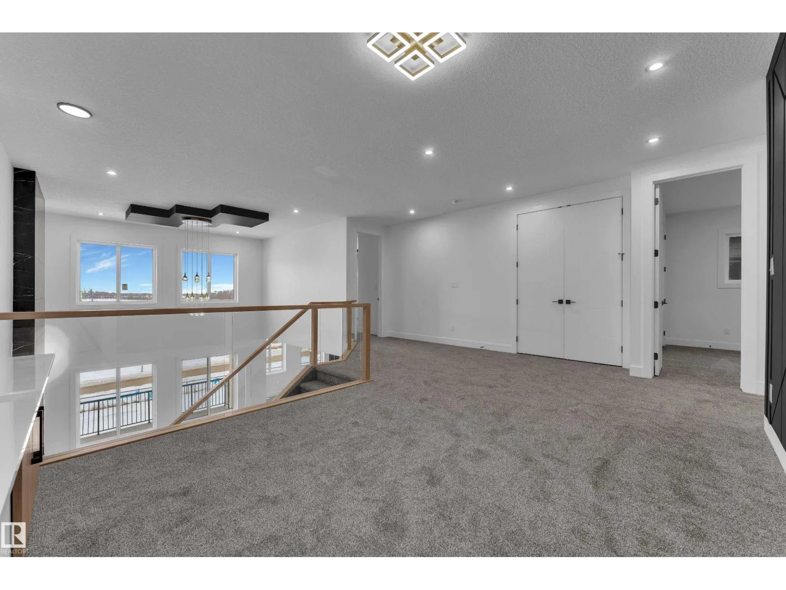 WALKOUT HOME || BACKING TO TRAIL || TRIPLE TANDEM CAR GARAGE || BEAUTIFUL VIEWS OF PARK IN FRONT || This beautifully styled home offers a main floor den with a full bathroom, perfect for guests or a home office. The chefâs kitchen features high-end quartz countertops, a stunning two-sided waterfall island, a pantry with MDF shelving, and an extended kitchen layout flowing into the dining area. The open-to-above living room showcases a tiled feature wall, an electric fireplace, and oversized windows that flood the space with natural light.Elegant glass railings lead to the upper level, where youâll find a bonus room with a feature wall. Primary bedroom with feature wall, indent ceiling , 5-piece ensuite, and a walk-in closet with built-in shelving. 3 additional bright and spacious bedrooms with full bathroom. Laundry on upper level. The unfinished WALKOUT basement offers endless potential to design your ideal custom living space. (id:27476)