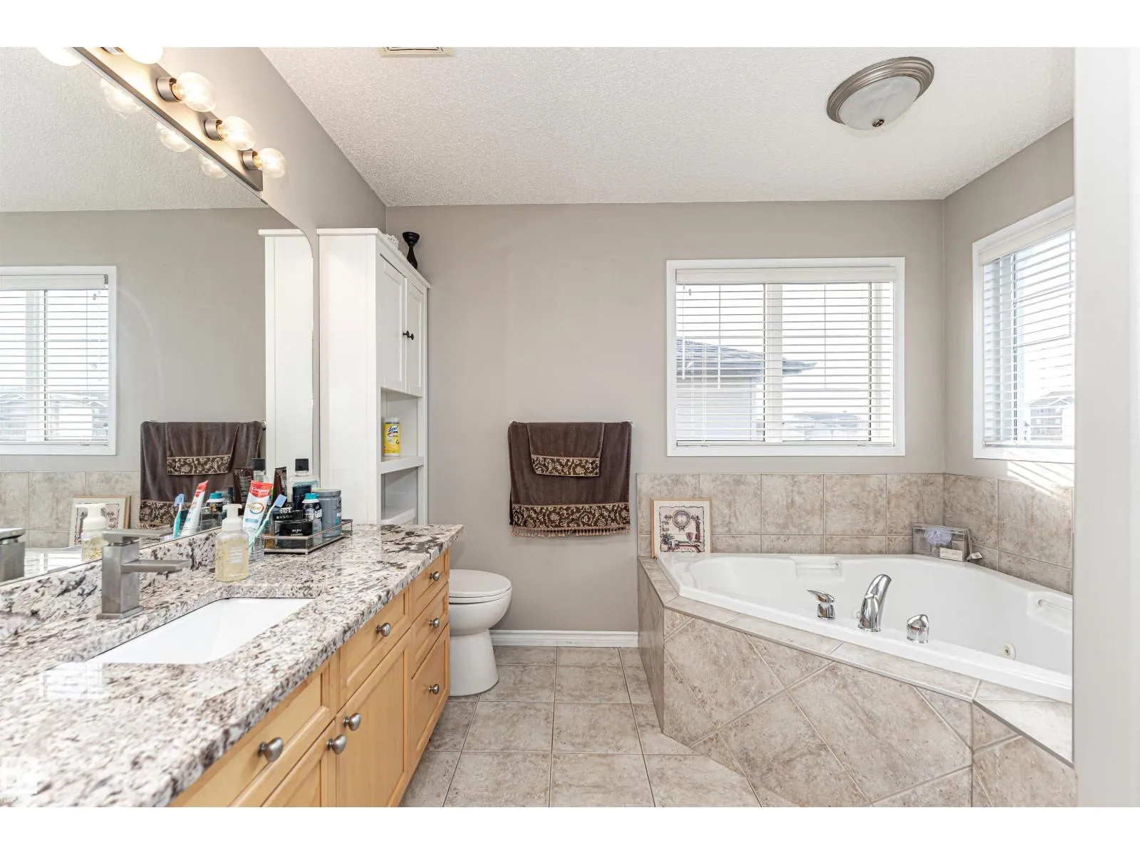 Beautifully finished 2-storey home in West Haven offering 2,700 sq. ft. of family-friendly living space. Open-concept main floor features a chef-inspired kitchen with stainless steel appliances, granite countertops, and walk-through pantry to mudroom and laundry. Family room showcases hardwood flooring and a stone feature wall with natural gas fireplace. Upstairs includes three bedrooms, a spacious primary suite with 5-piece ensuite and jetted jacuzzi, plus a vaulted bonus room with large windows. Fully finished basement offers a theatre room, bedroom, full bath, and storage. Additional features include central A/C, new roof (2024), new hot water tank (2024), and heated double attached garage. Large backyard with park view, steps to schools, parks, shopping, and walking paths. A perfect 10! (id:27476)