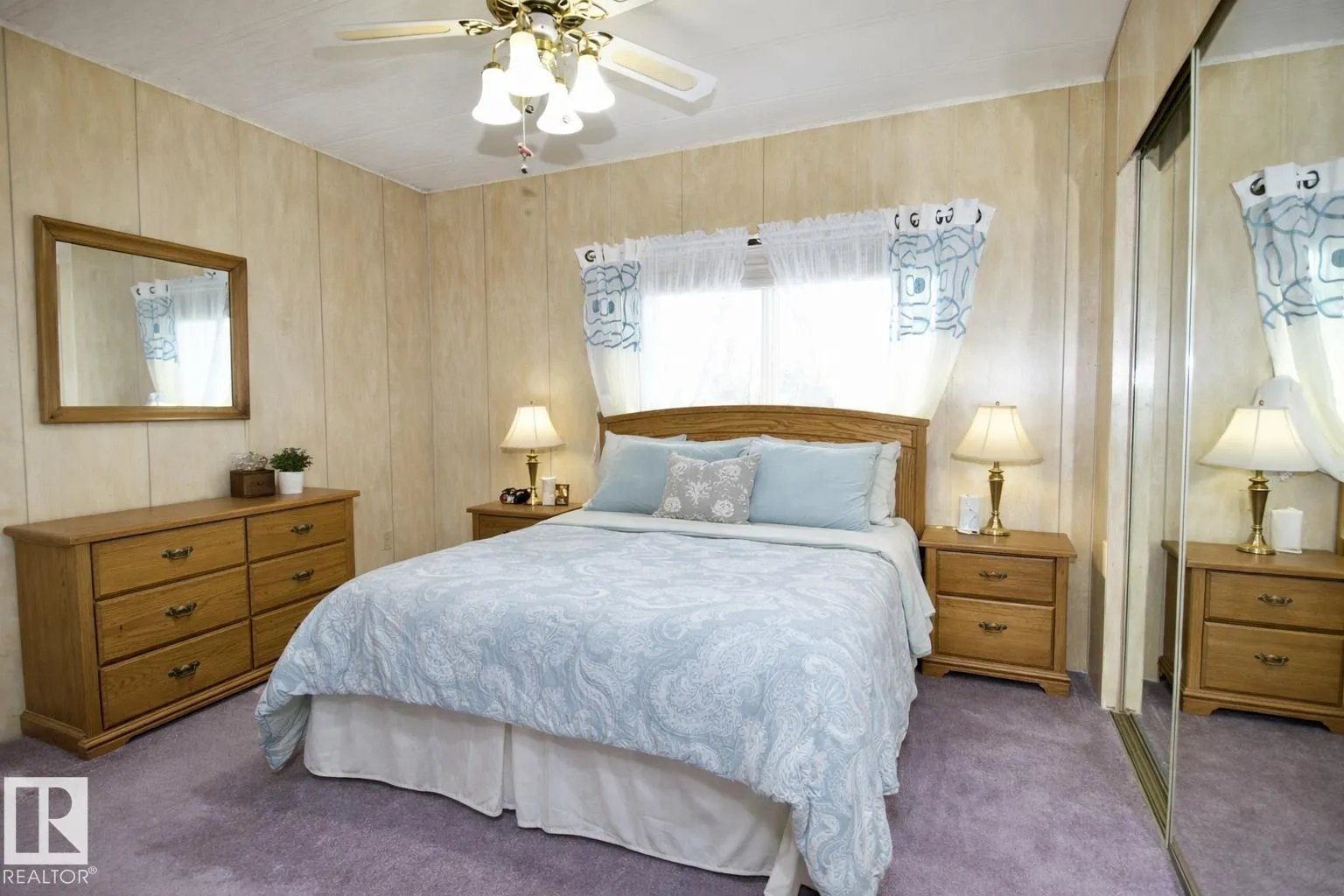 Welcome to Willow Park Estates and affordable living! This 1070 sq. ft. mobile home, with addition, has been extensively upgraded as per park requirements. This includes R40 insulation in the asphalt roof, newer R20 vinyl siding and vinyl windows. Enjoy the spacious and bright living room and the convenient U-shaped kitchen with built in dishwasher. Huge secondary bedroom with built in office deck, a main 4 piece bathroom and spacious master bedroom with a 4 piece ensuite. What's not to like? Oh and a laundry area! Complete with two storage sheds for whatever you want to put in them! Large front patio is a great place to enjoy the summer breezes and entertain your family and friends. Quick possession can be yours! Note: Some pictures are virtually staged. Make all offers subject to park approval of buyer. (id:27476)