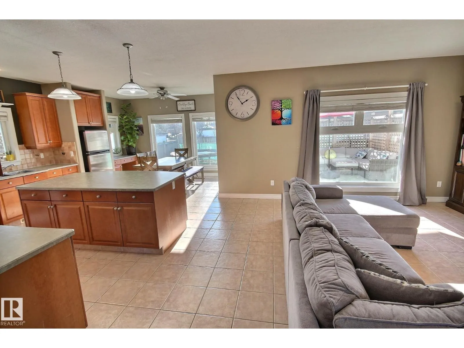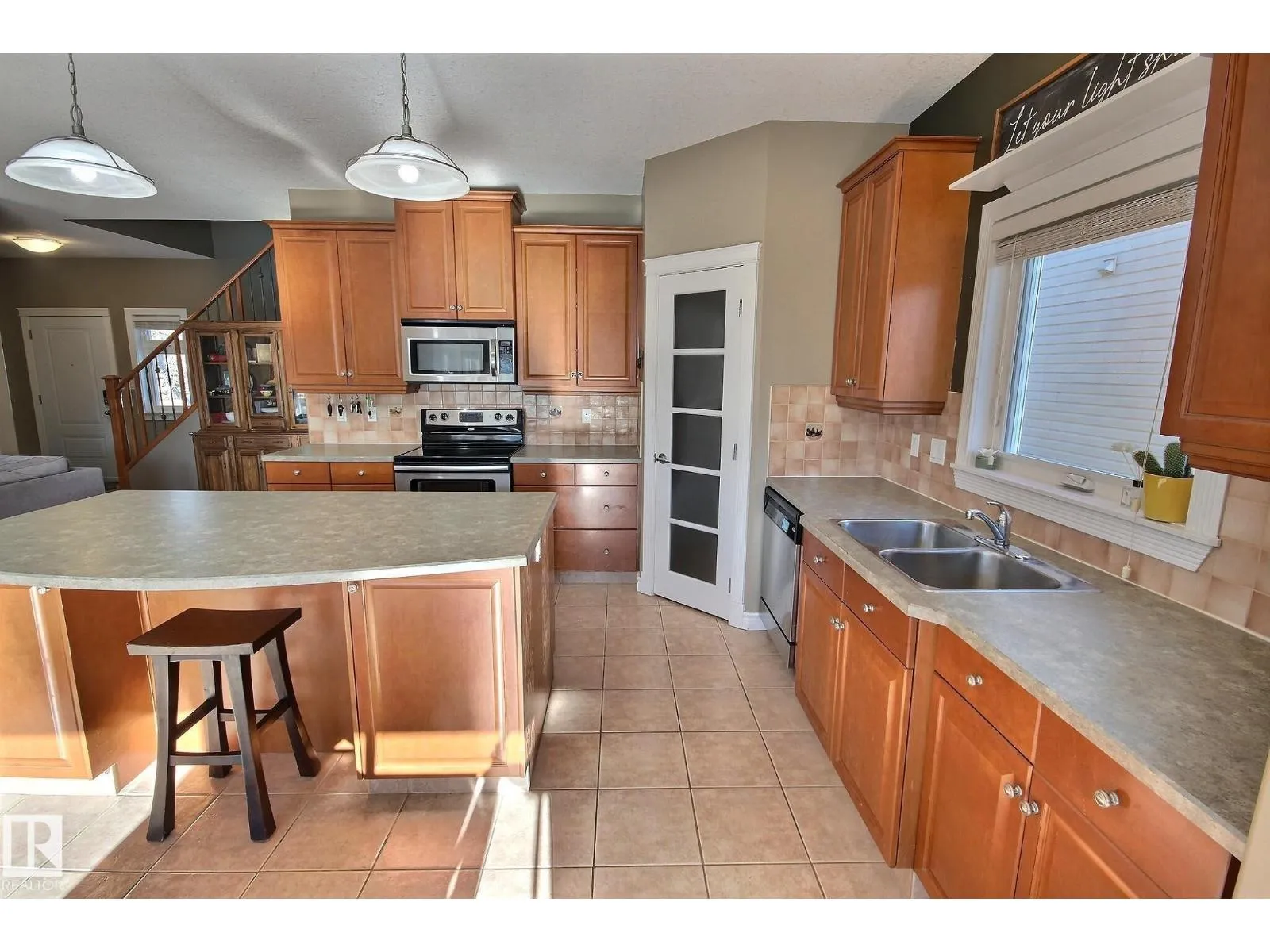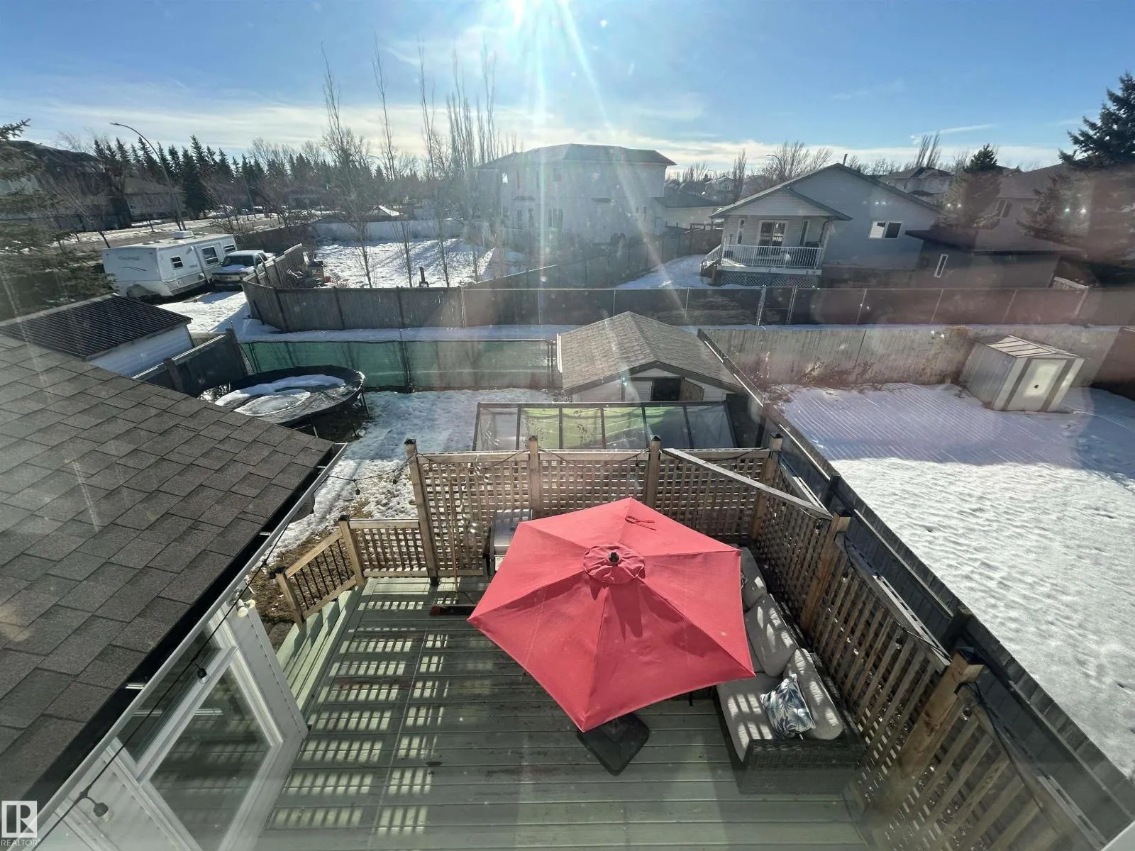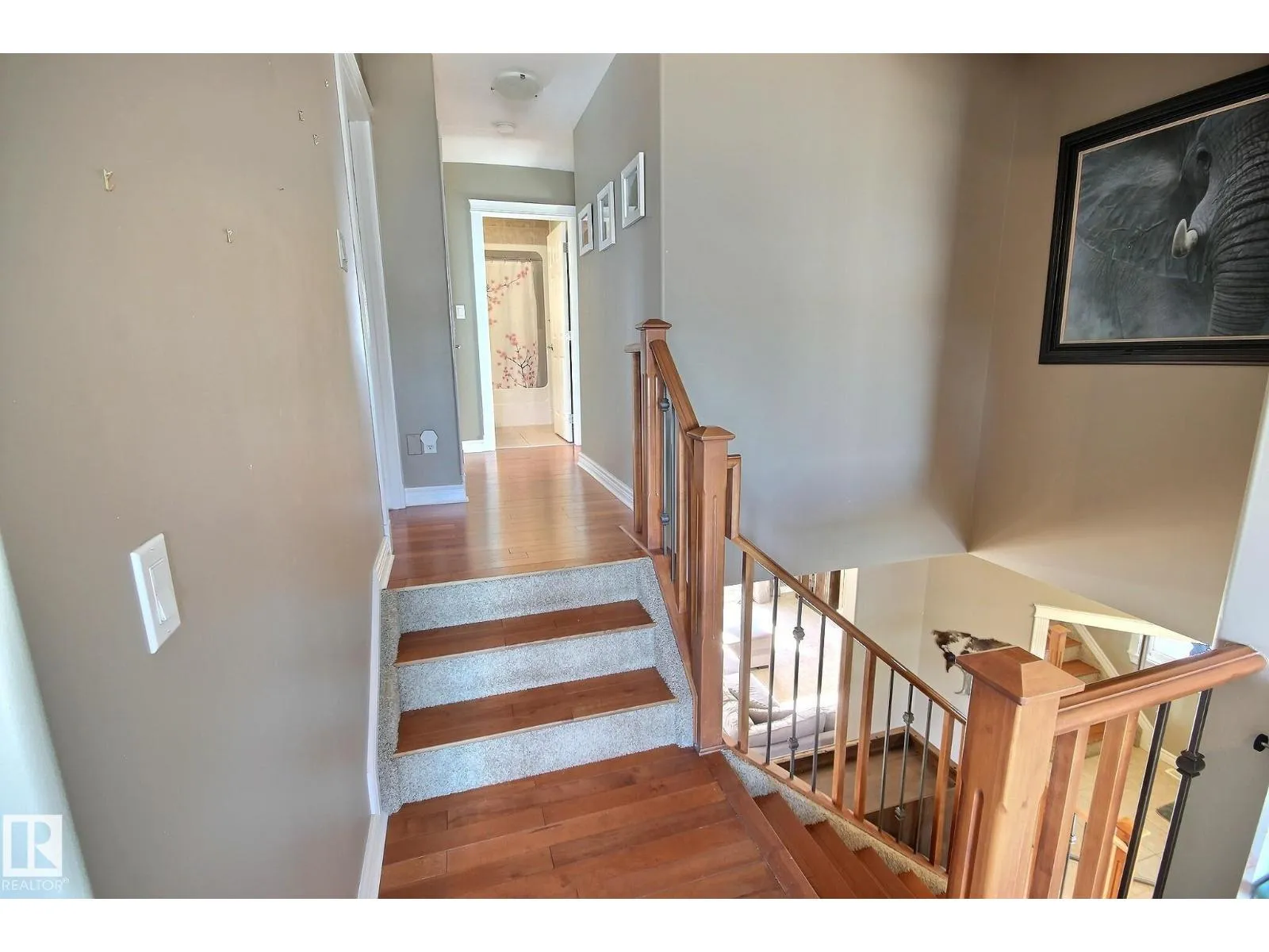 $50,000 in recent renovations including ALL new triple pane windows, NEW HE furnace and NEW shingles!! This Air Conditioned home is across the street from a park and greenspace this beautiful home offers a super functional layout, open concept main floor with full wall of huge windows, SW exposure floods the home in natural light, loads of cabinetry, island with extended eating bar, walk thru pantry, open to dining nook with Garden door access to the attached back deck and fenced and landscaped yard with handy back alley access, open to living room anchored by GAS fireplace with mantle, down the hall to 1/2 bath and laundry, upper level with big vaulted bonus room 3 bedrooms, primary ensuite with jetted tub and glass shower, other 2 rooms a good size and share a 4 piece bath, basement has some framing ready for your future development. Close to schools, around the corner from shops and restaurants, easy access to Edmonton and the international airport. Nothing to do here but move in and enjoy! (id:27476)