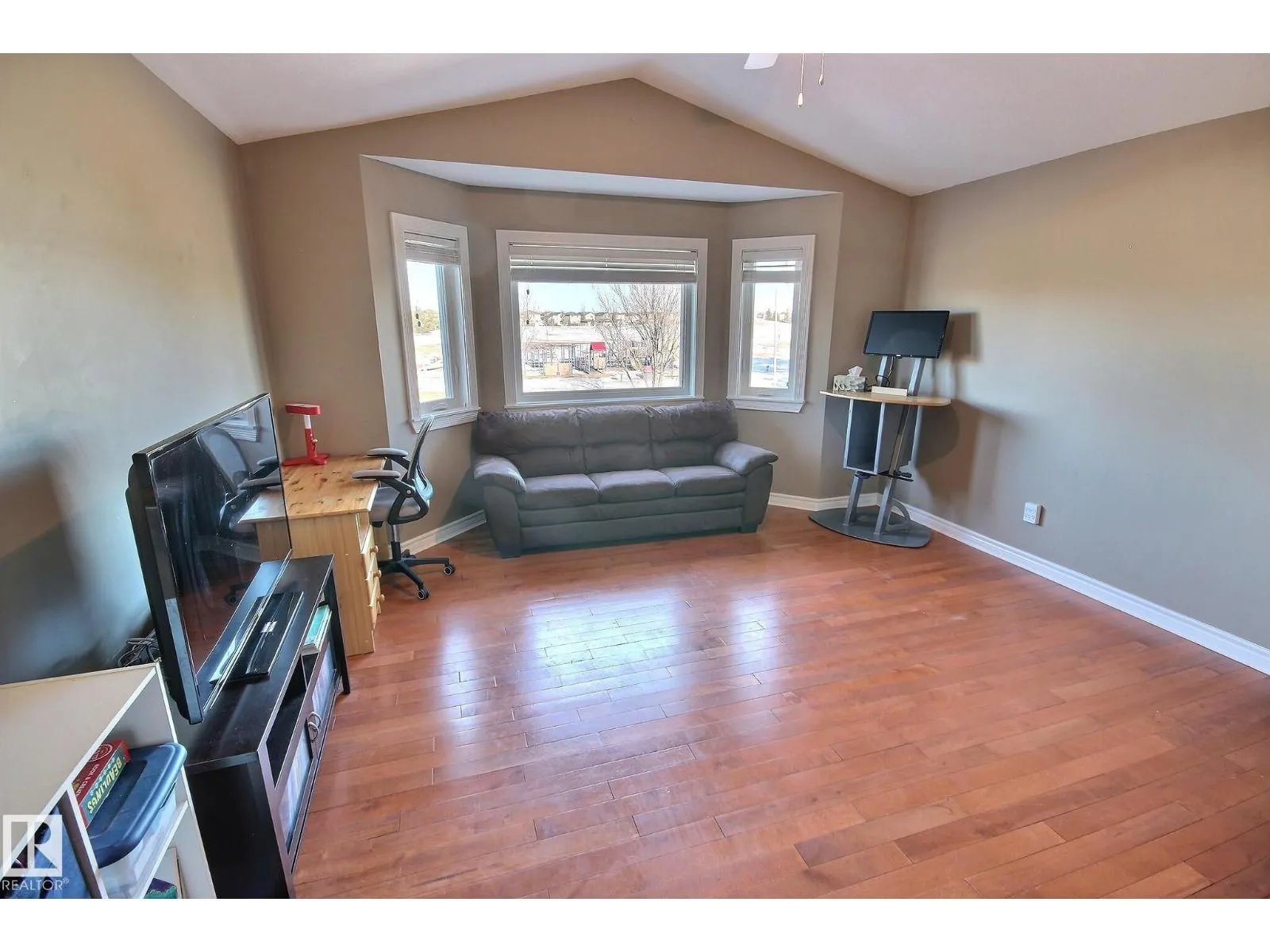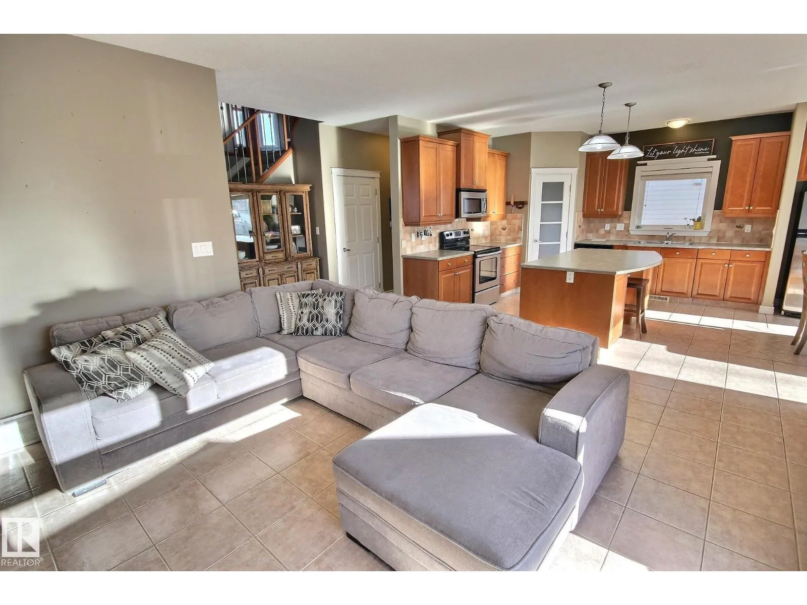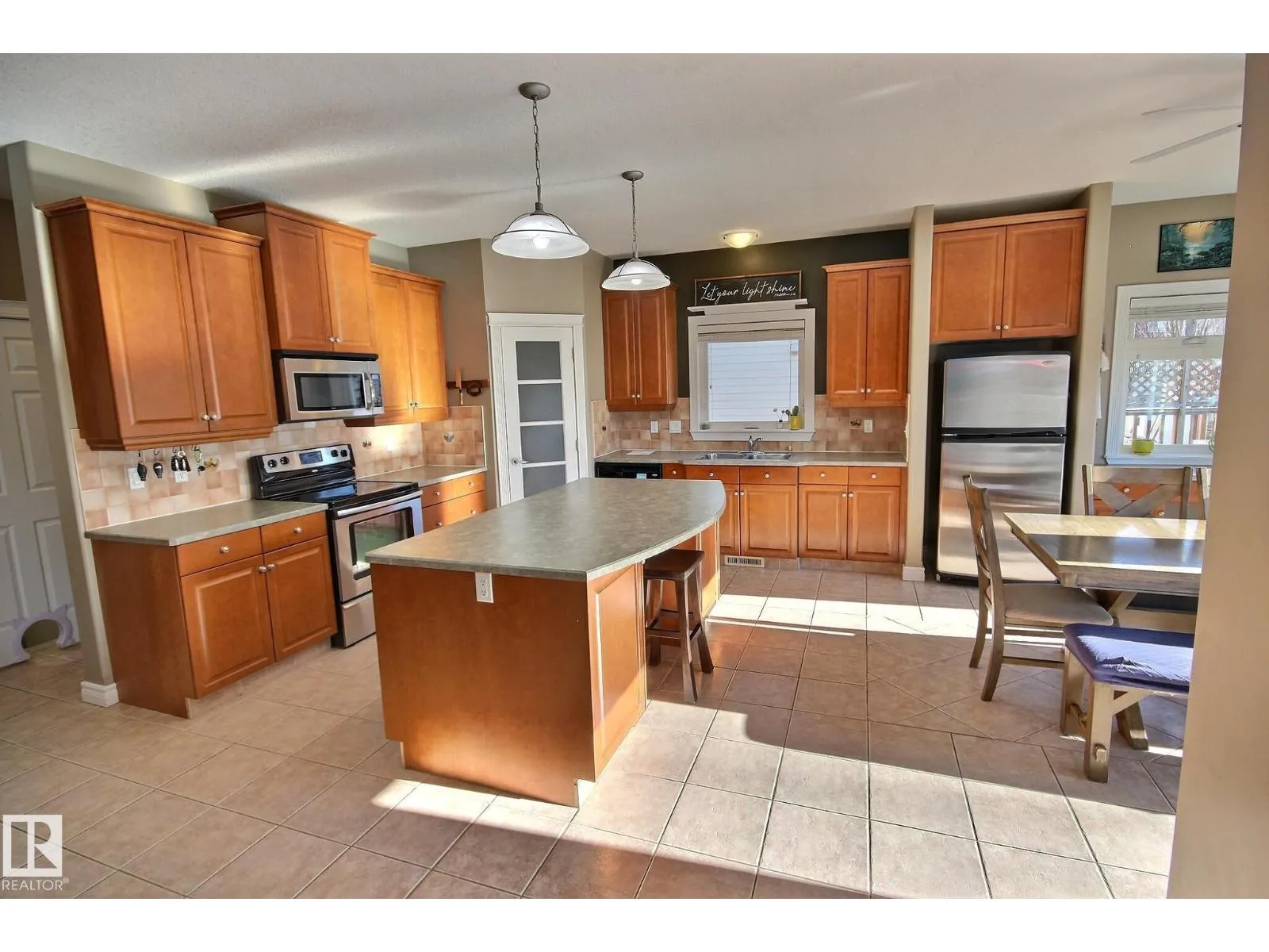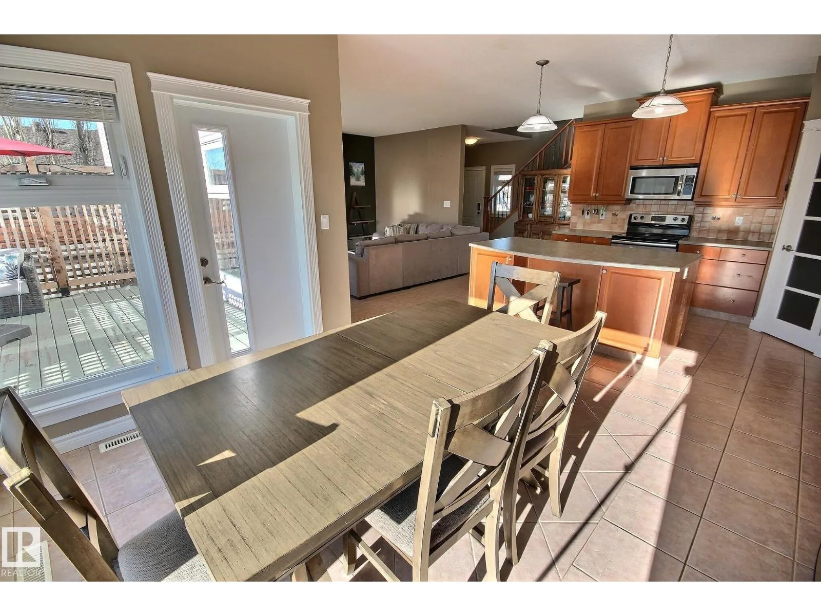 $50,000 in recent renovations including ALL new triple pane windows, NEW HE furnace and NEW shingles!! This Air Conditioned home is across the street from a park and greenspace this beautiful home offers a super functional layout, open concept main floor with full wall of huge windows, SW exposure floods the home in natural light, loads of cabinetry, island with extended eating bar, walk thru pantry, open to dining nook with Garden door access to the attached back deck and fenced and landscaped yard with handy back alley access, open to living room anchored by GAS fireplace with mantle, down the hall to 1/2 bath and laundry, upper level with big vaulted bonus room 3 bedrooms, primary ensuite with jetted tub and glass shower, other 2 rooms a good size and share a 4 piece bath, basement has some framing ready for your future development. Close to schools, around the corner from shops and restaurants, easy access to Edmonton and the international airport. Nothing to do here but move in and enjoy! (id:27476)