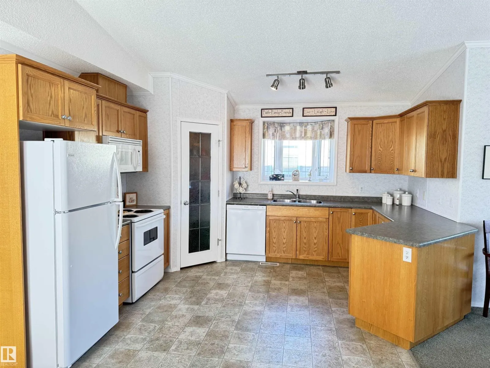 This 1,480 sq ft home was the original show home in the Park and has been lovingly maintained by its original owner.Enjoy your morning coffee on the welcoming front covered deck before stepping into the bright, open-concept living room and kitchen area. The spacious kitchen features a walk-in pantry, built-in china cabinet, and patio doors leading to the yard â perfect for entertaining or relaxing outdoors. The home offers three bedrooms, including an exceptionally large primary suite complete with a 3-piece ensuite. A convenient walk-in laundry room provides additional space for storage or a freezer. Outside, youâll find a large double detached heated garage â ideal for our Canadian winters.With its functional layout and generous room sizes, this home is an excellent option for seniors or anyone seeking comfortable, single-level living in a quiet community. (id:27476)